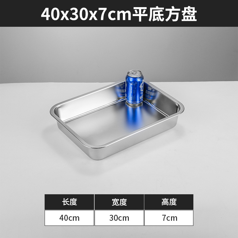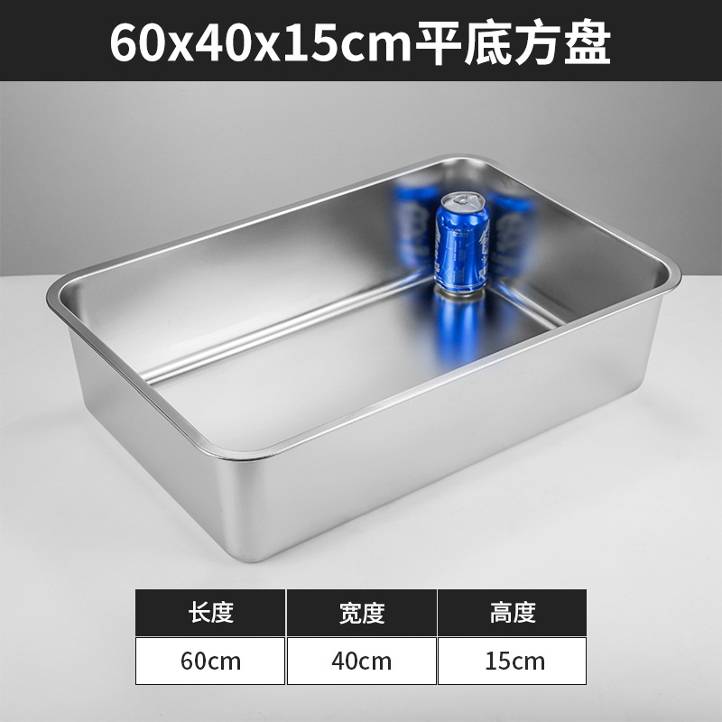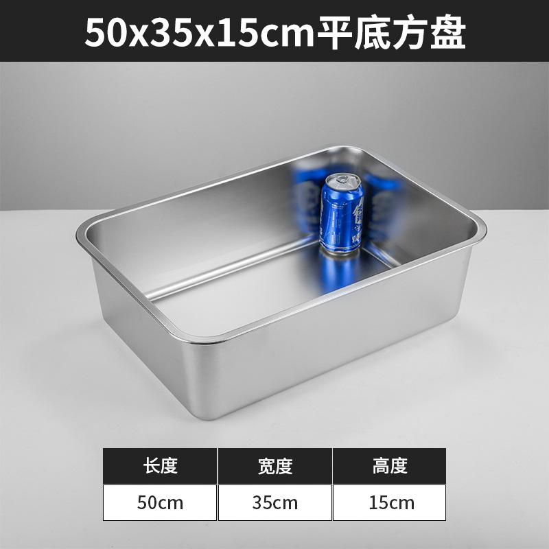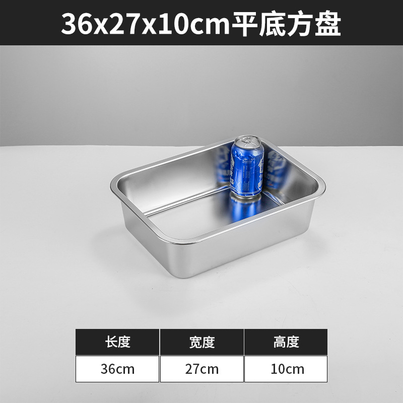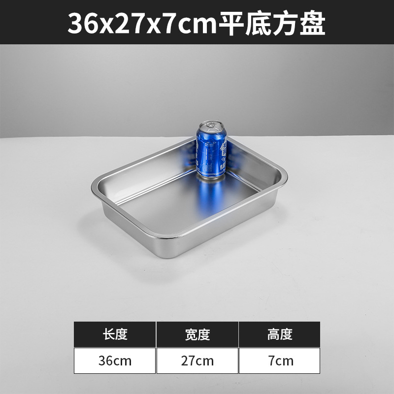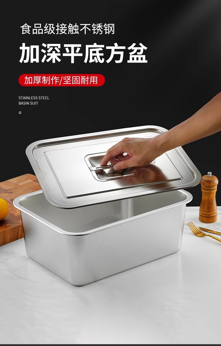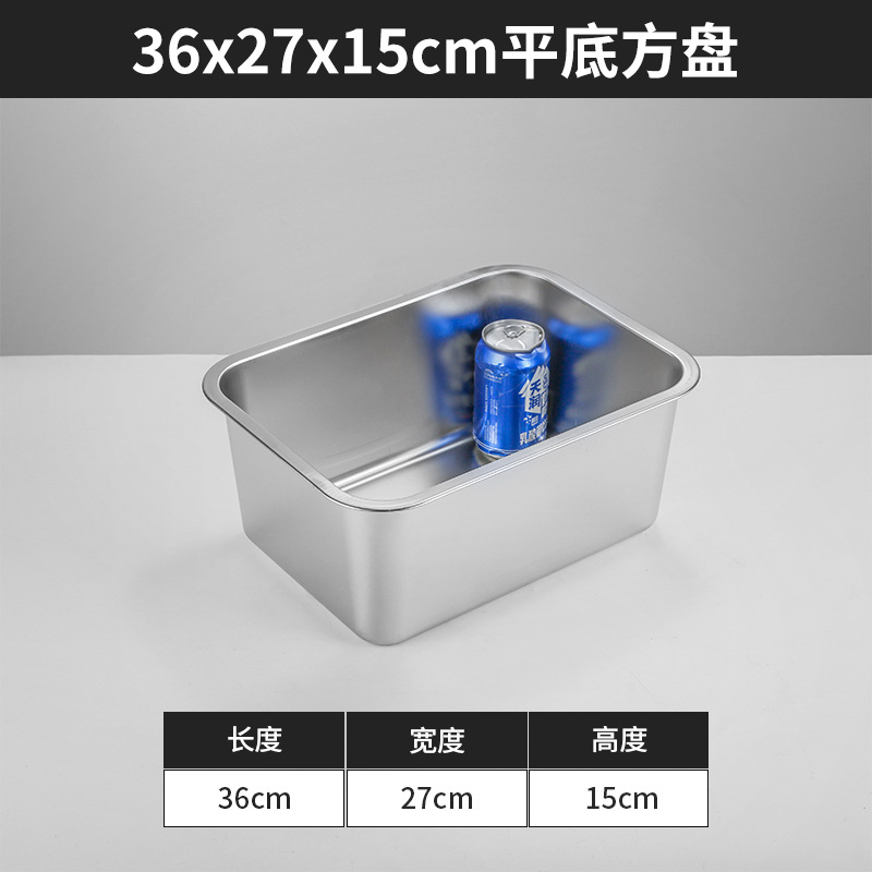 스테인리스 평평한 바닥 깊은 사각 접시, 뚜껑이 있는 두꺼운 직사각형 트레이, 셀프 서비스 밥 접시, 구멍이 뚫린 사각 접시, 물통 및 배수구스토어 가기