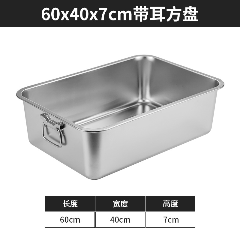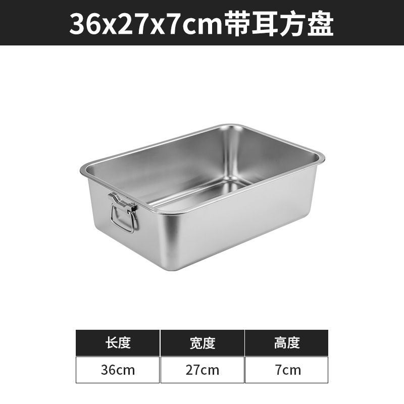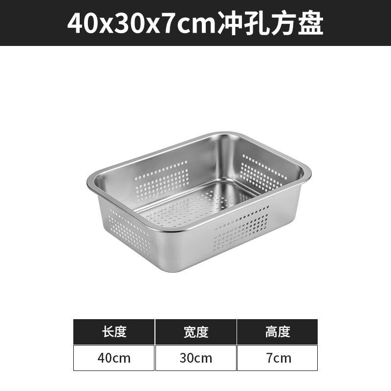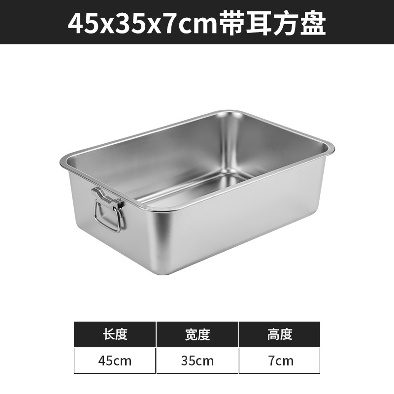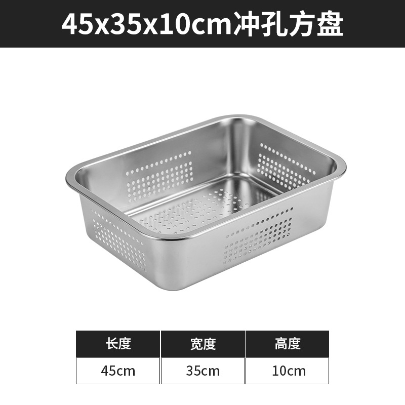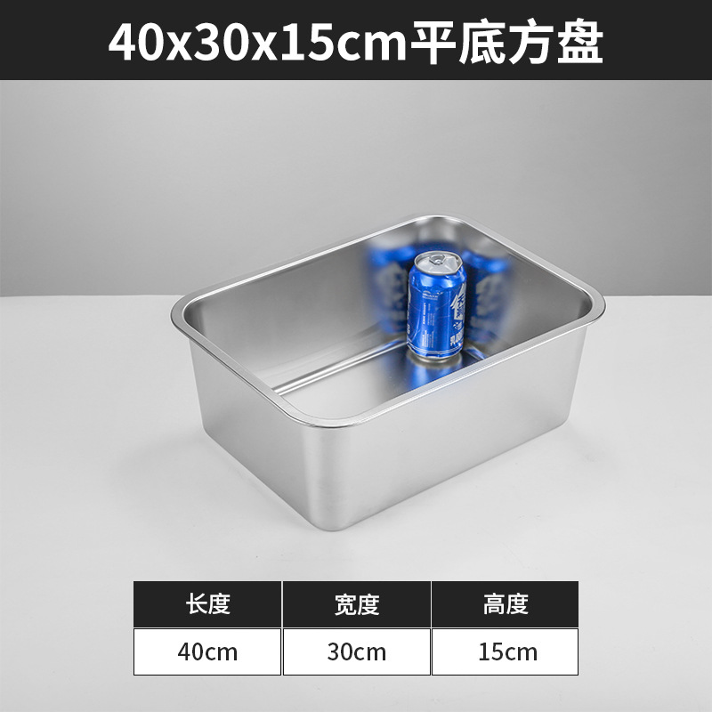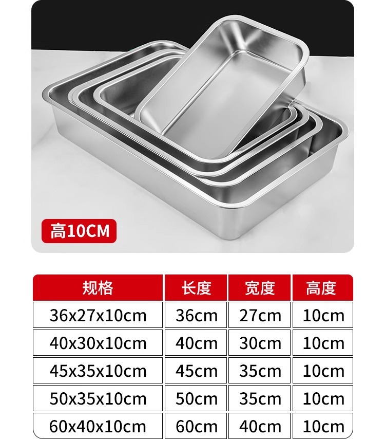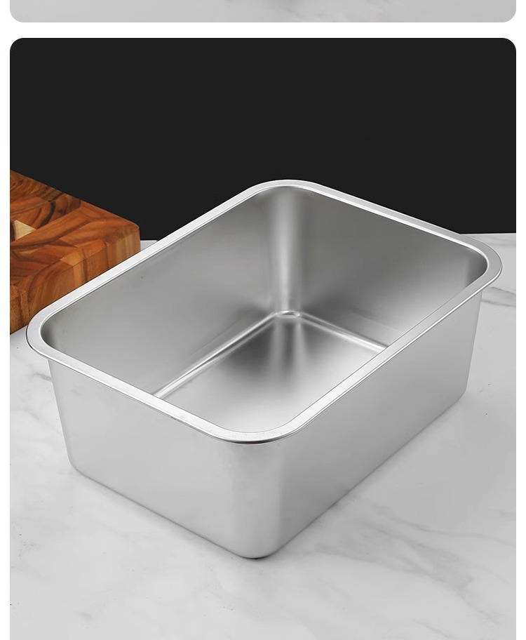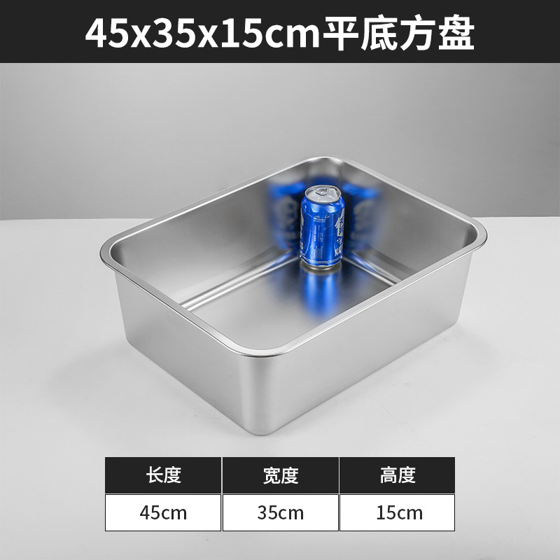 스테인리스 평평한 바닥 깊은 사각 접시, 뚜껑이 있는 두꺼운 직사각형 트레이, 셀프 서비스 밥 접시, 구멍이 뚫린 사각 접시, 물통 및 배수구스토어 가기
