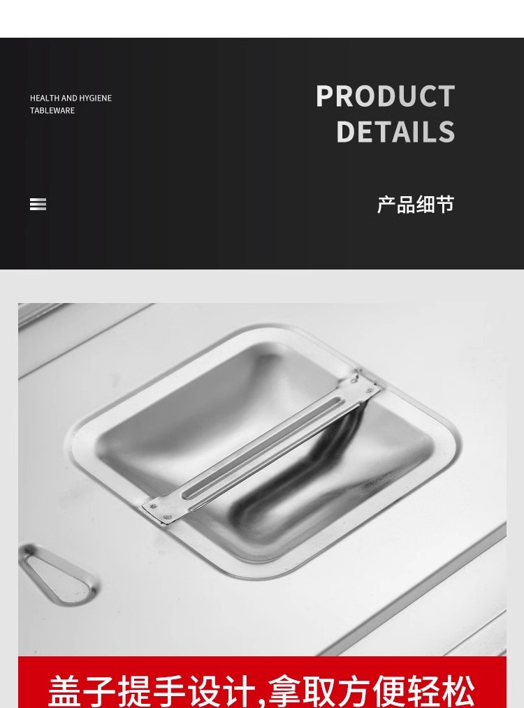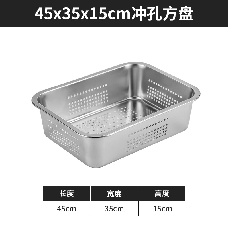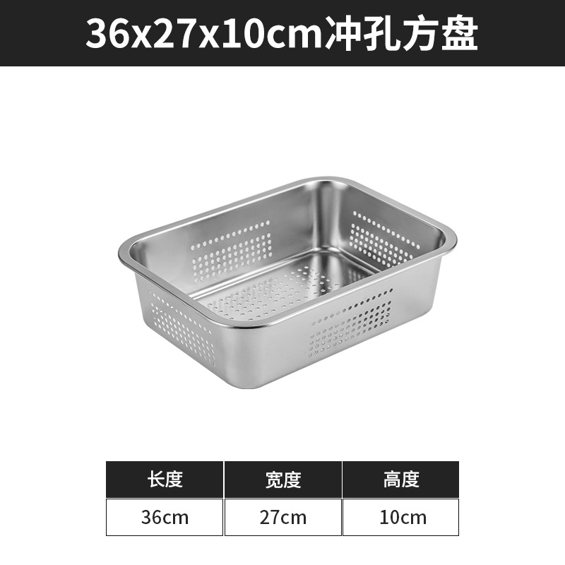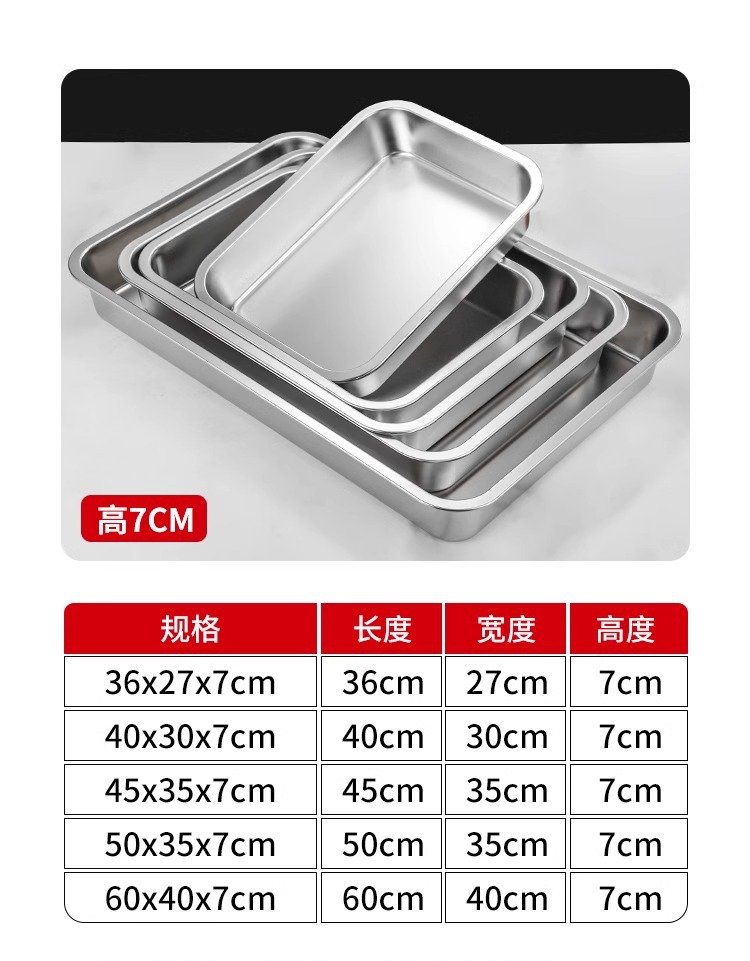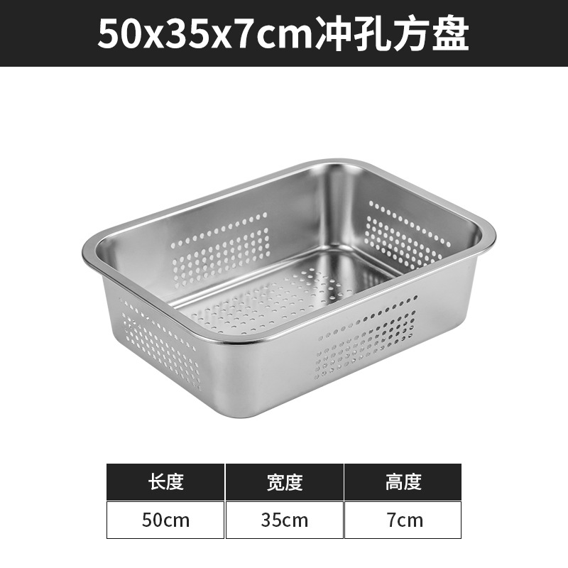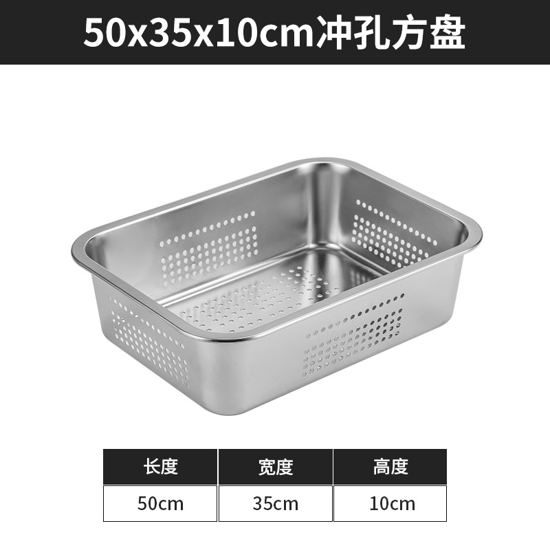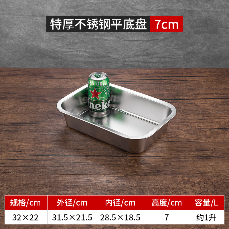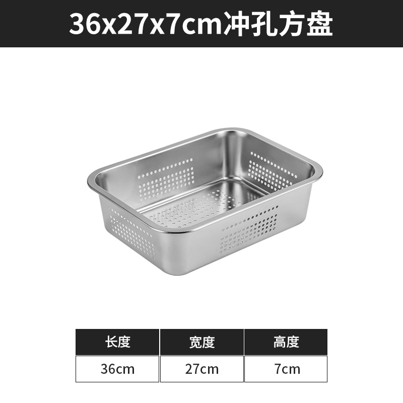 스테인리스 평평한 바닥 깊은 사각 접시, 뚜껑이 있는 두꺼운 직사각형 트레이, 셀프 서비스 밥 접시, 구멍이 뚫린 사각 접시, 물통 및 배수구스토어 가기