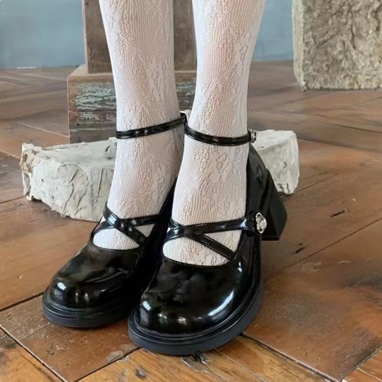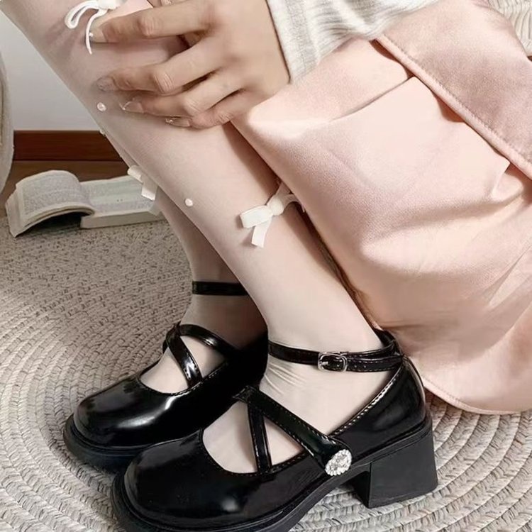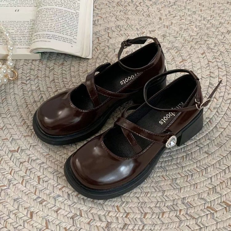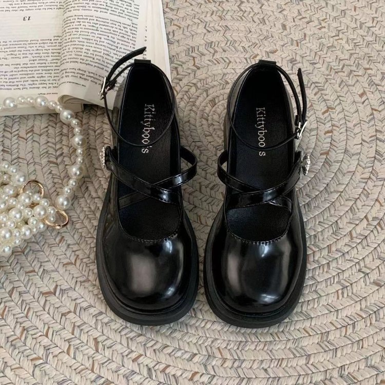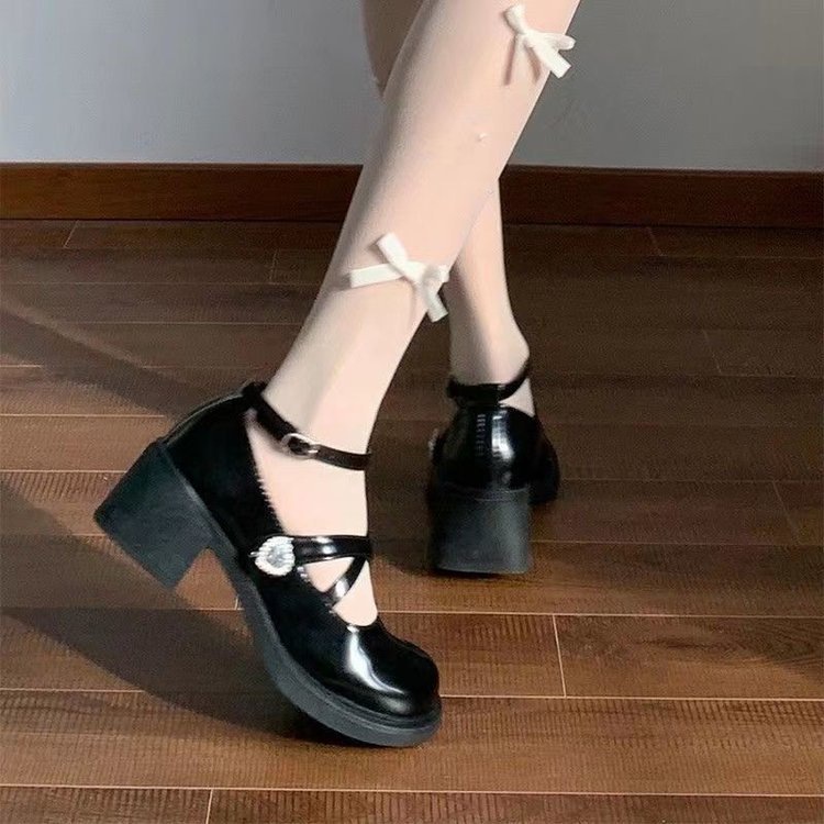 스파이스 걸 메리 제인 작은 가죽 신발 하이힐 여성 트렌디 2025 봄 신학생 올 매치 크로스 버클 작은 가죽 신발스토어 가기