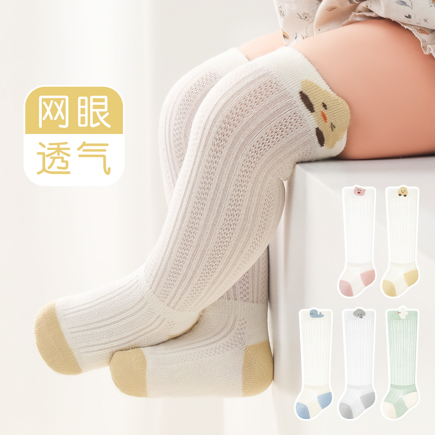 2026년 여름 신상품 메쉬 통기성 만화 캐릭터 아기 양말 얇은 A급 면 모기 방지 양말 아기 긴 양말스토어 가기