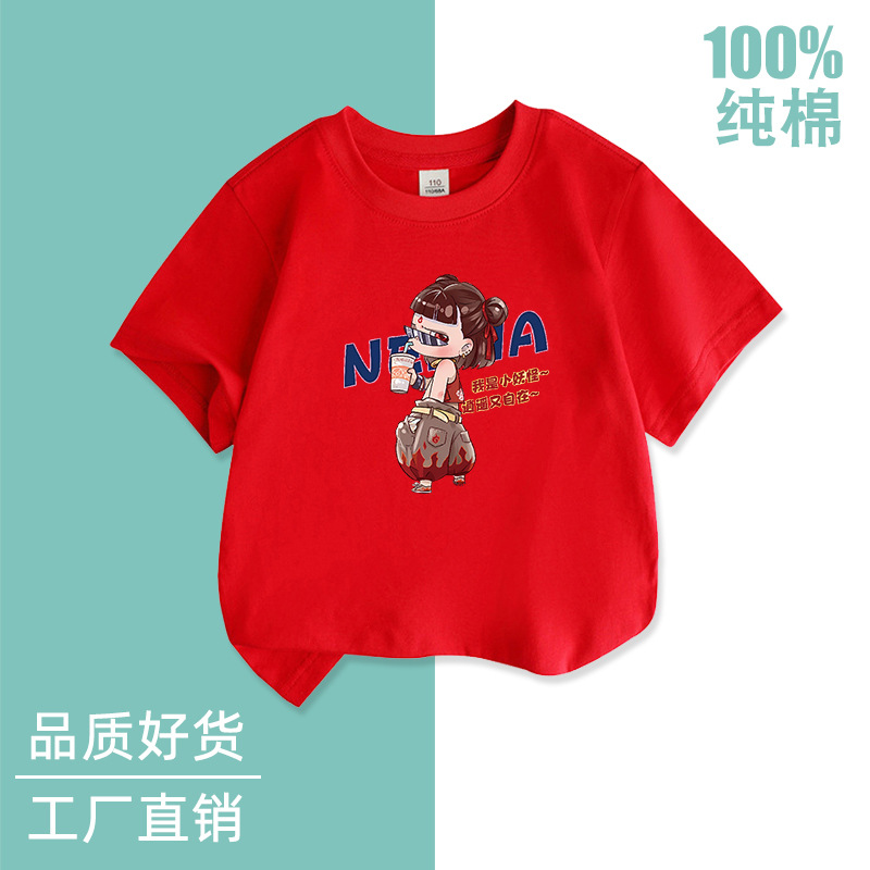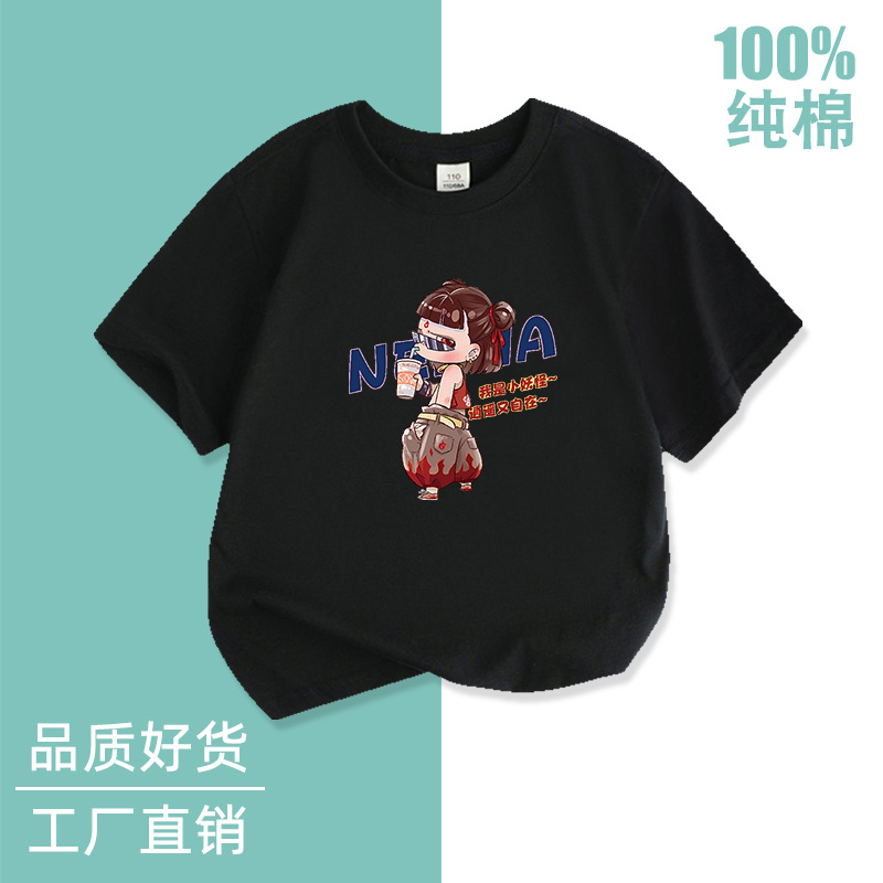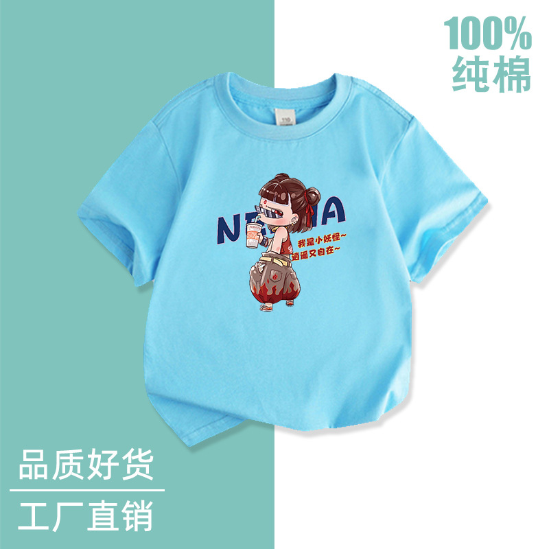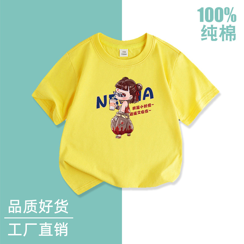 대외 무역용 순면 아동용 라운드넥 티셔츠, 아동용 단색 상의, 남아용 반팔, 드롭쉬핑