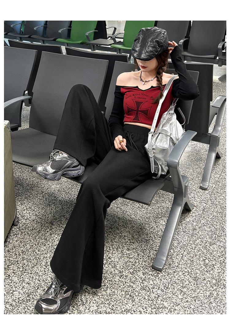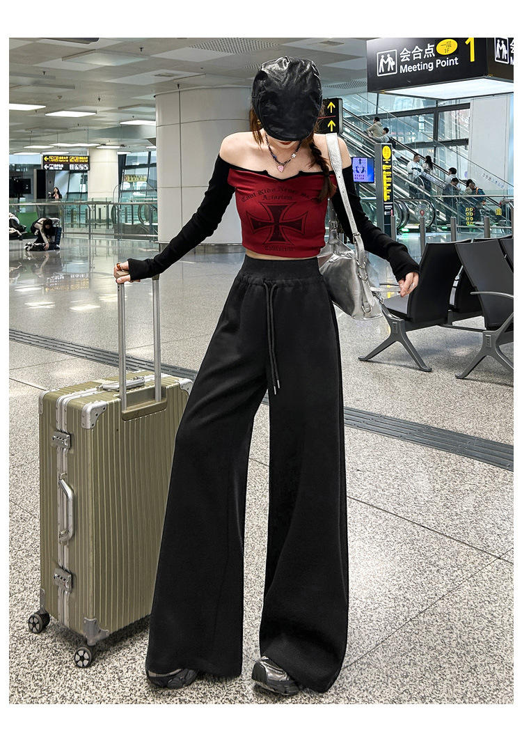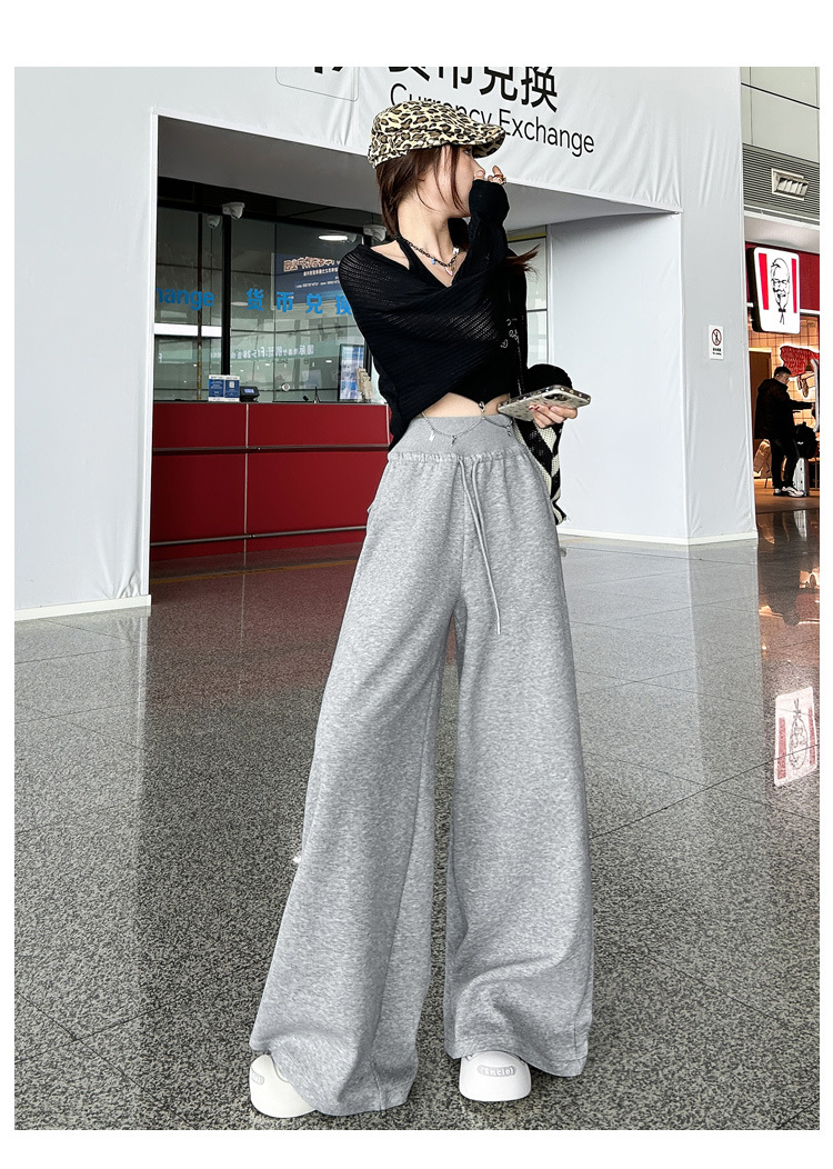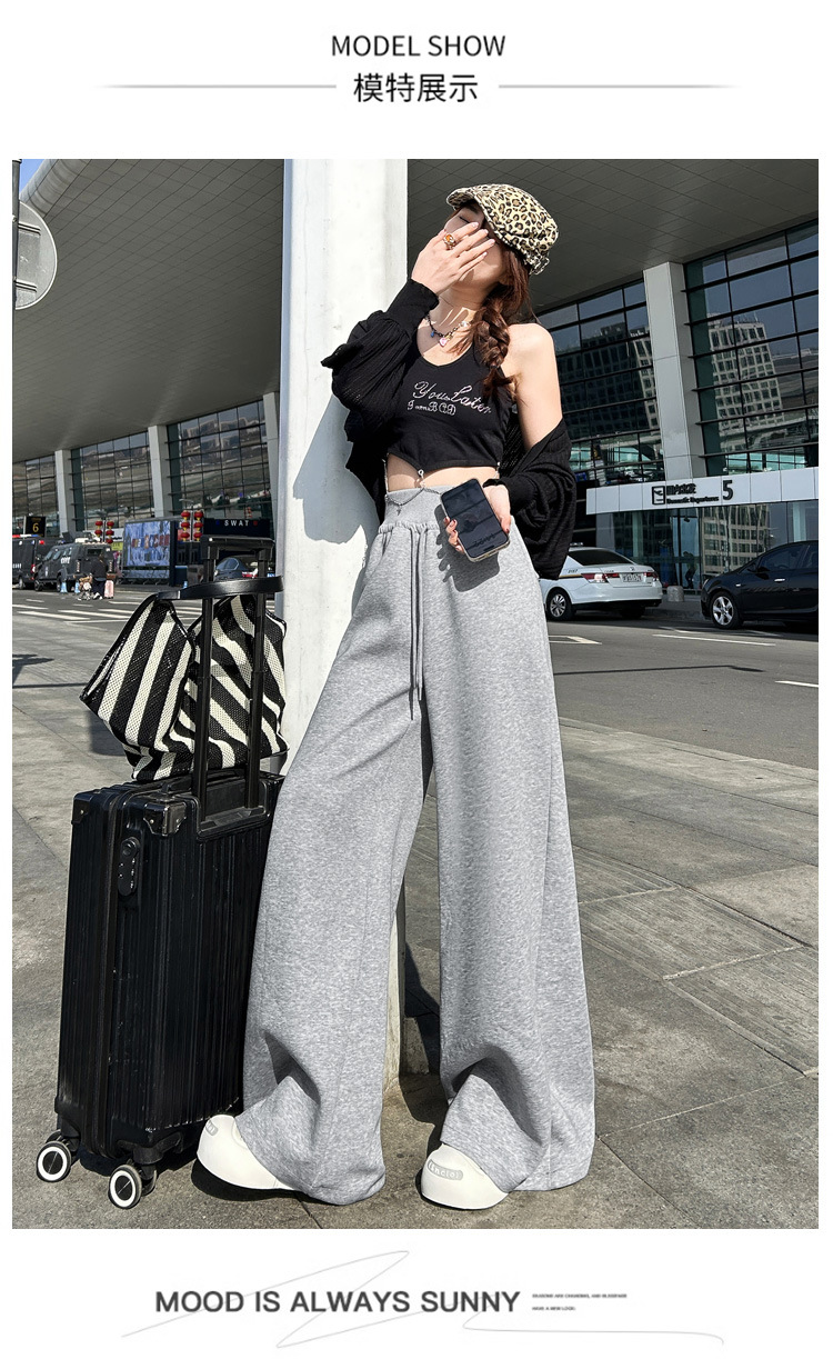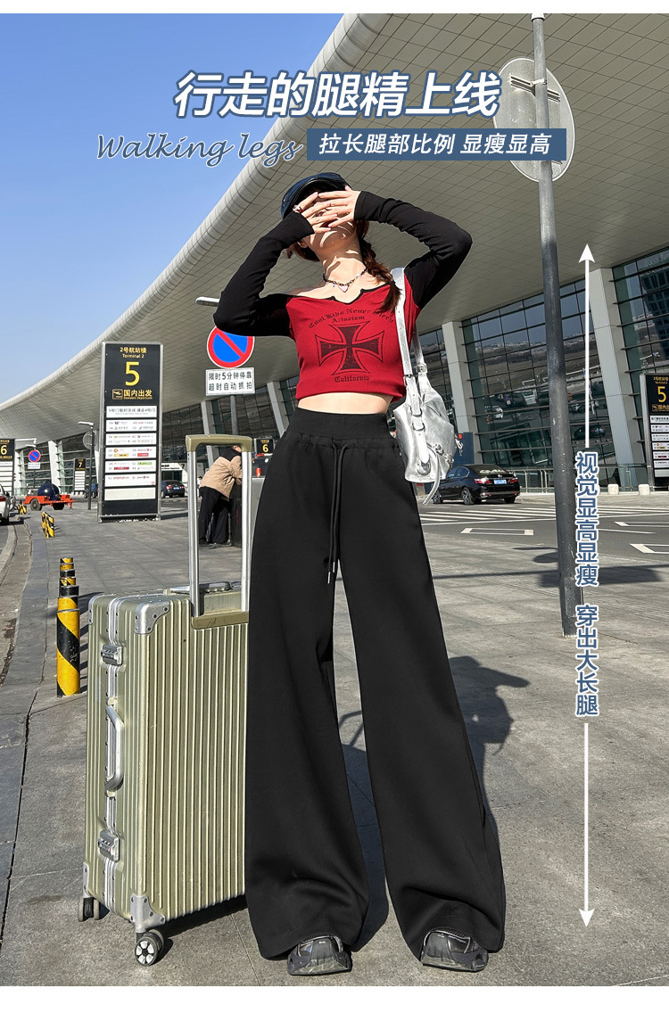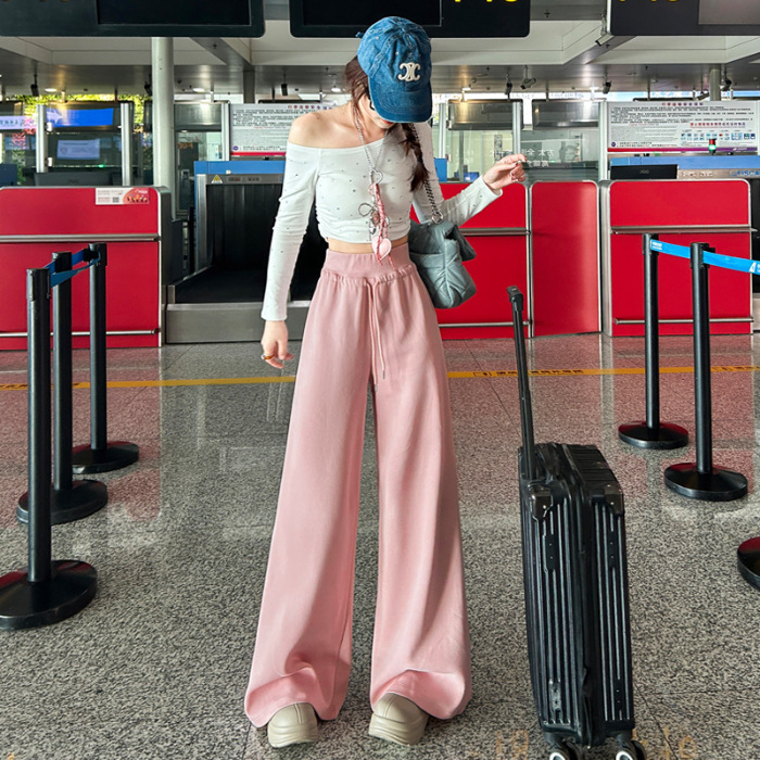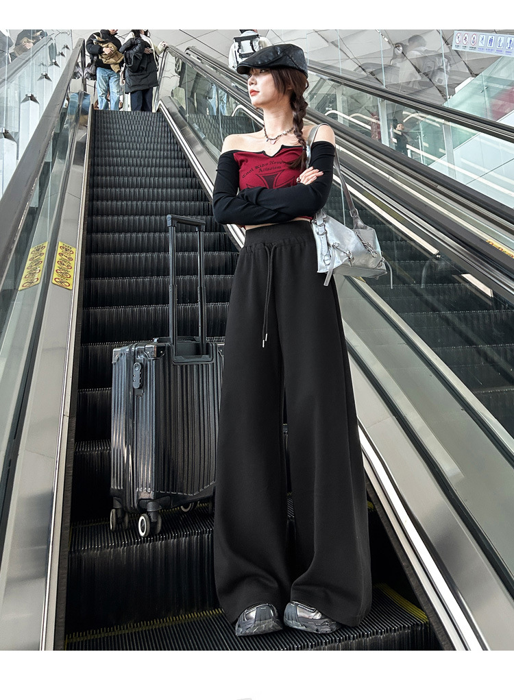 2025 아메리칸 스타일 레트로 넉넉한 스트링과 게으른 직선 캐주얼 바지 여성 및 롱 바지스토어 가기