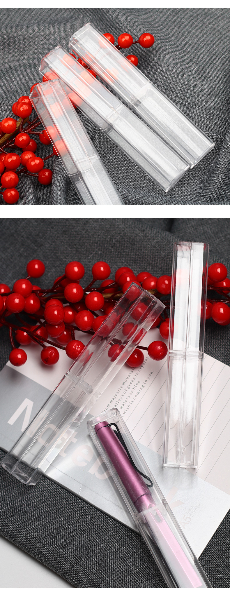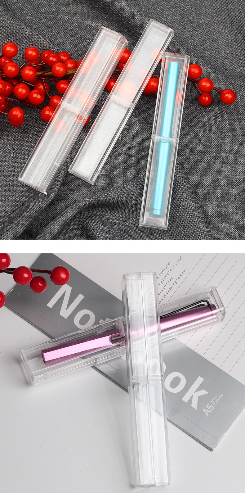 투명 펜 케이스 플라스틱 크리스탈 스타일 직사각형 펜 케이스 6가지 색상 선택 가능 휴대용 펜 케이스