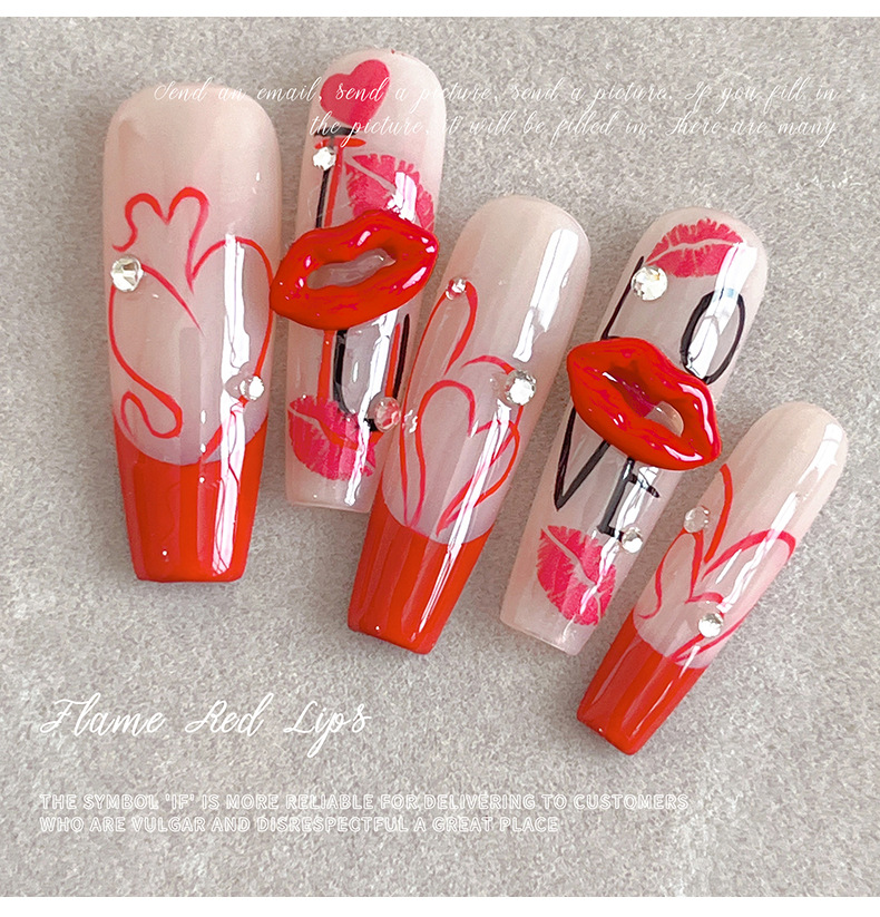 네일 아트 합금 레드 립 쥬얼리 러브 로즈 섹시 레드 립 레드 씰 착용 갑옷 국경 장식 도매스토어 가기
