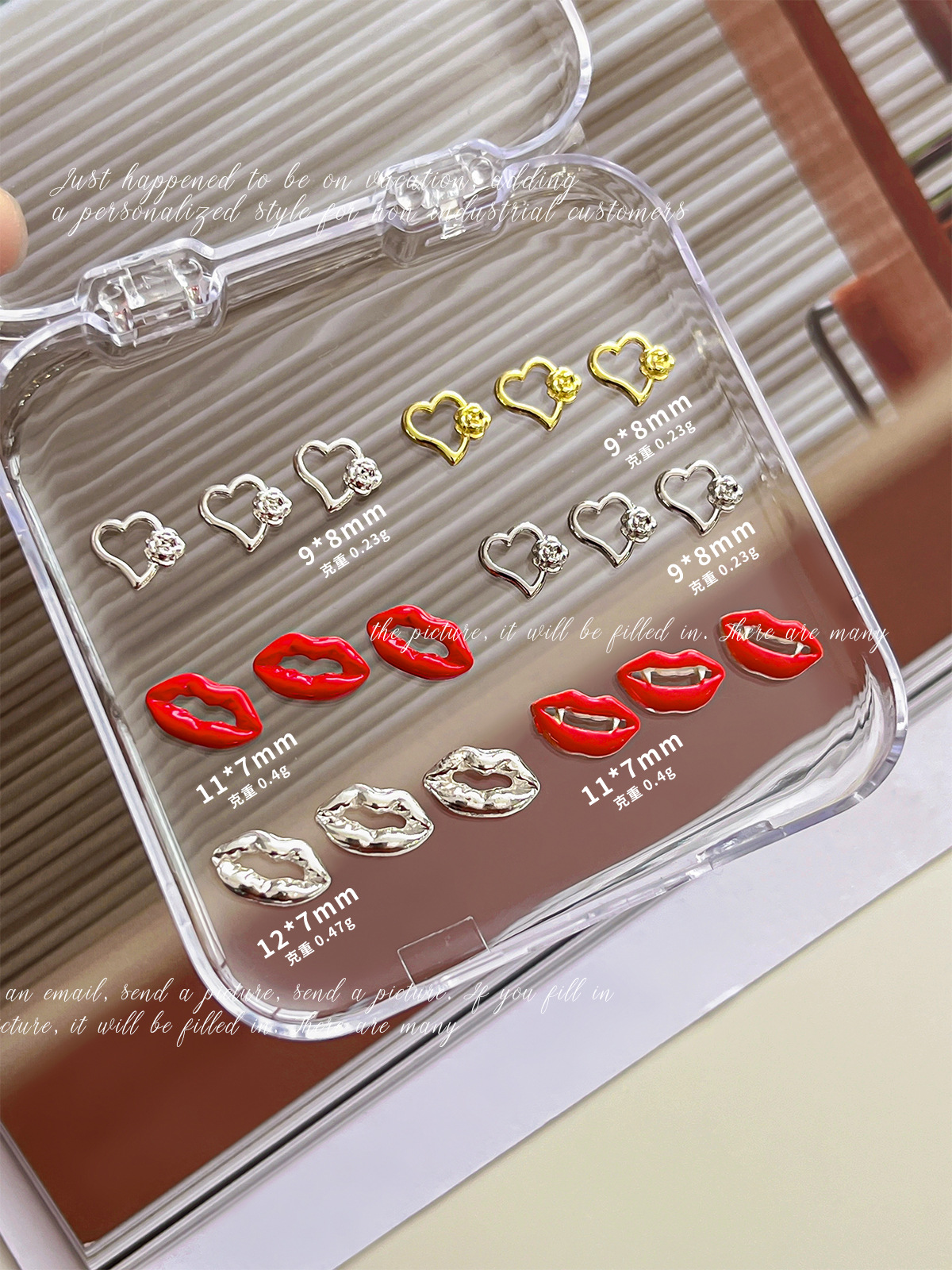 네일 아트 합금 레드 립 쥬얼리 러브 로즈 섹시 레드 립 레드 씰 착용 갑옷 국경 장식 도매
