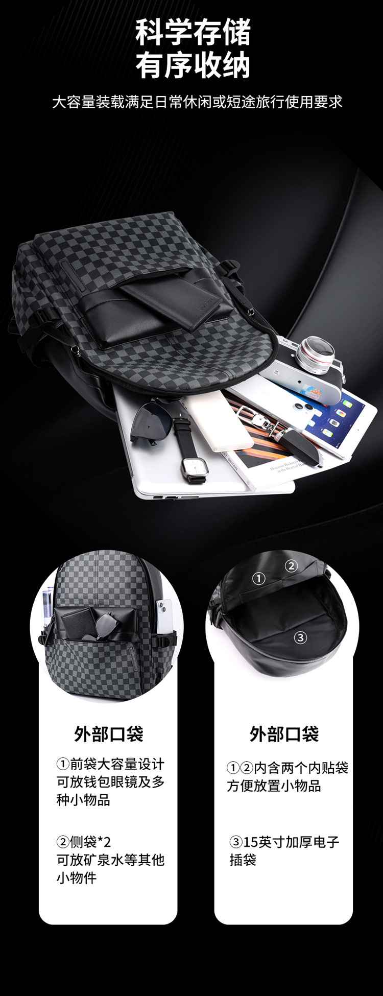 비즈니스 트렌디 한 격자 무늬 배낭 모든 경기 캐주얼 남성 통근 컴퓨터 배낭 대용량 여행 배낭 Schoolbag