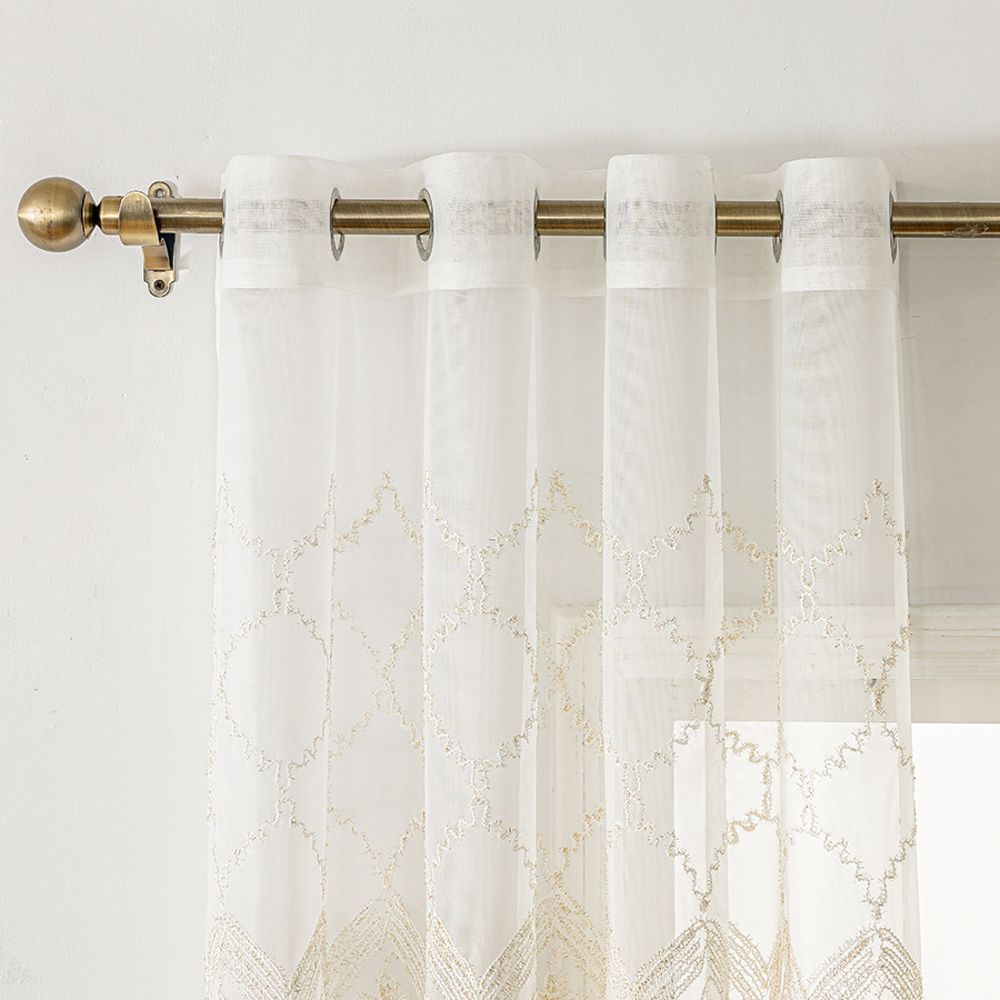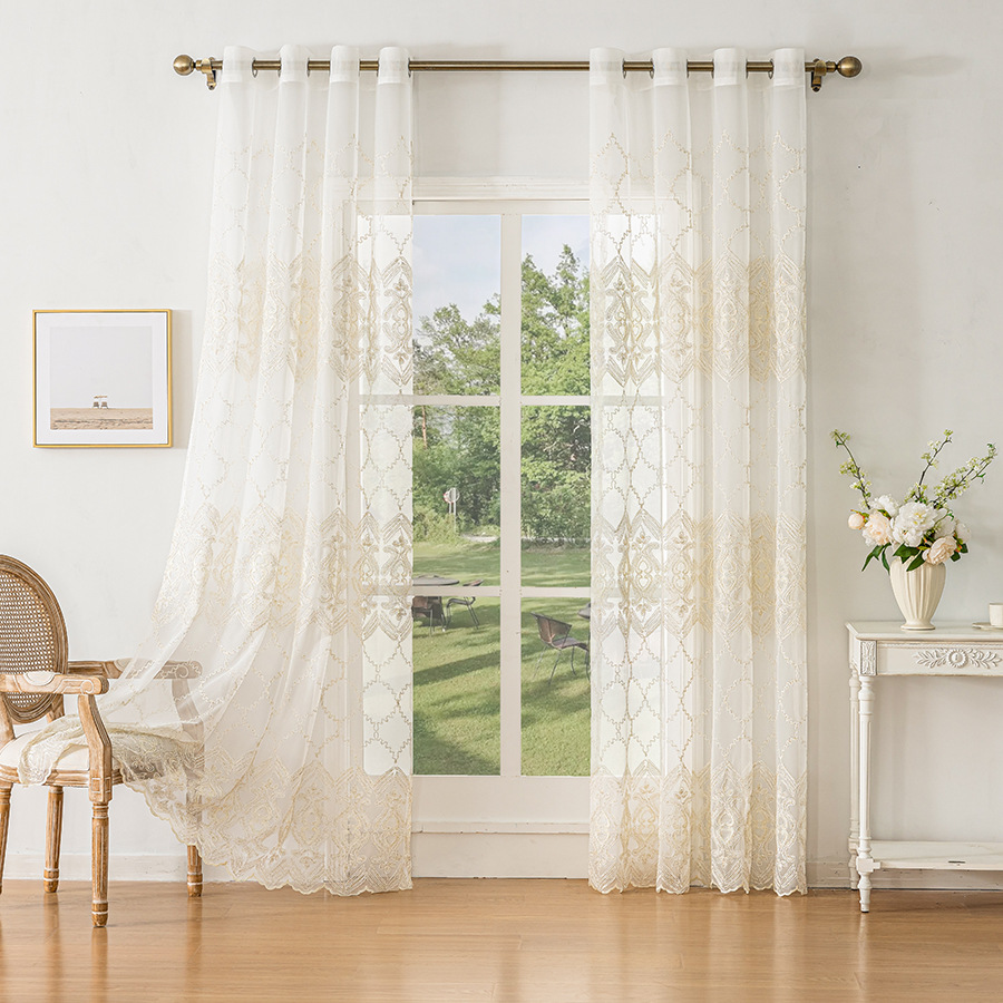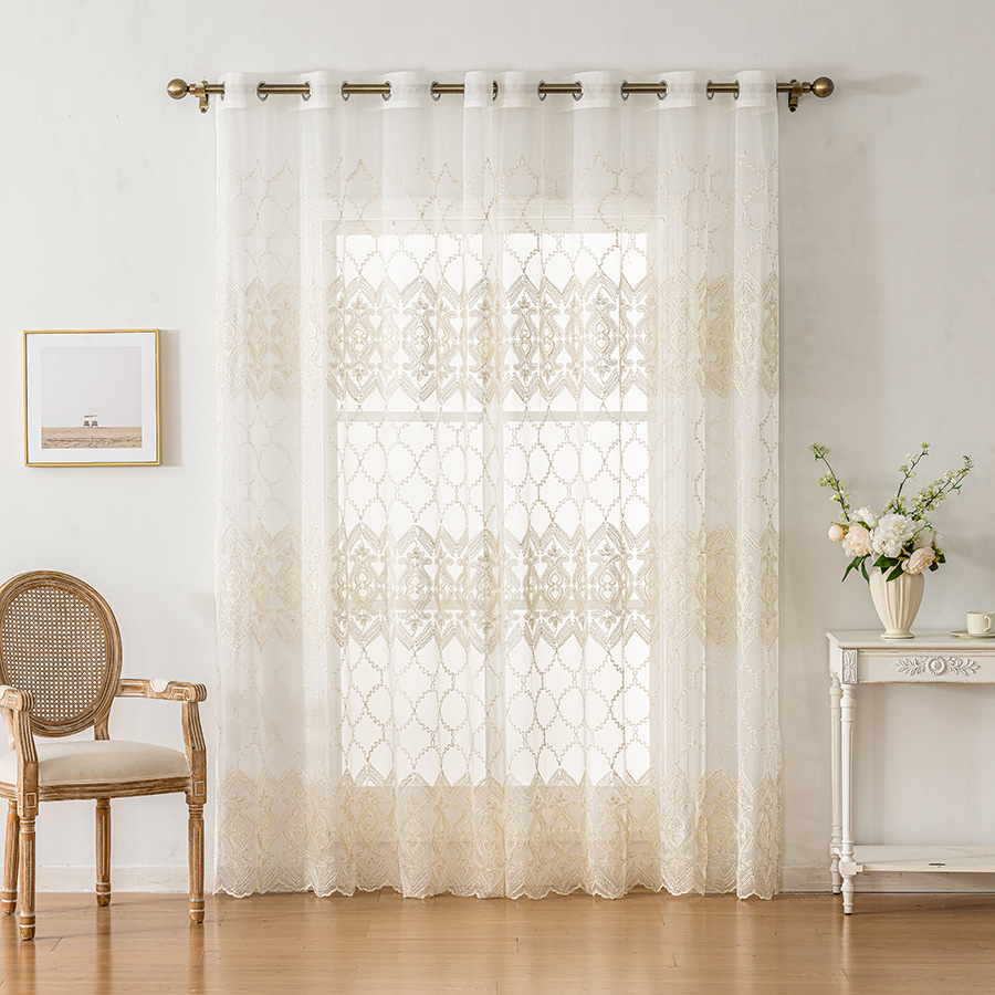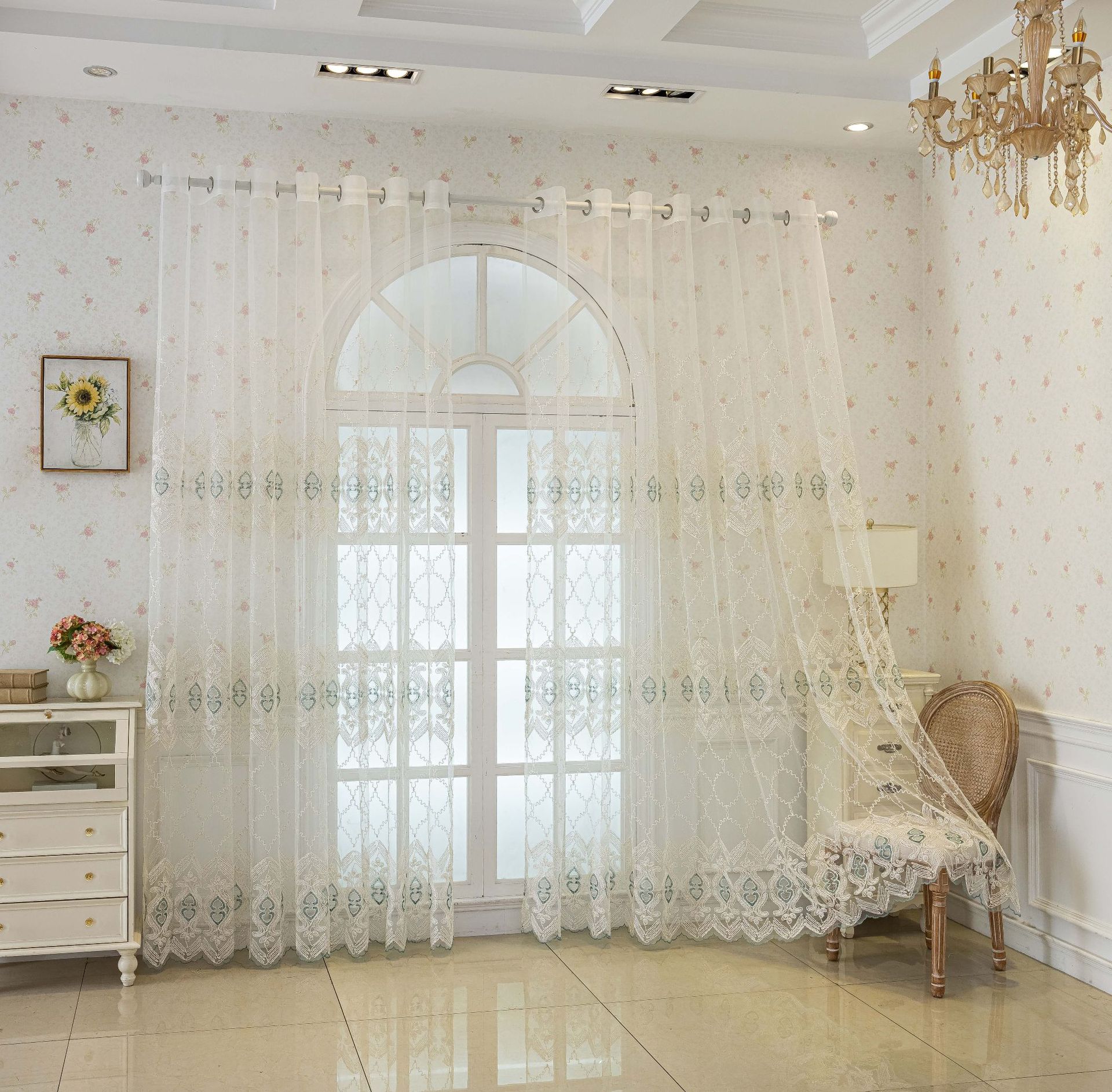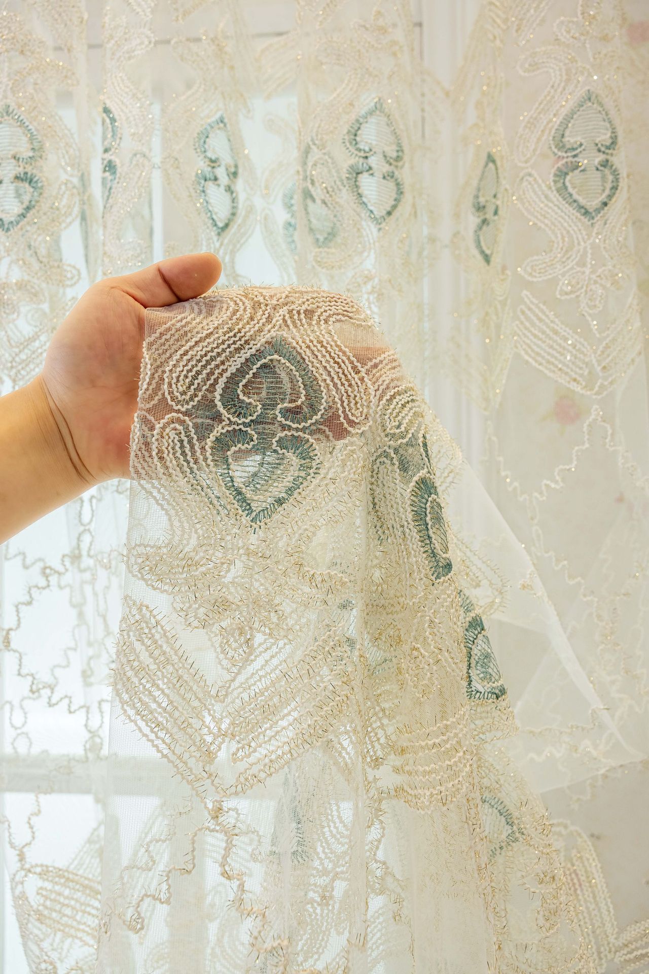 국경 창 화면 자수 원사 커튼 거실 침실 발코니 조명 전송 완성 커튼 유럽 현대 간단한 공장 도매