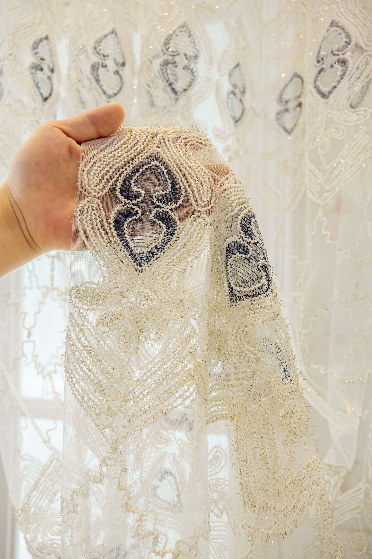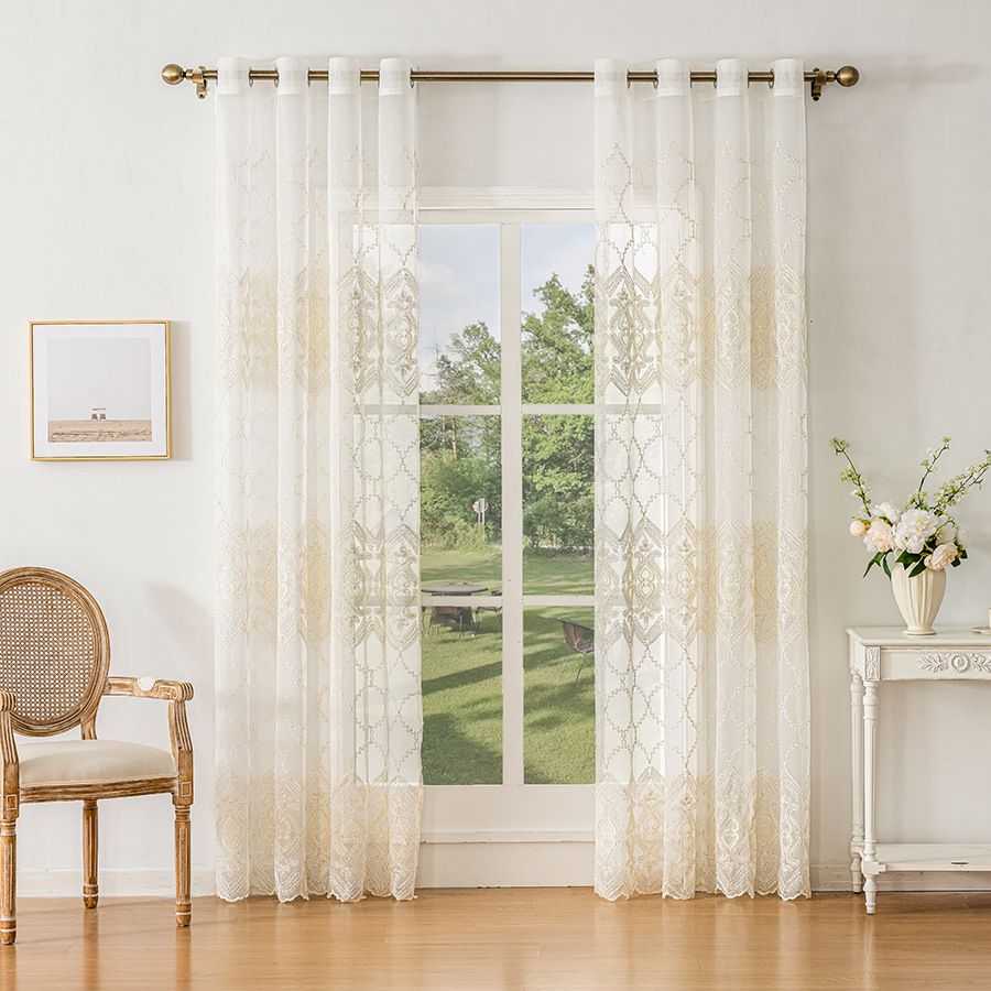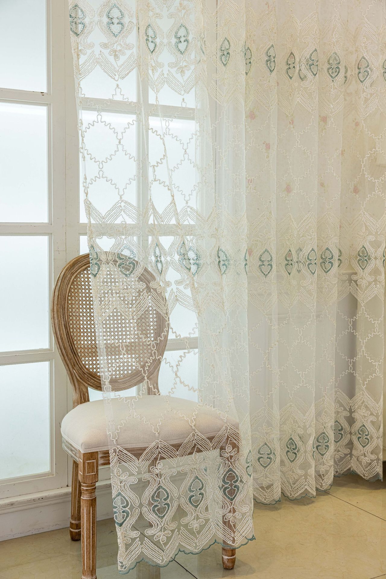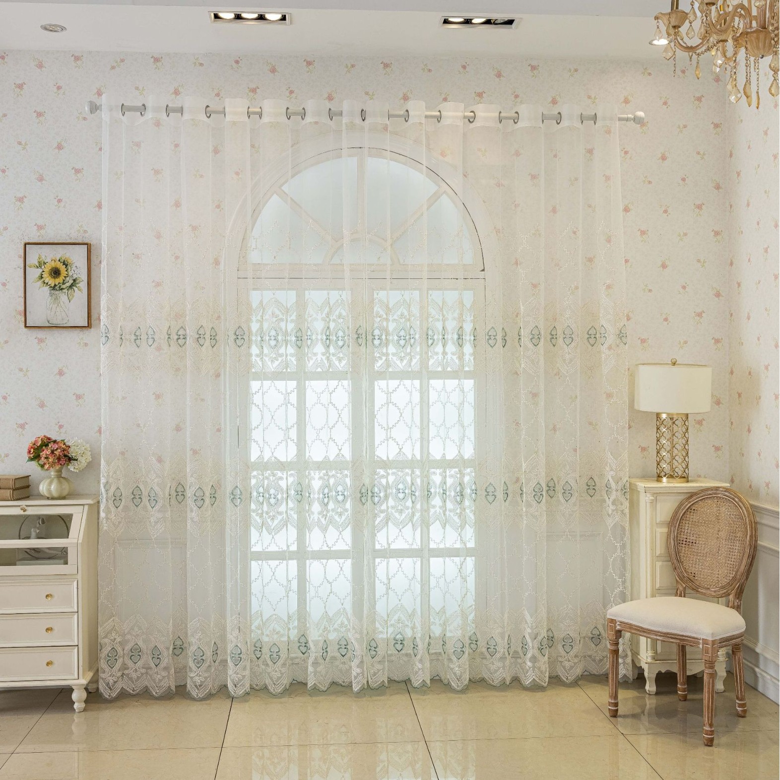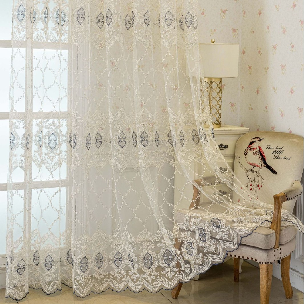 국경 창 화면 자수 원사 커튼 거실 침실 발코니 조명 전송 완성 커튼 유럽 현대 간단한 공장 도매