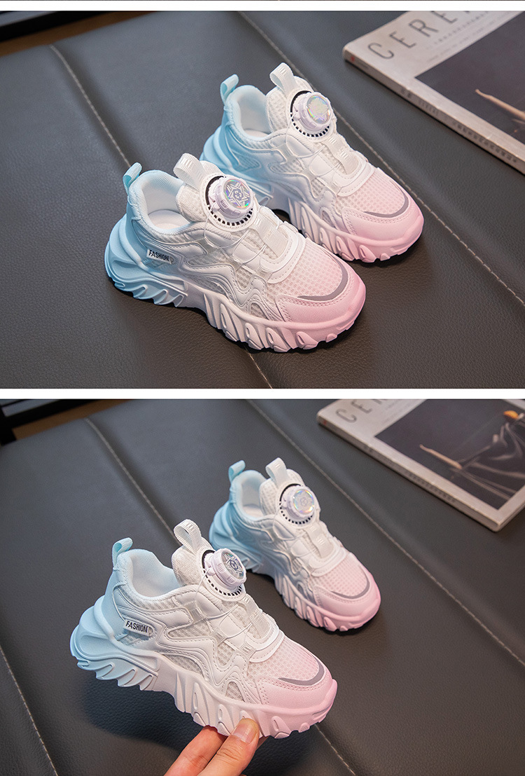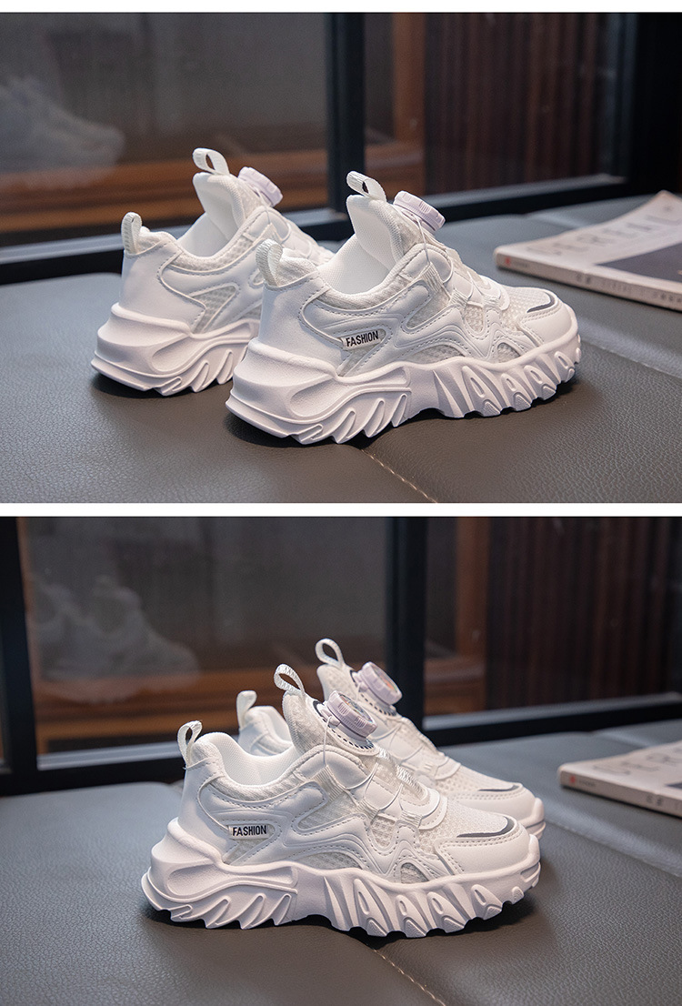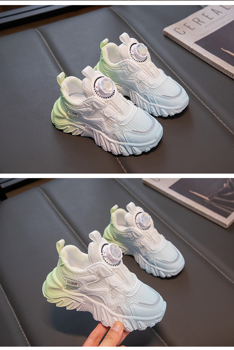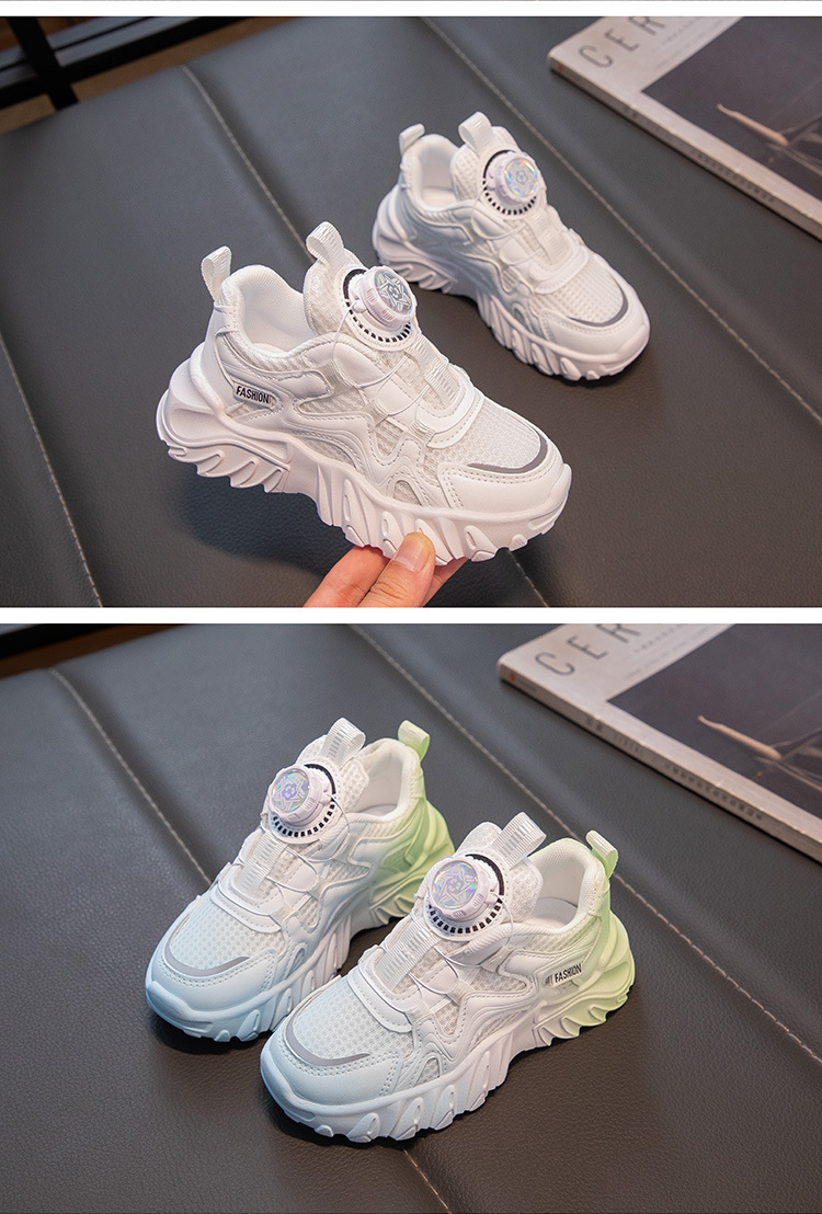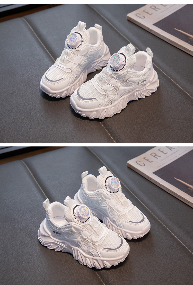 어린이 통기성 운동화 2025 봄 남녀 아동용 단화 회전 버튼 흰색 운동화 런닝화 내마모성 미끄럼 방지스토어 가기