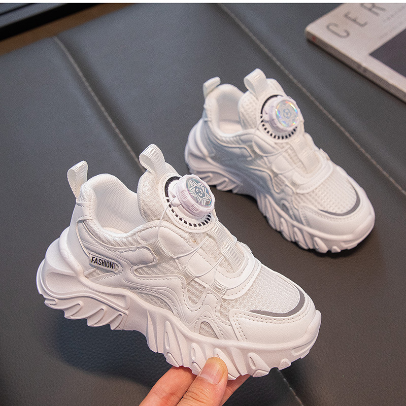 어린이 통기성 운동화 2025 봄 남녀 아동용 단화 회전 버튼 흰색 운동화 런닝화 내마모성 미끄럼 방지