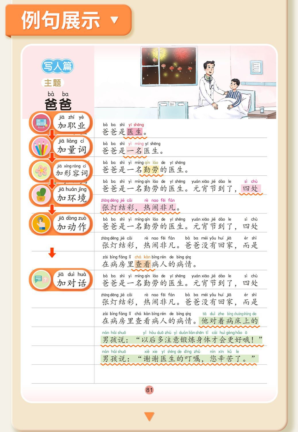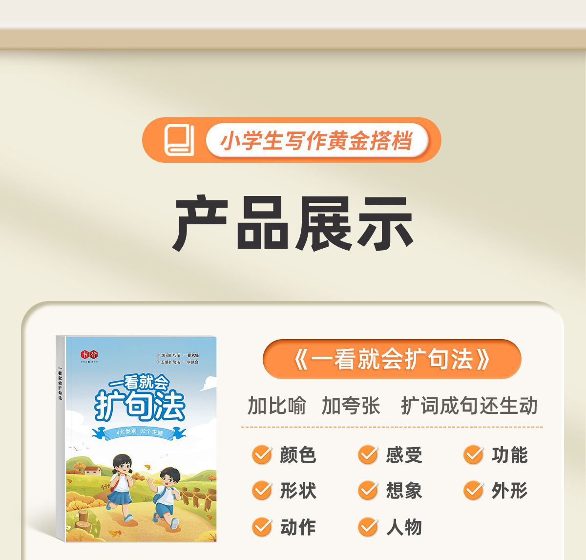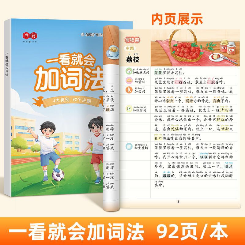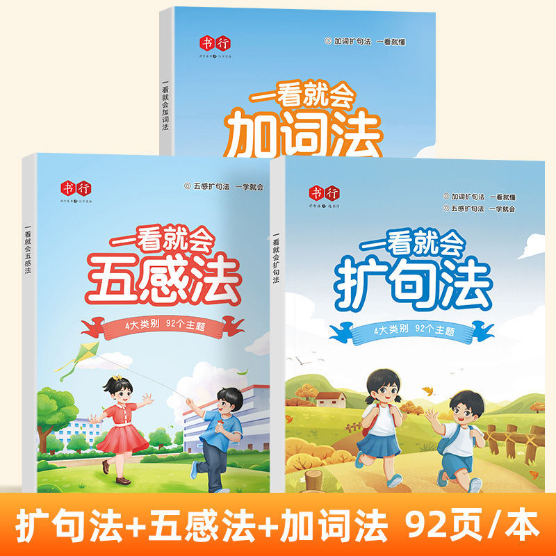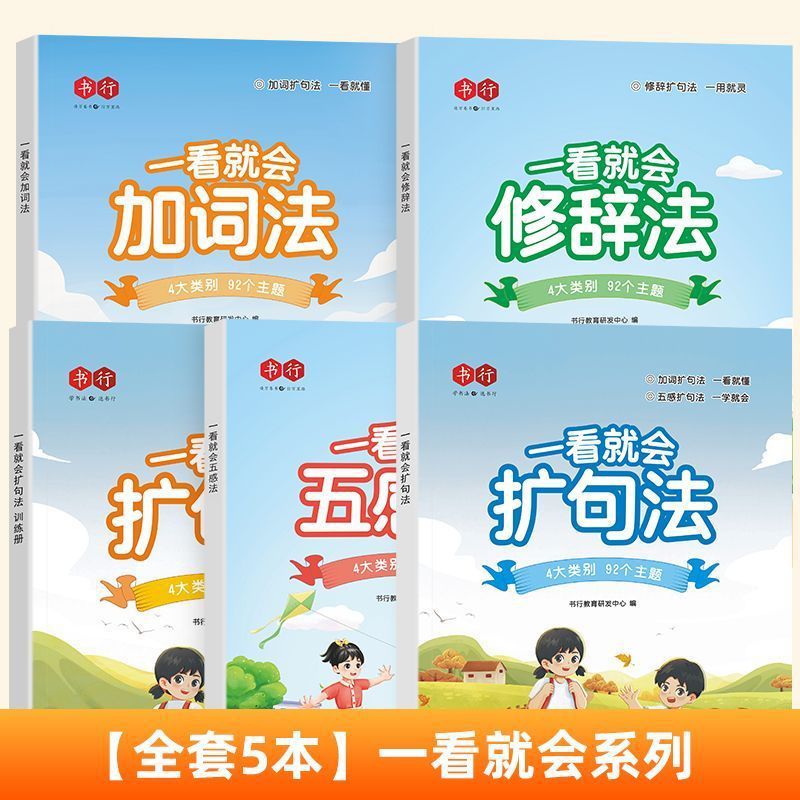 책 줄 초등학교 중국 5 가지 감각 방법 확장 구문 쓰기 훈련 사람들은 1 학년, 2 학년 및 3 학년 독서 그림 쓰기 기술을 가르칩니다.스토어 가기