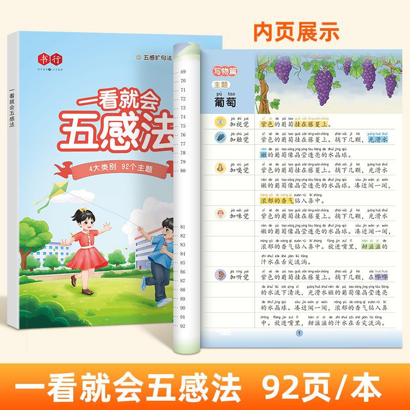 책 줄 초등학교 중국 5 가지 감각 방법 확장 구문 쓰기 훈련 사람들은 1 학년, 2 학년 및 3 학년 독서 그림 쓰기 기술을 가르칩니다.