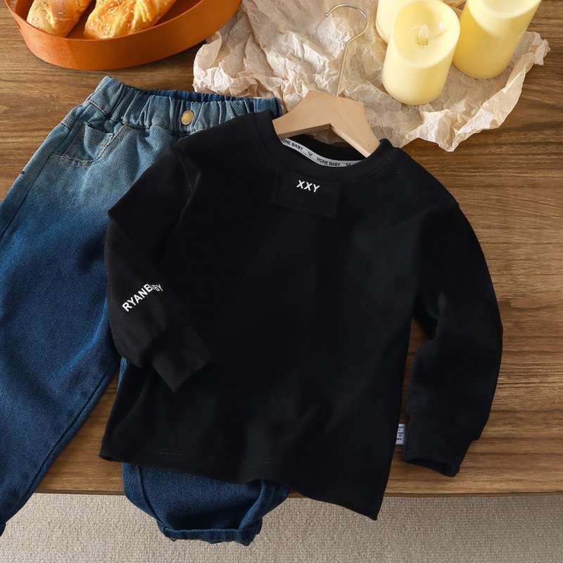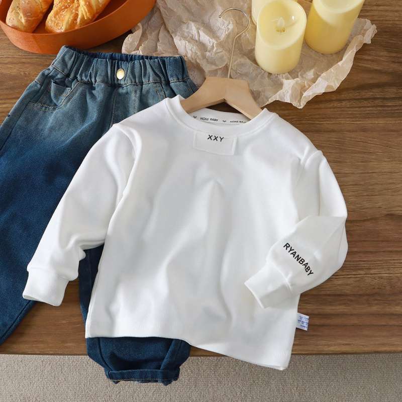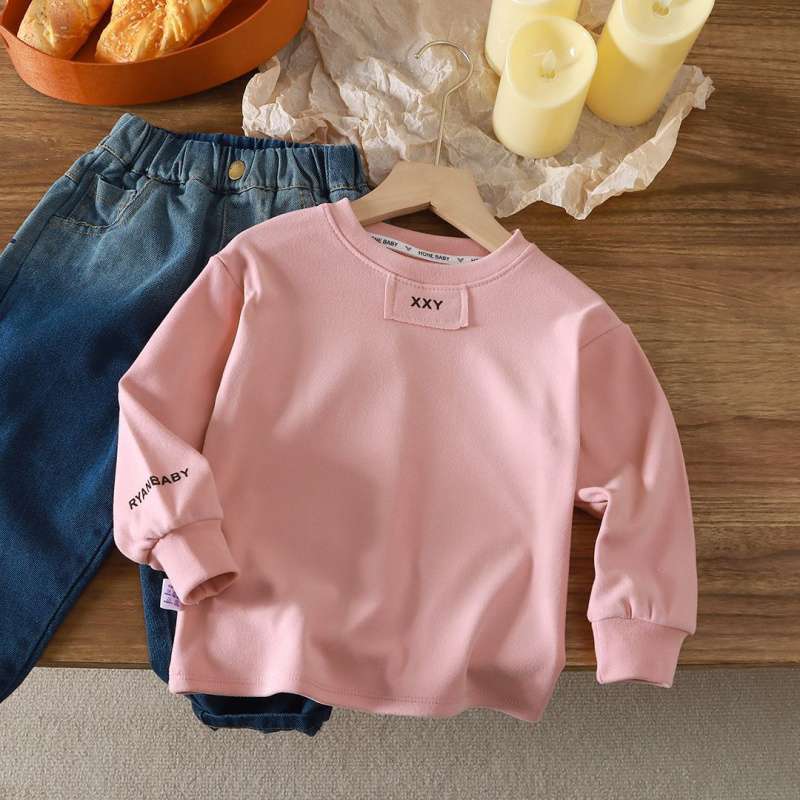 어린이 속옷 봄과 가을베이스 새로운 스타일 아기 싱글 탑 큰 어린이 둥근 목 긴 소매 가을 옷 소년 소녀 티셔츠