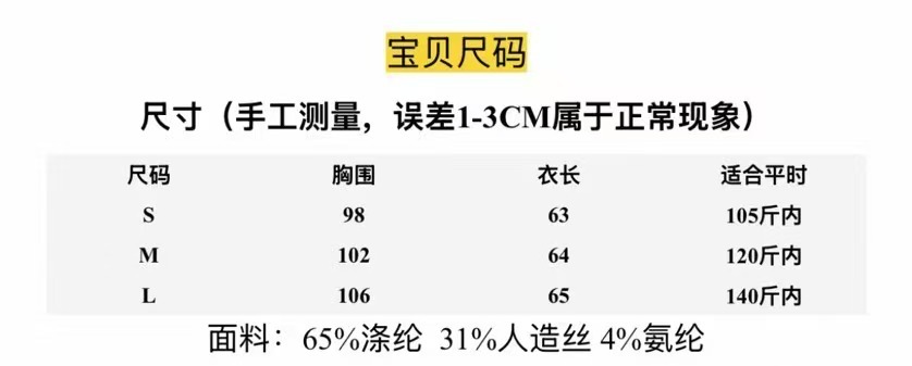 成分:65%涤纶 31%人造丝 4%氨纶
