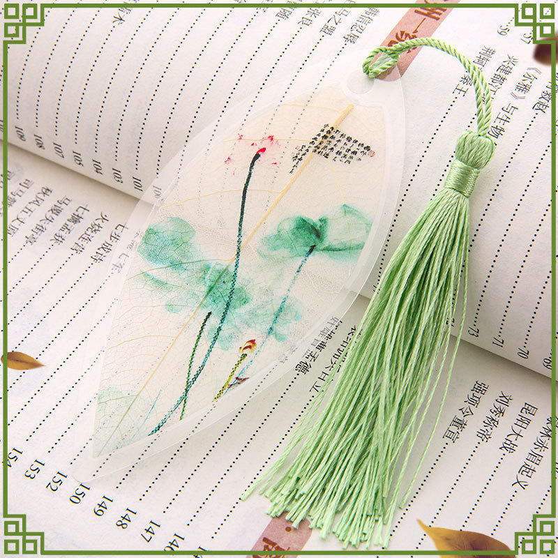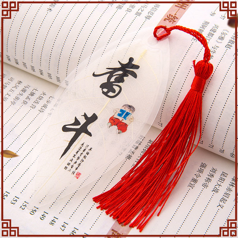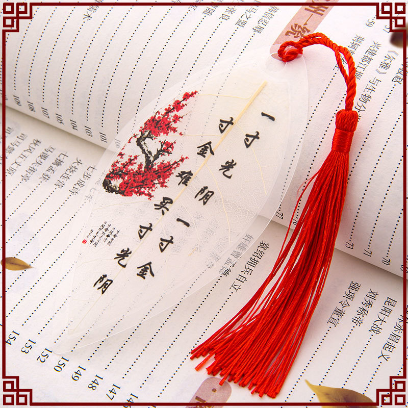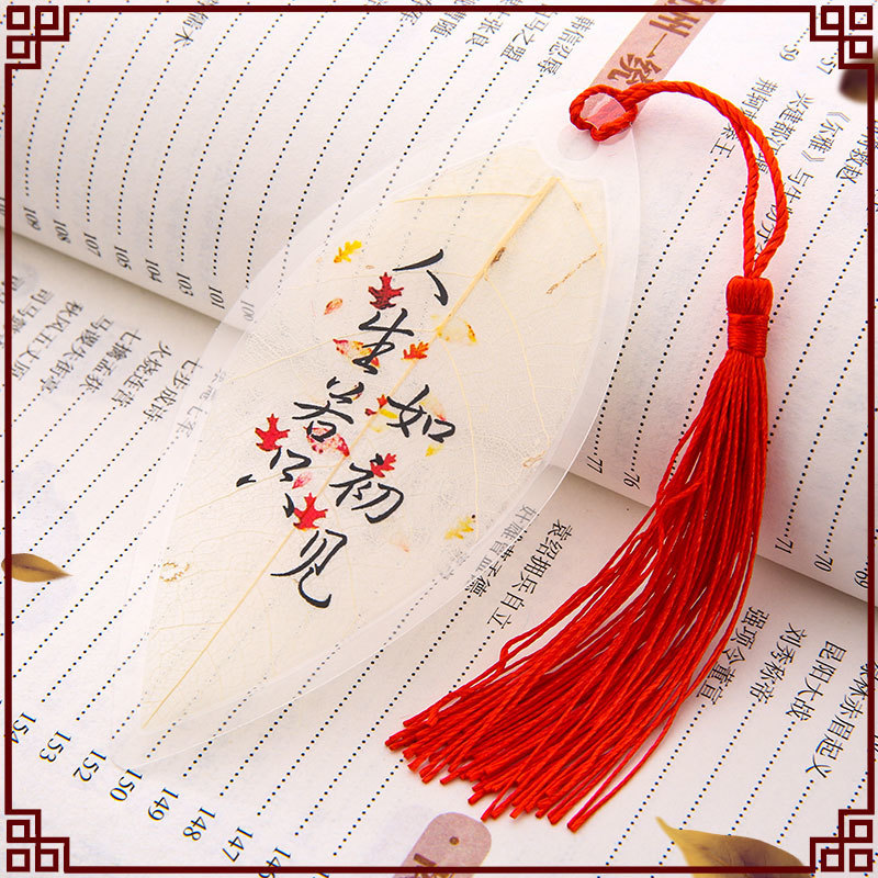 古风叶脉书签创意小清新学生用韩国复古典中国风树叶礼物文具流苏