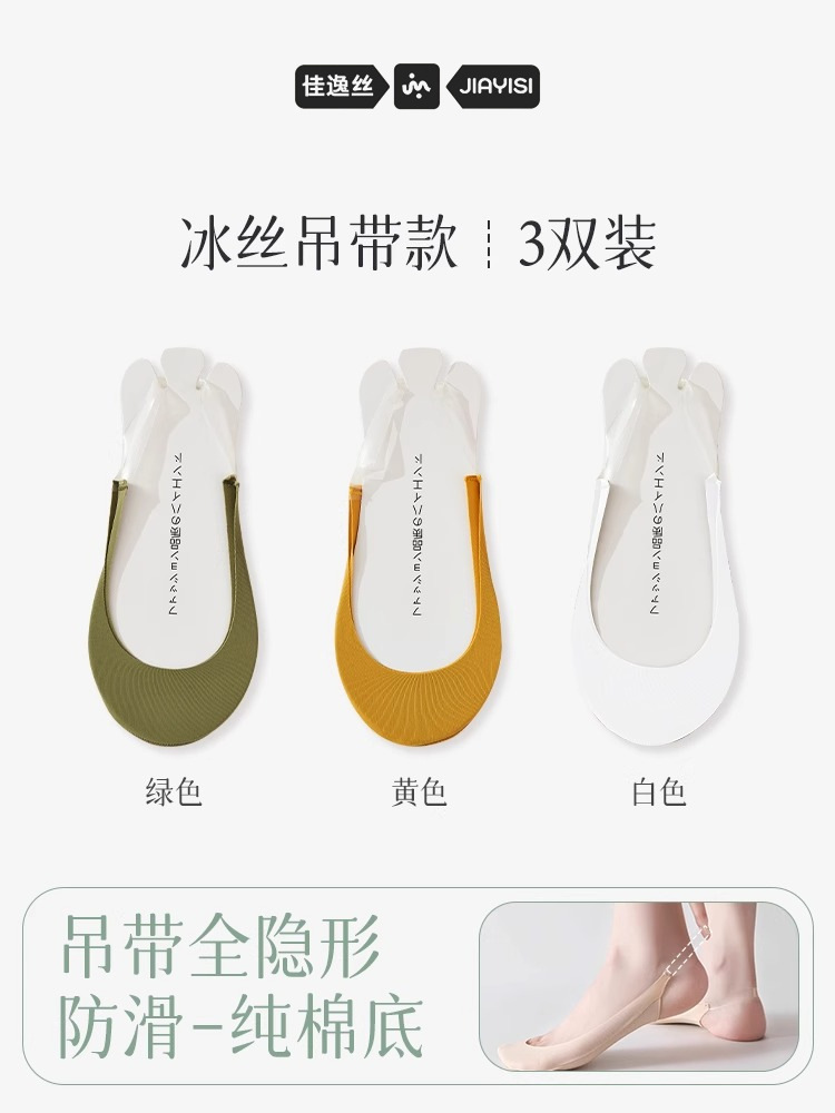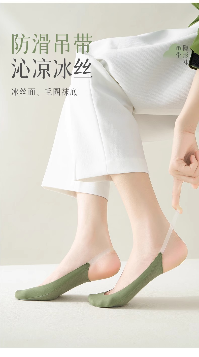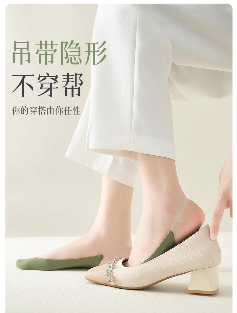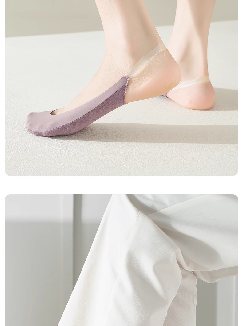 아이스 실크 슬링 보트 양말 여성 여름 얇은 면 바닥 얕은 입 보이지 않는 미끄럼 힐 하프 하이힐 양말