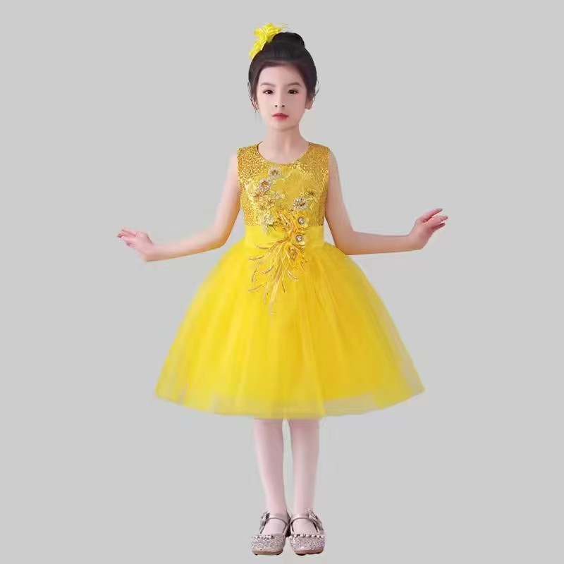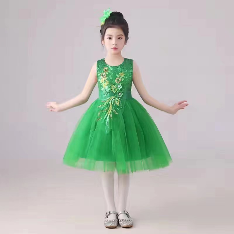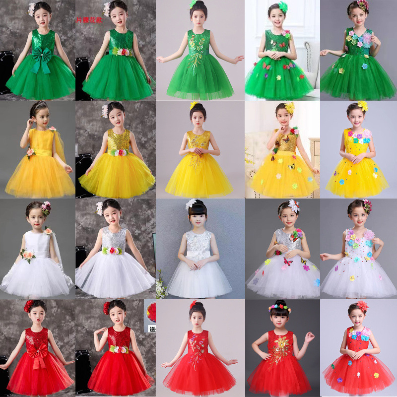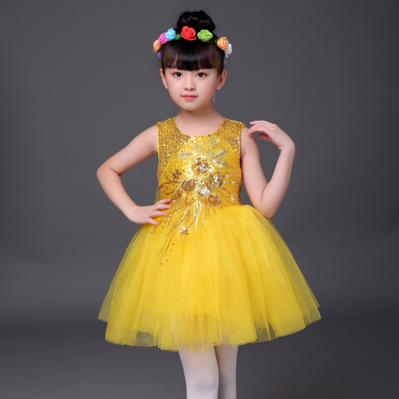 소년 소녀를위한 어린이 의상 스팽글 공주 원피스 푹신한 거즈 스커트 유치원 코러스 댄스스토어 가기