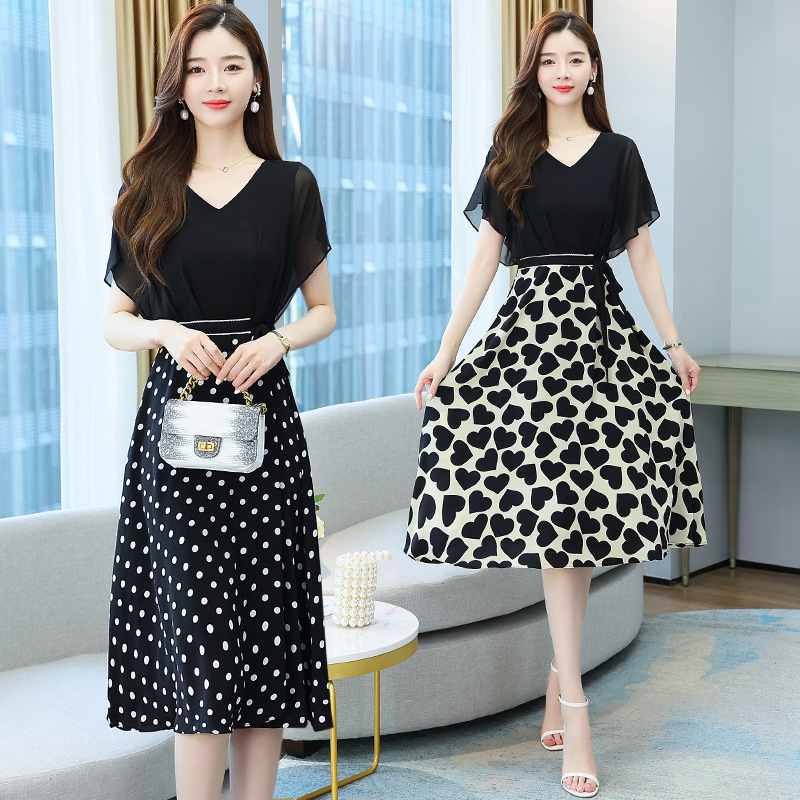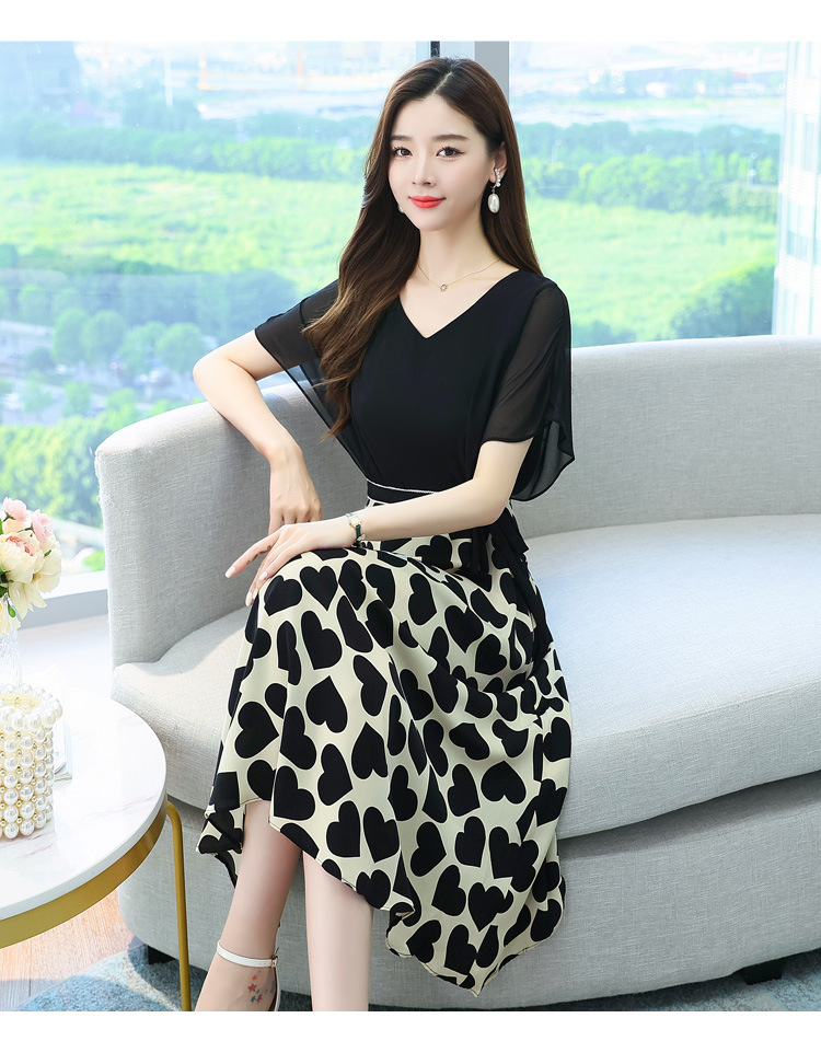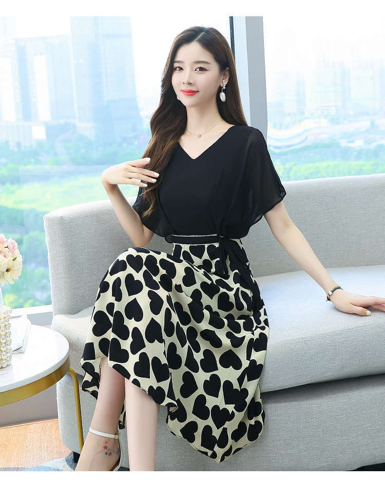 새로운 여름 원피스 가짜 투피스 원피스 쉬폰 패션 여름 여성의 우아한 인기 스커트스토어 가기
