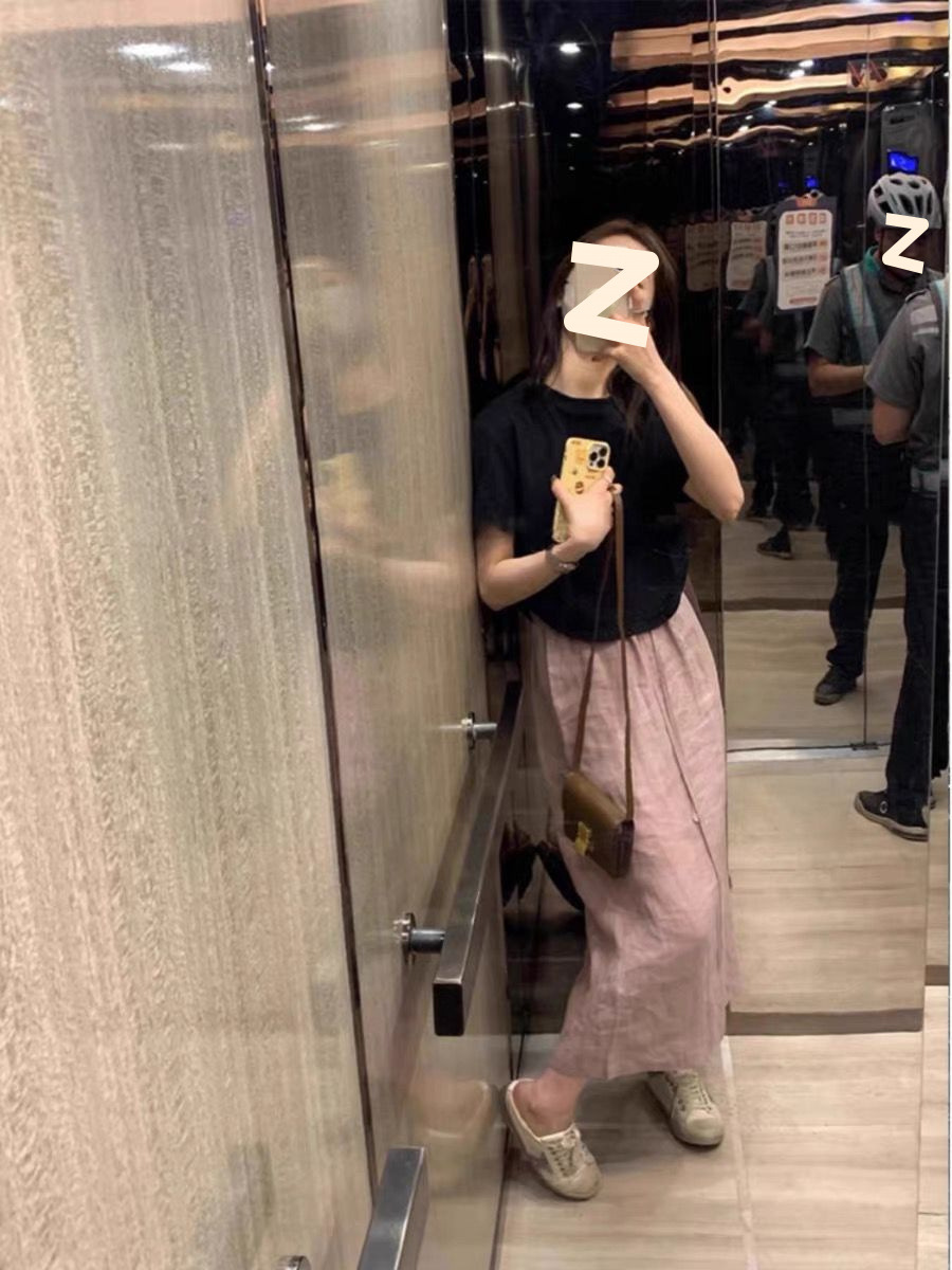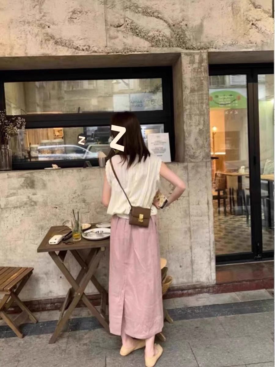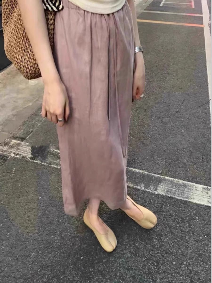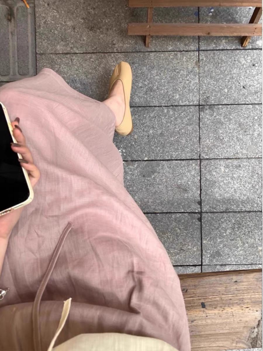 Ins Korean Style 핑크 린넨 하이 웨이스트 스트레이트 스커트 여성용 봄과 여름 코튼 및 리넨 원피스 우산 스커트 라미 스커트스토어 가기