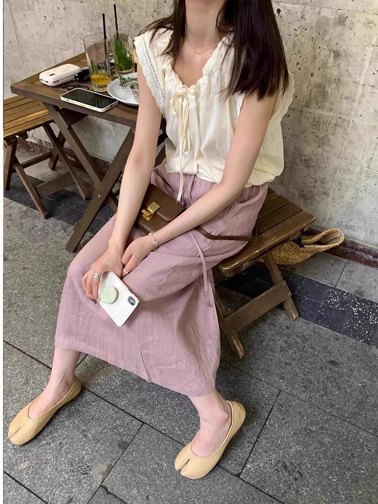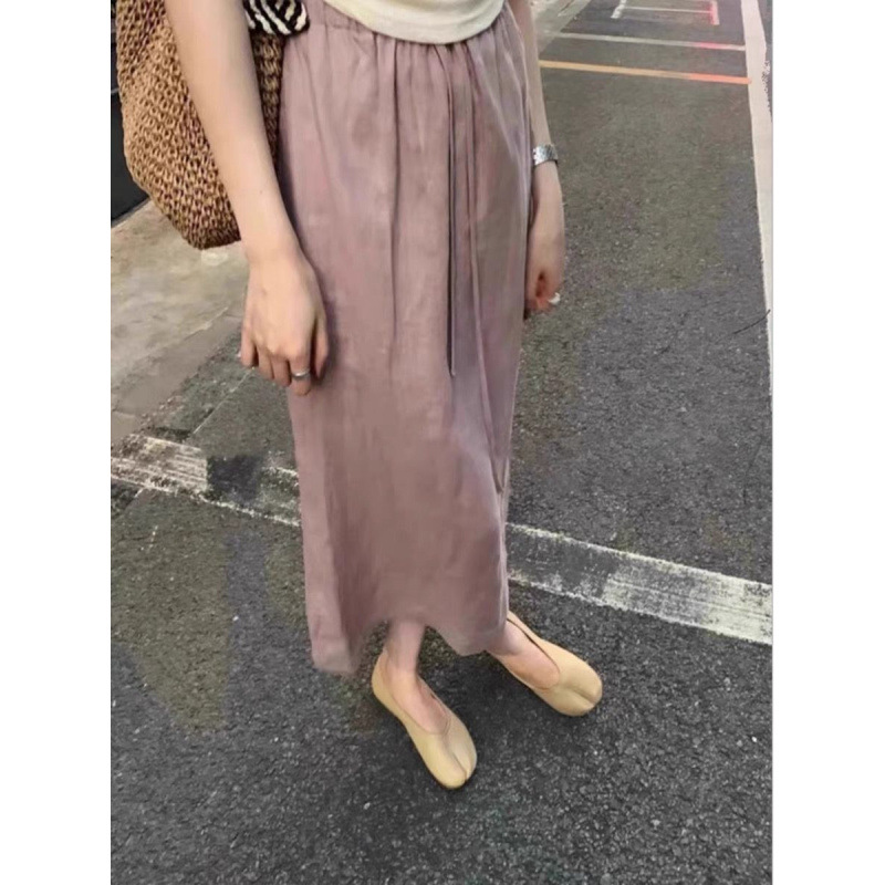 Ins Korean Style 핑크 린넨 하이 웨이스트 스트레이트 스커트 여성용 봄과 여름 코튼 및 리넨 원피스 우산 스커트 라미 스커트