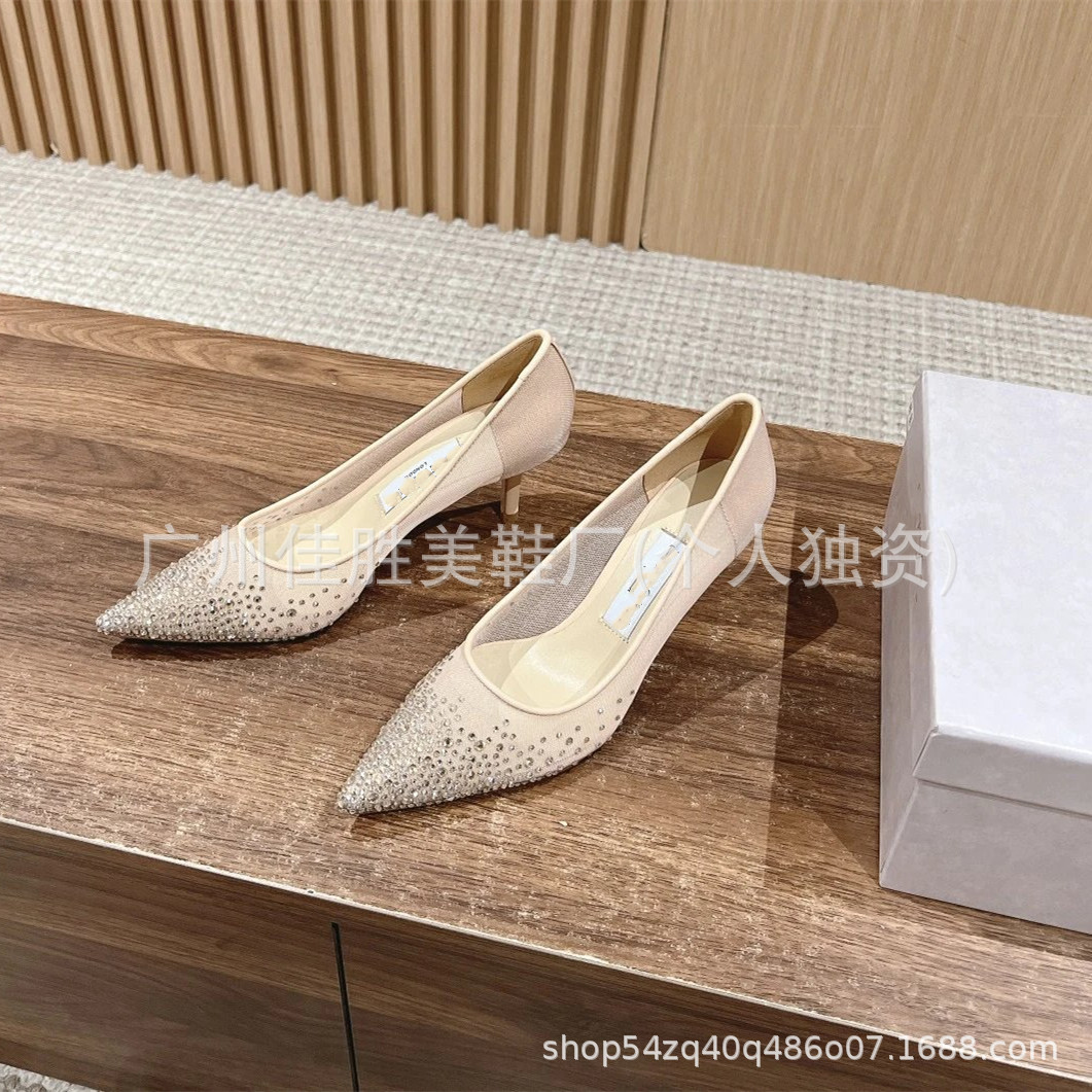 하이 에디션 JC 여성 신발 메쉬 웨딩 신발 얕은 입 스틸레토 힐을 가리키며 플랫 하단 라인스톤 페어리 스타일 신부 신발 싱글 신발스토어 가기
