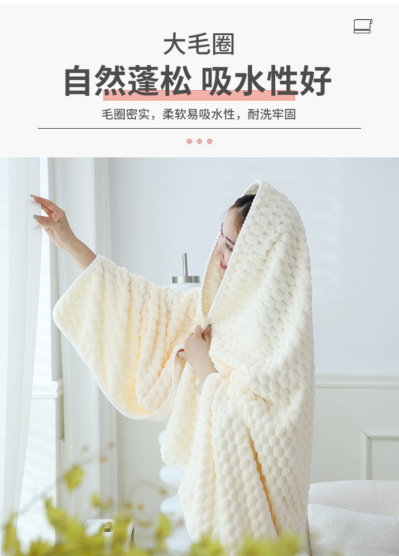 구름 격자 산호 양털 대형 목욕 타월 가정용 두꺼운 흡수성 소프트 커플 타월 목욕 타월 샤워 캡 세트스토어 가기