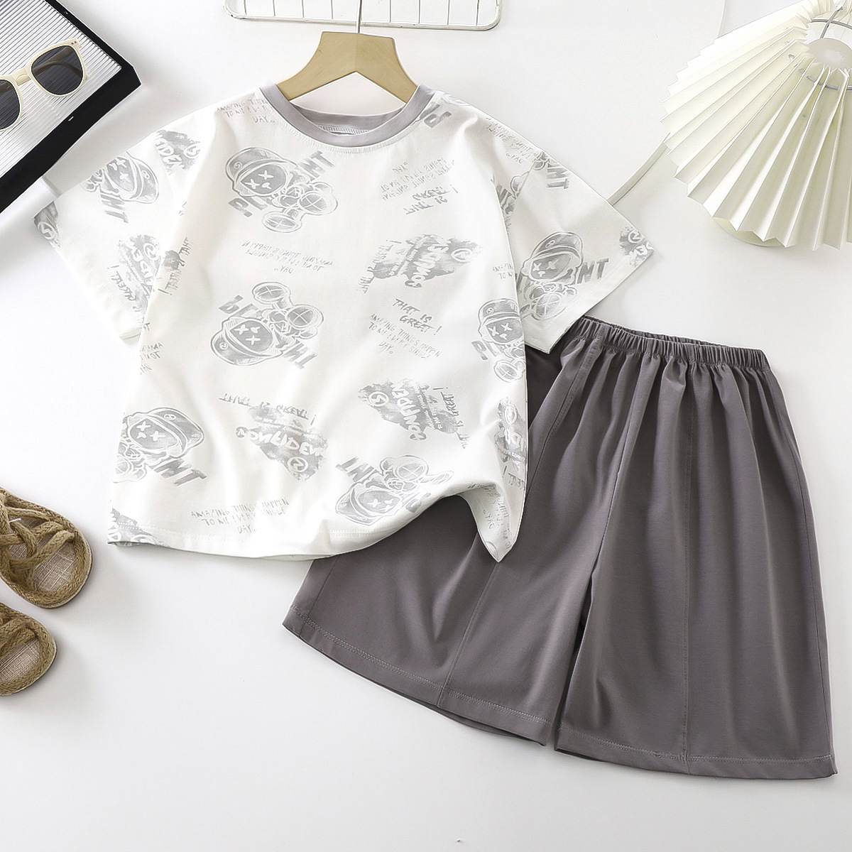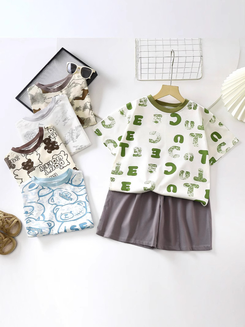여름 새로운 얼음 도자기 코튼 반바지 세트 어린이 홈 의류 에어컨 의류 얇은 아동복 헤어 세대스토어 가기
