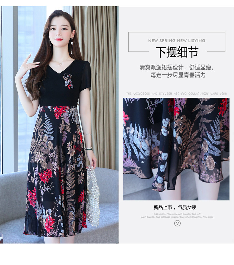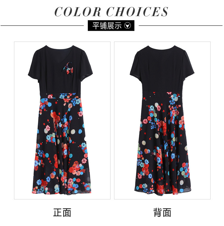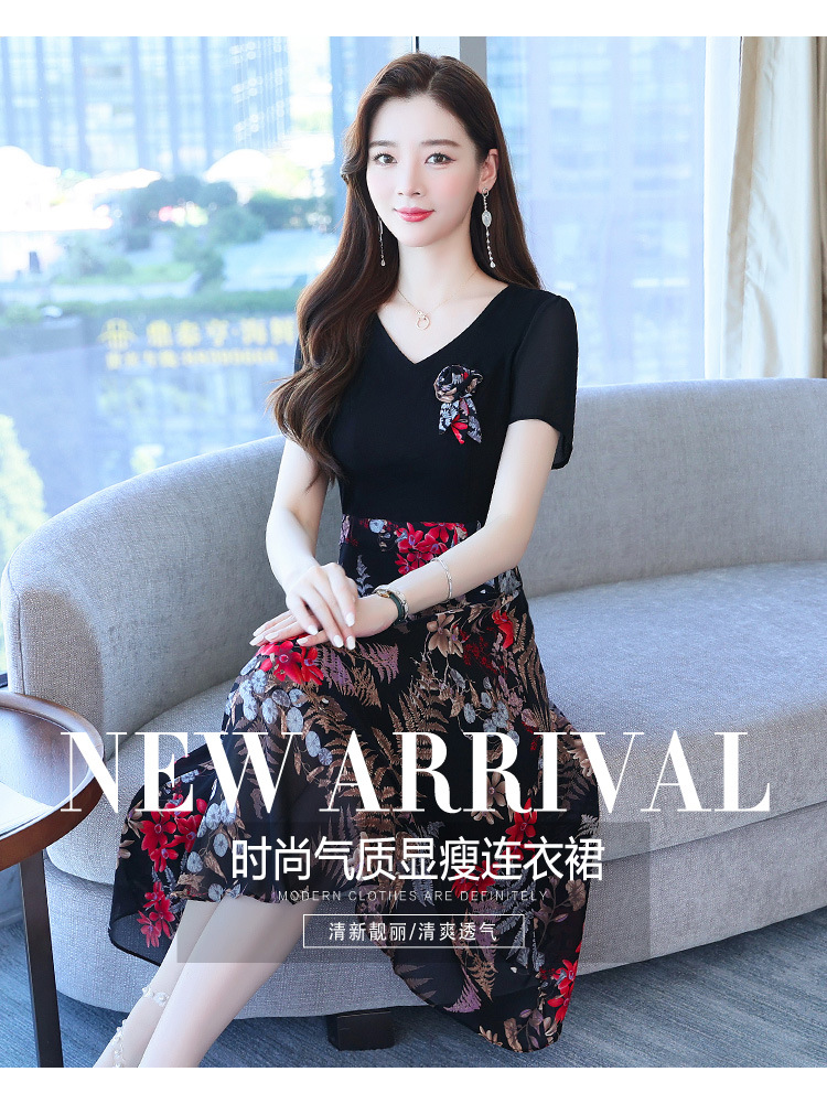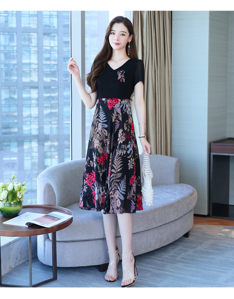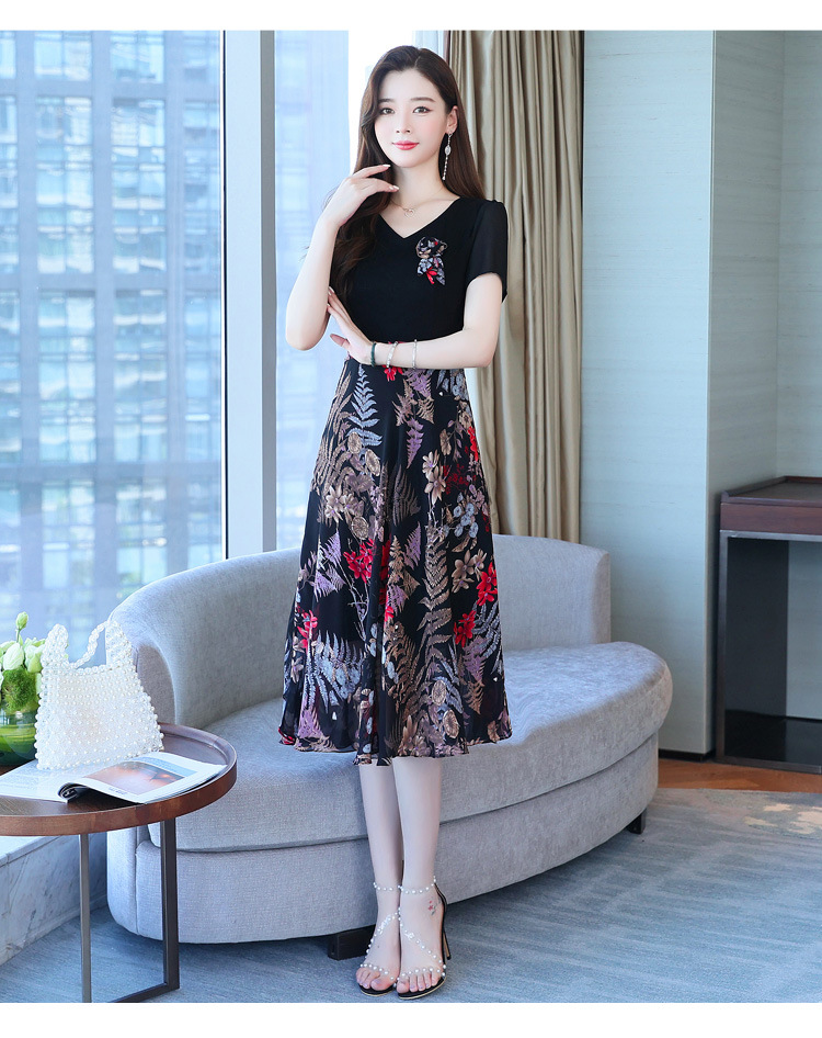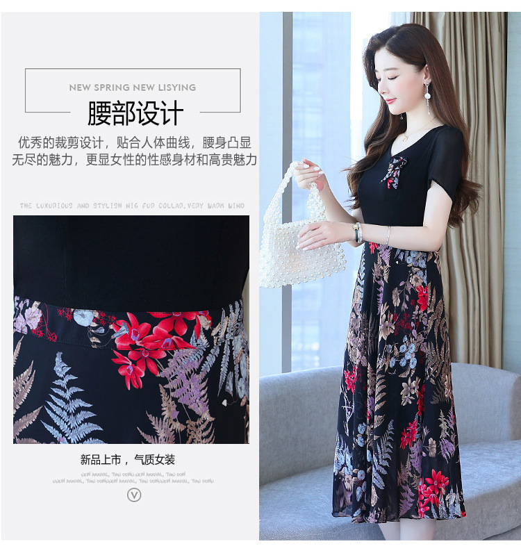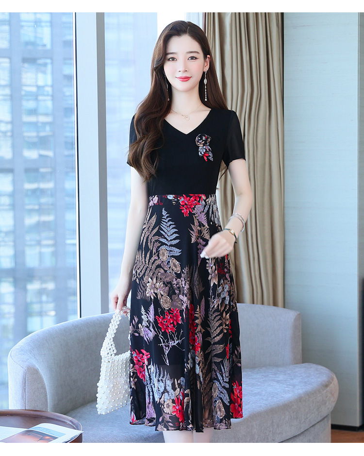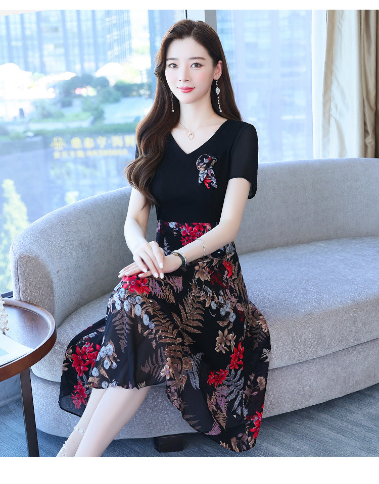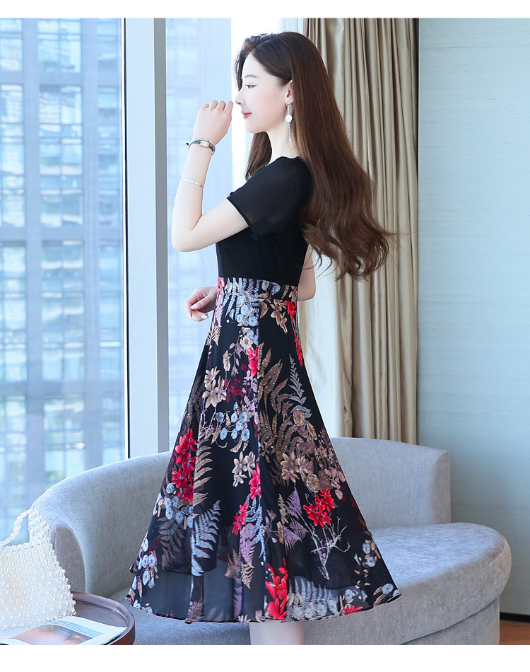가짜 투피스 원피스 여성 소외된 우아한 여름 스티칭 쉬폰 인쇄 유행 세련된 반팔 치마스토어 가기