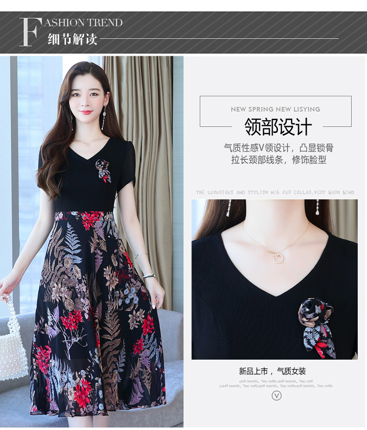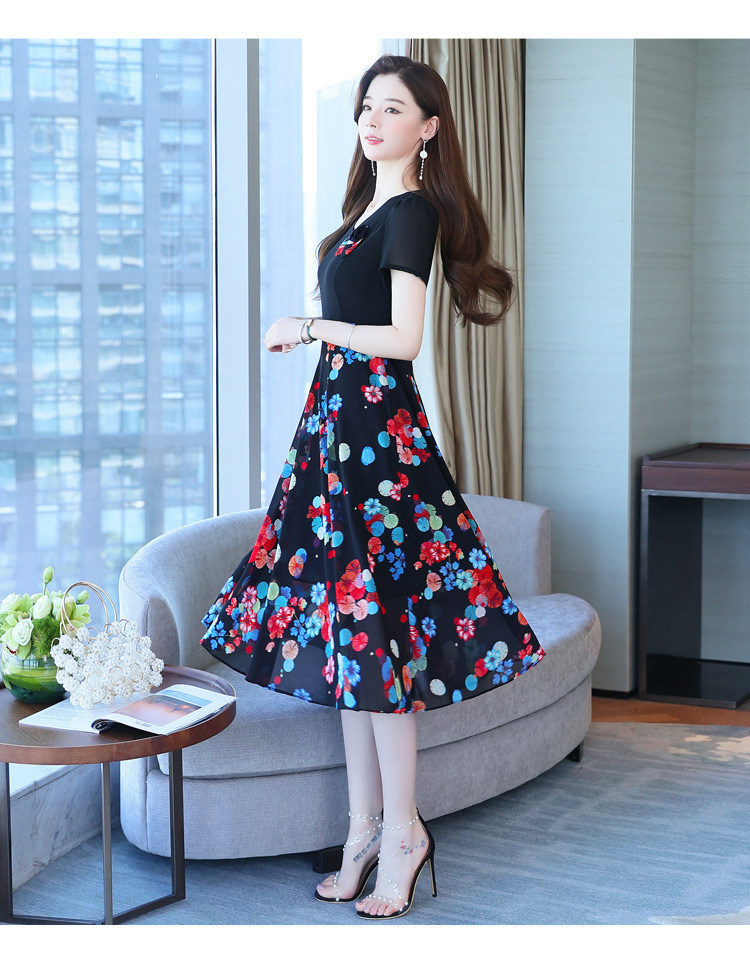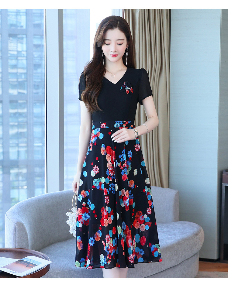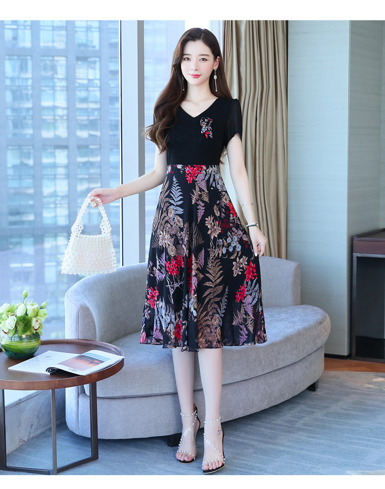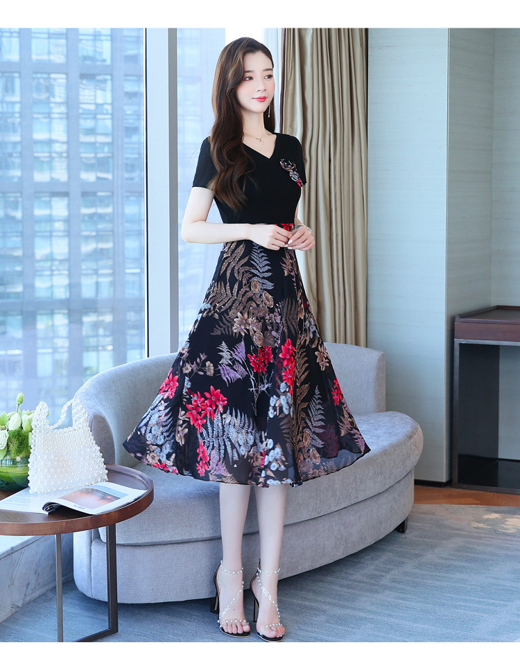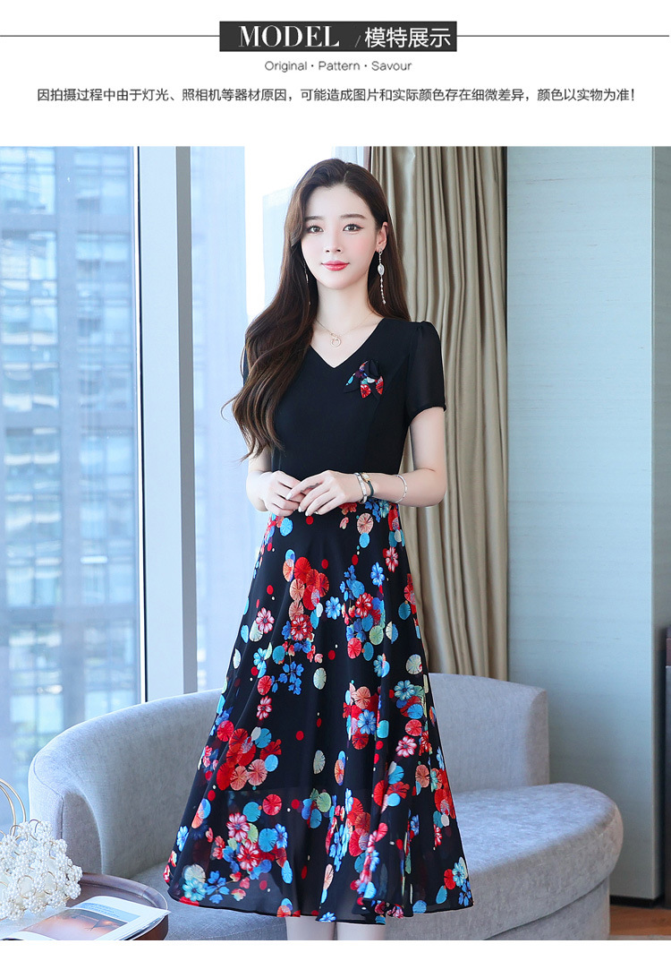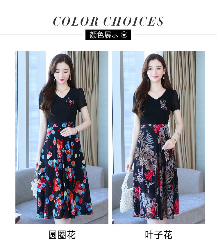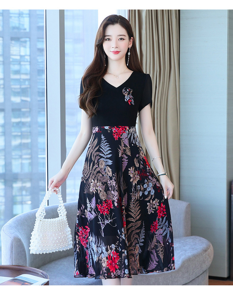 가짜 투피스 원피스 여성 소외된 우아한 여름 스티칭 쉬폰 인쇄 유행 세련된 반팔 치마스토어 가기