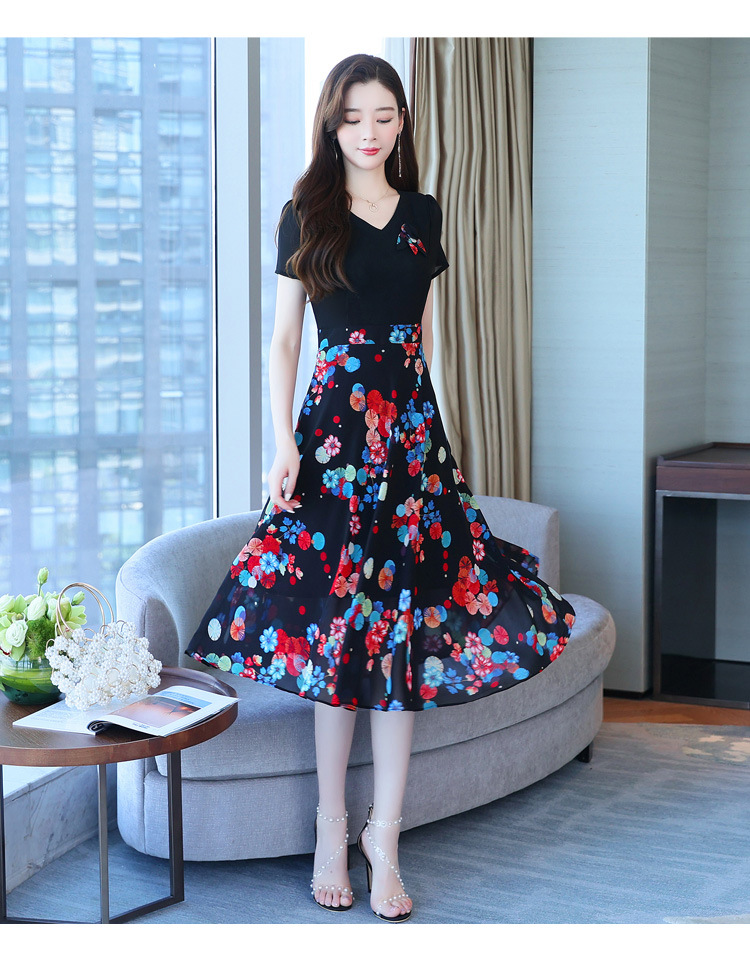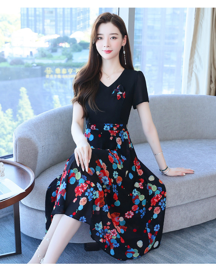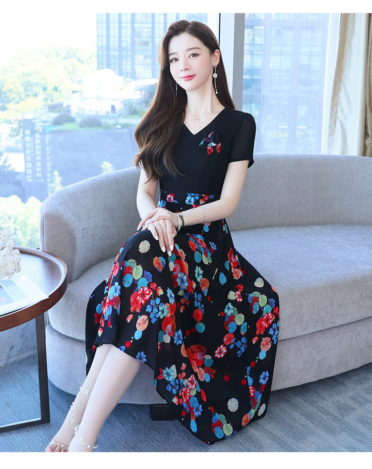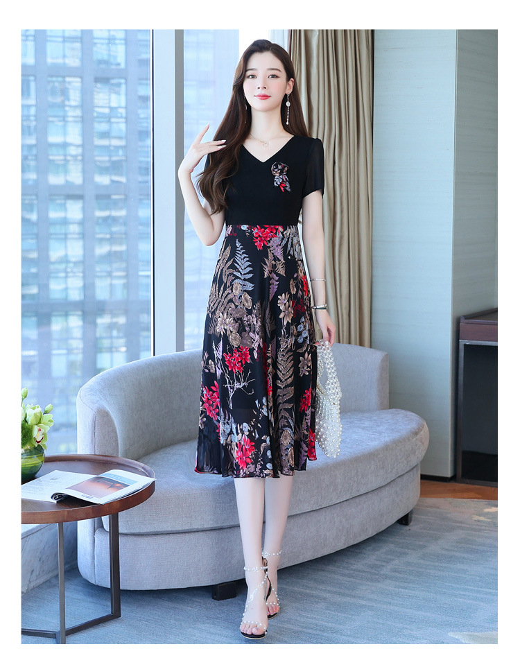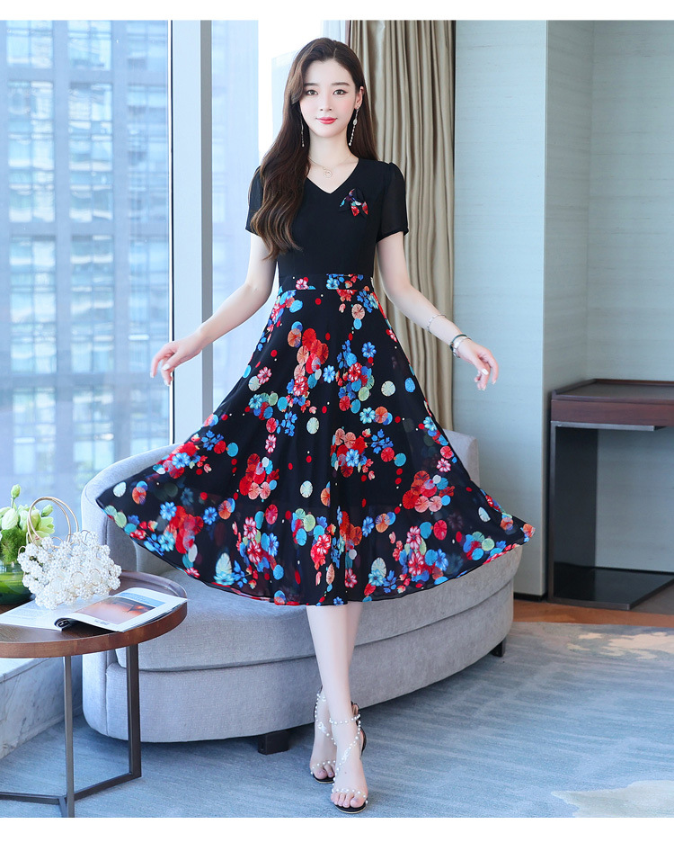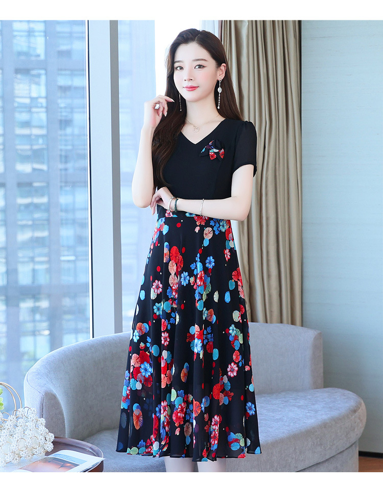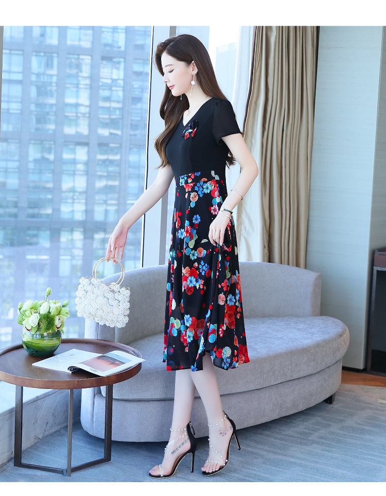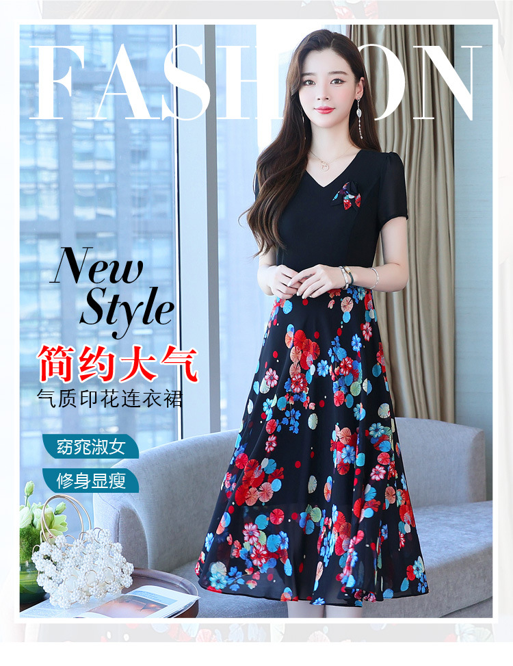 가짜 투피스 원피스 여성 소외된 우아한 여름 스티칭 쉬폰 인쇄 유행 세련된 반팔 치마스토어 가기