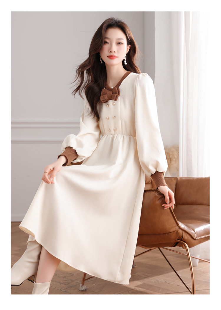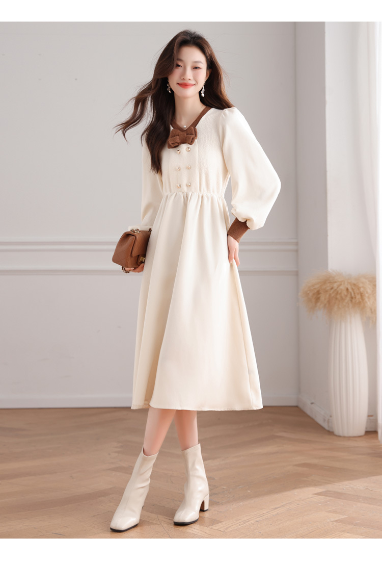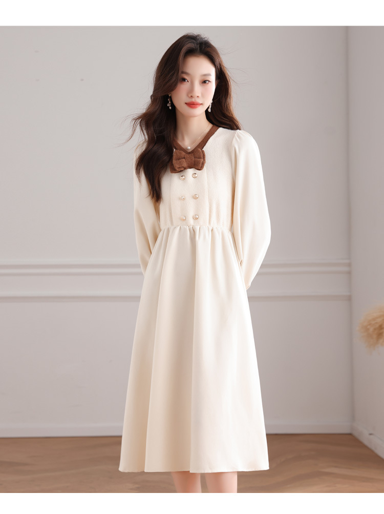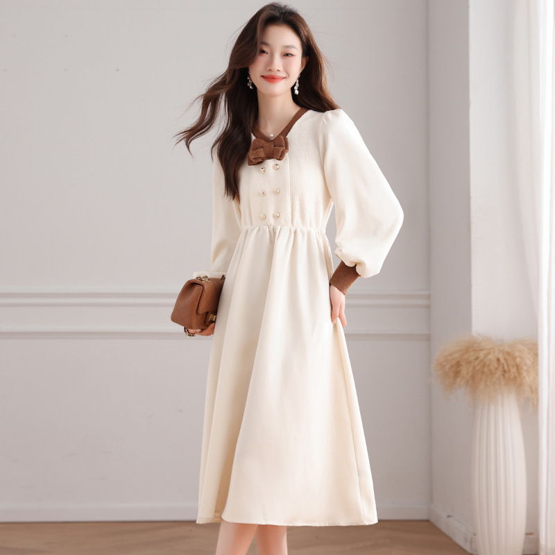 가을과 겨울 새로운 샤넬 스타일 더블 브레스트 프랑스 긴팔 원피스 여성 무릎 이상 긴 원피스스토어 가기
