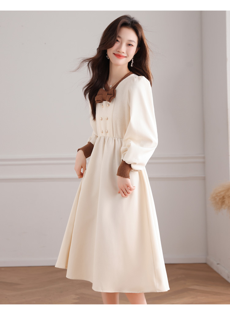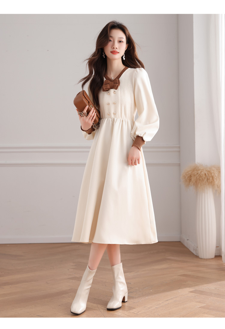 가을과 겨울 새로운 샤넬 스타일 더블 브레스트 프랑스 긴팔 원피스 여성 무릎 이상 긴 원피스