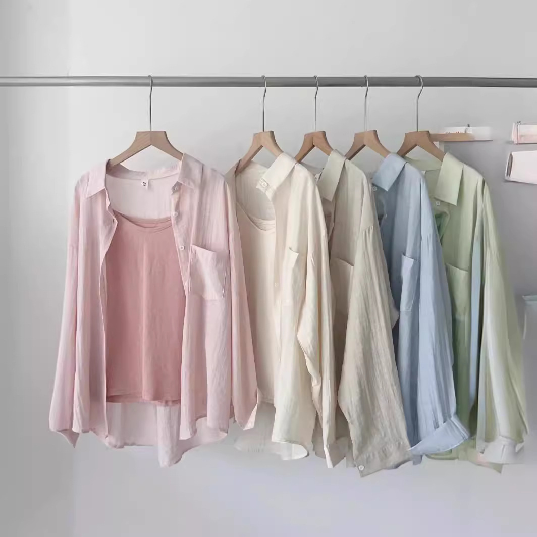 여름을 기대하는 프랑스면 및 린넨 ~ 자외선 차단제 셔츠 여성면 및 린넨 얇은 셔츠 고급 주름 방지 긴 소매 코트스토어 가기