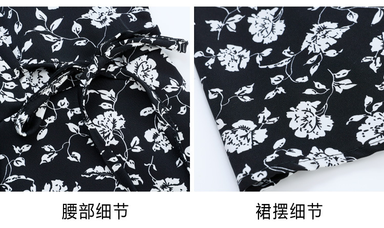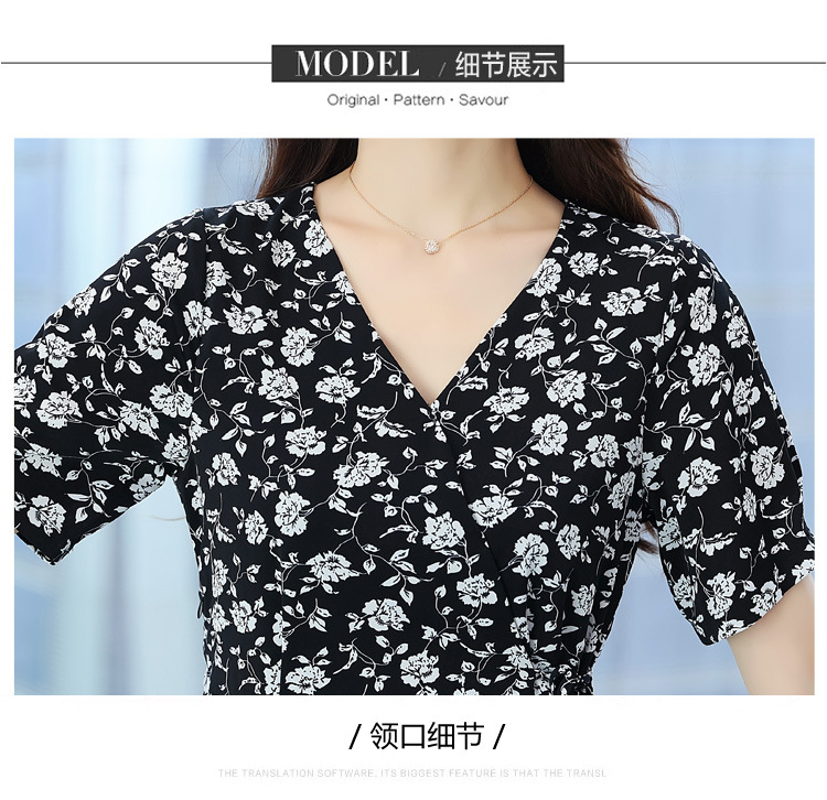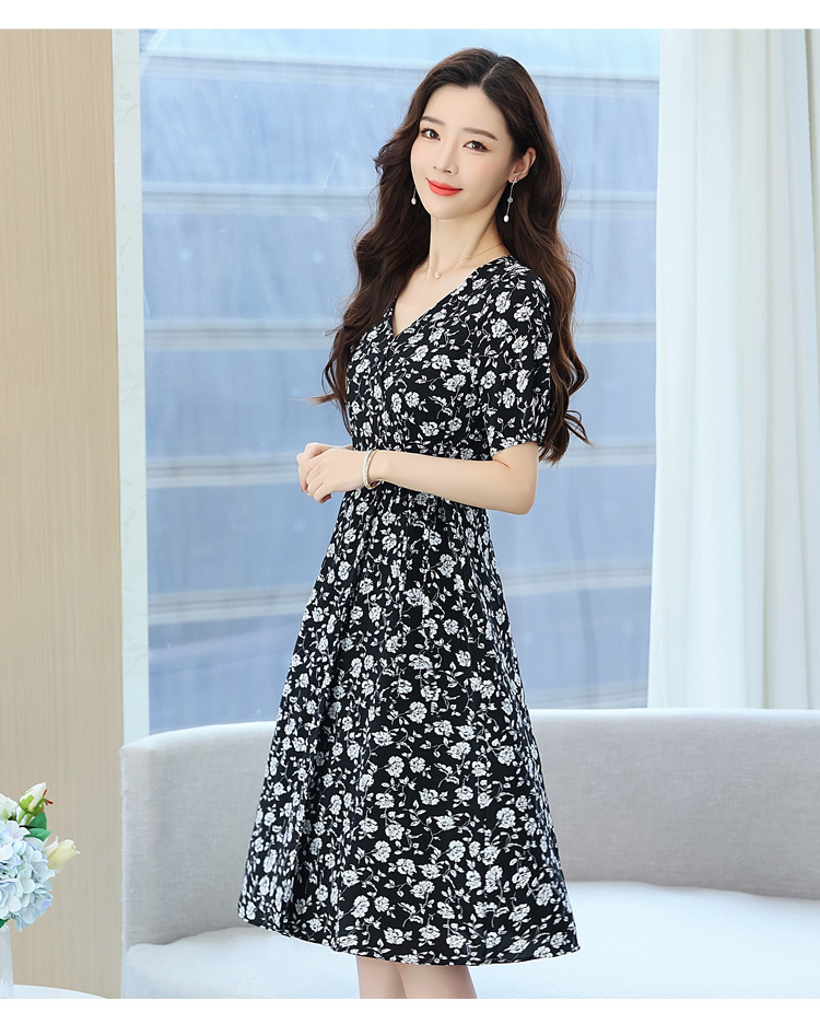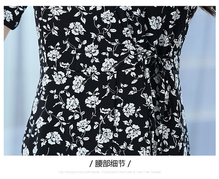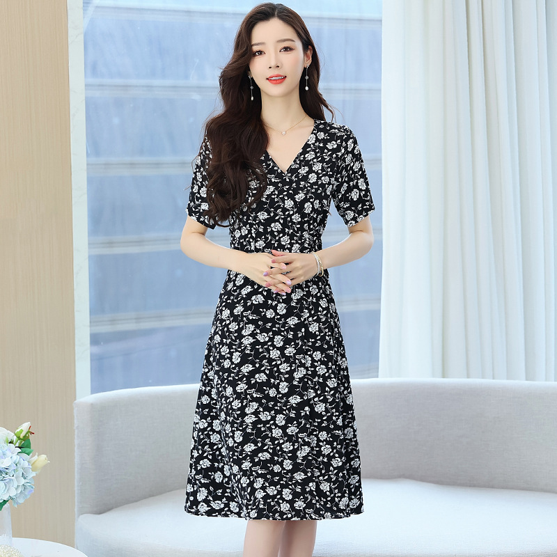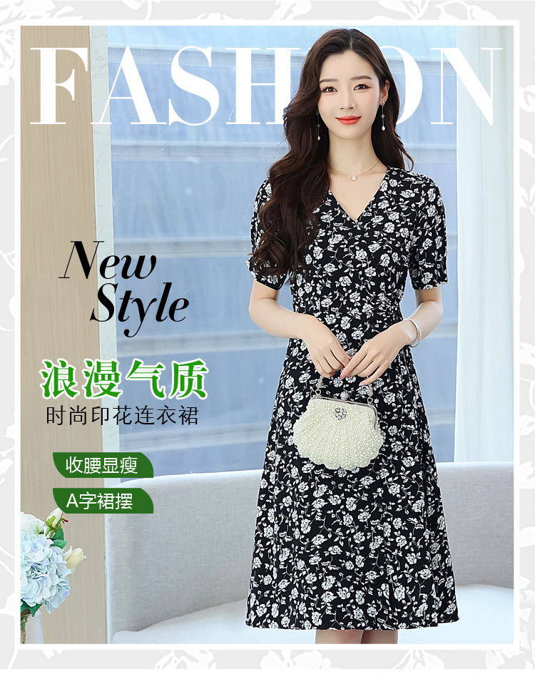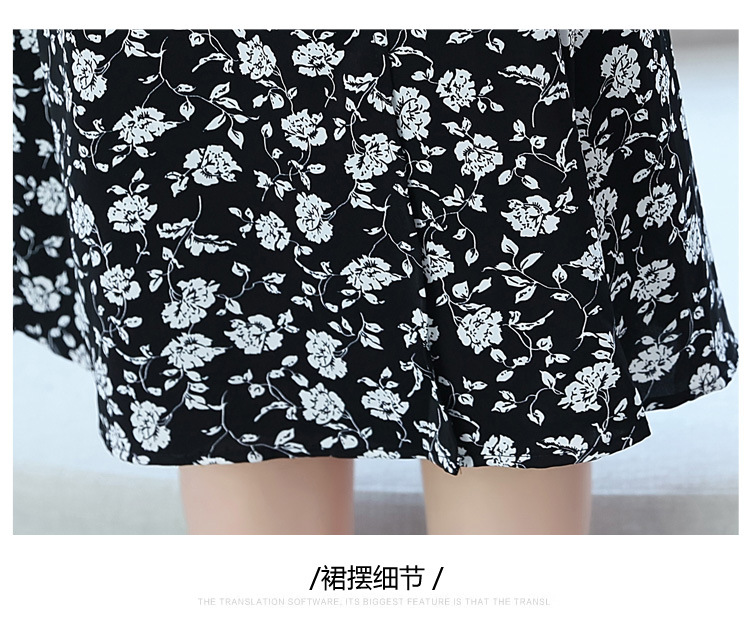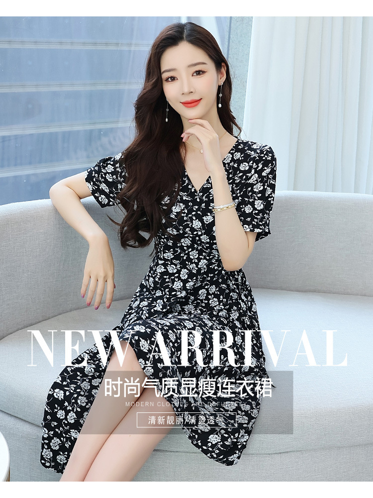 2024 새로운 우아한 쉬폰 원피스 여성용 여름 통통녀 벨리 커버 슬림 긴 검은 꽃 원피스스토어 가기