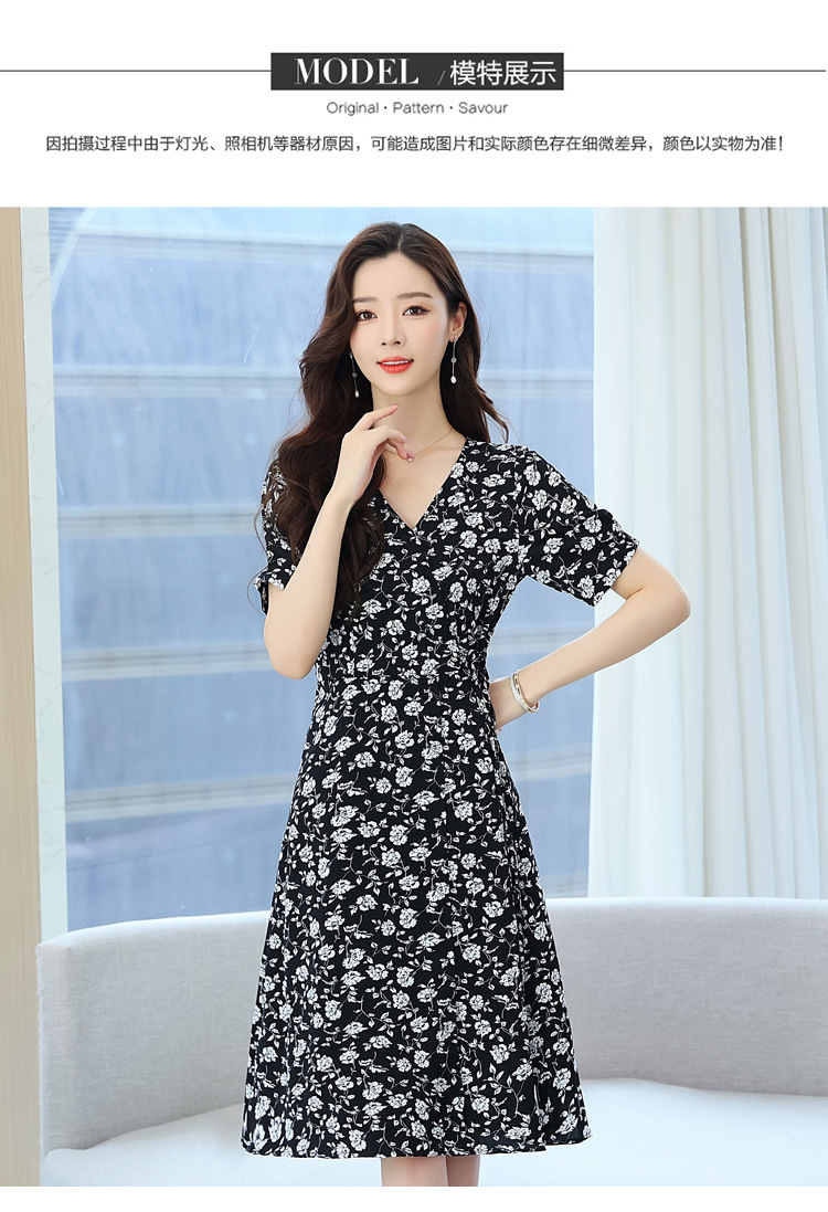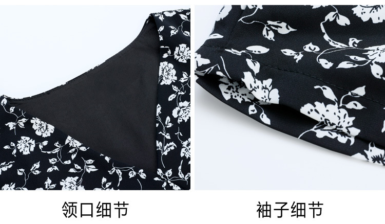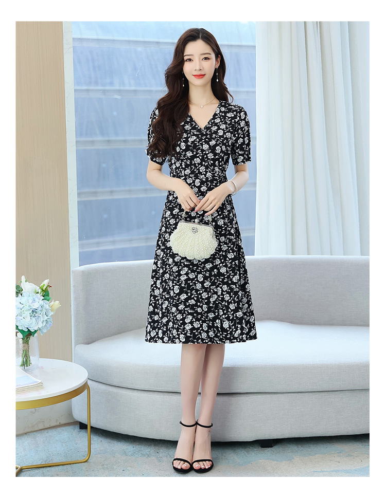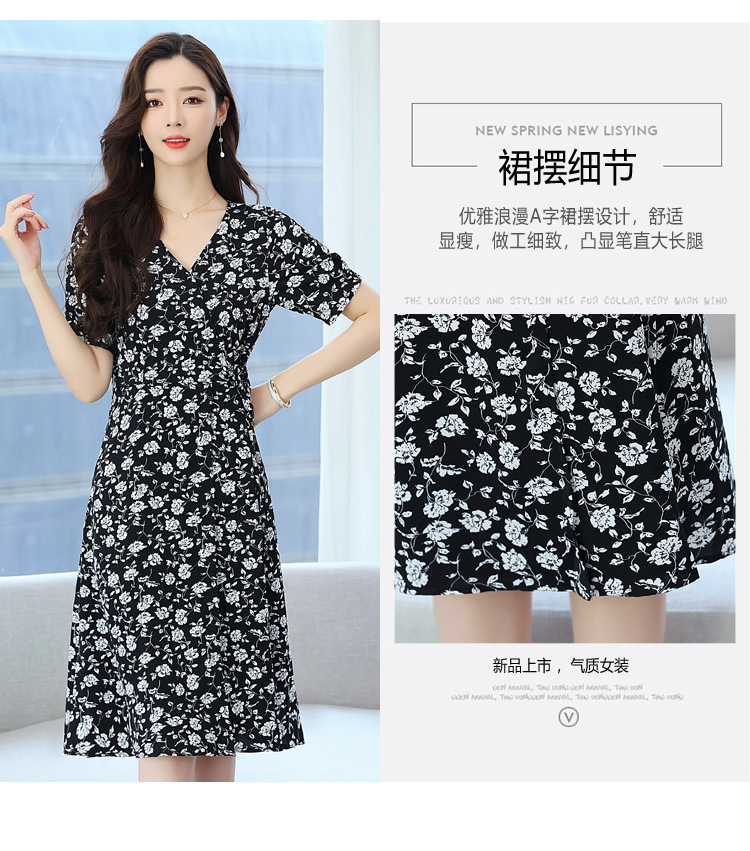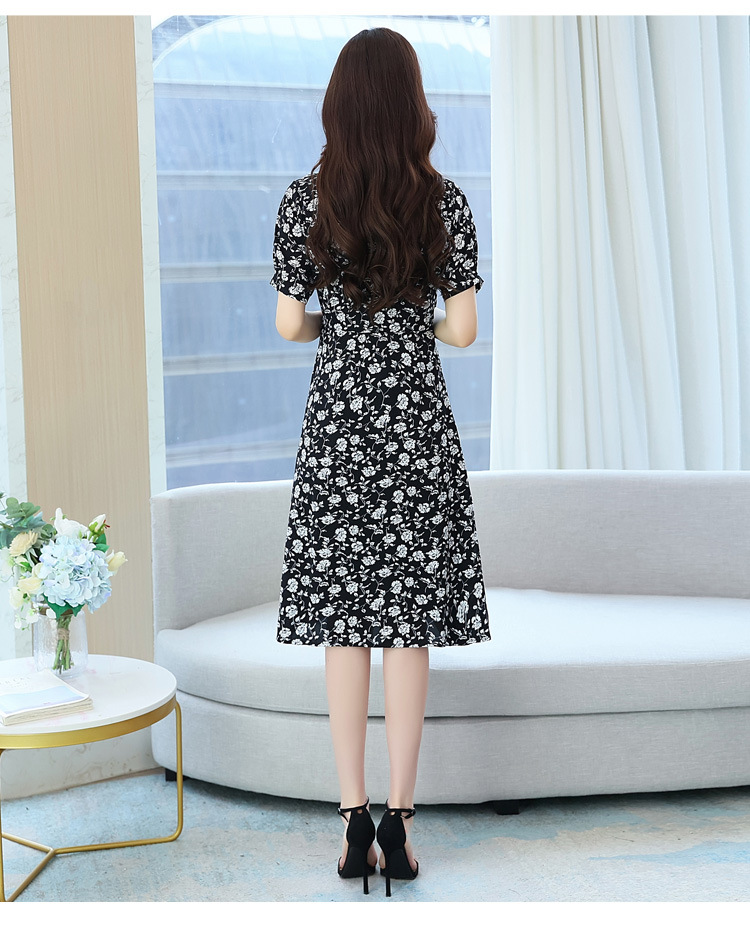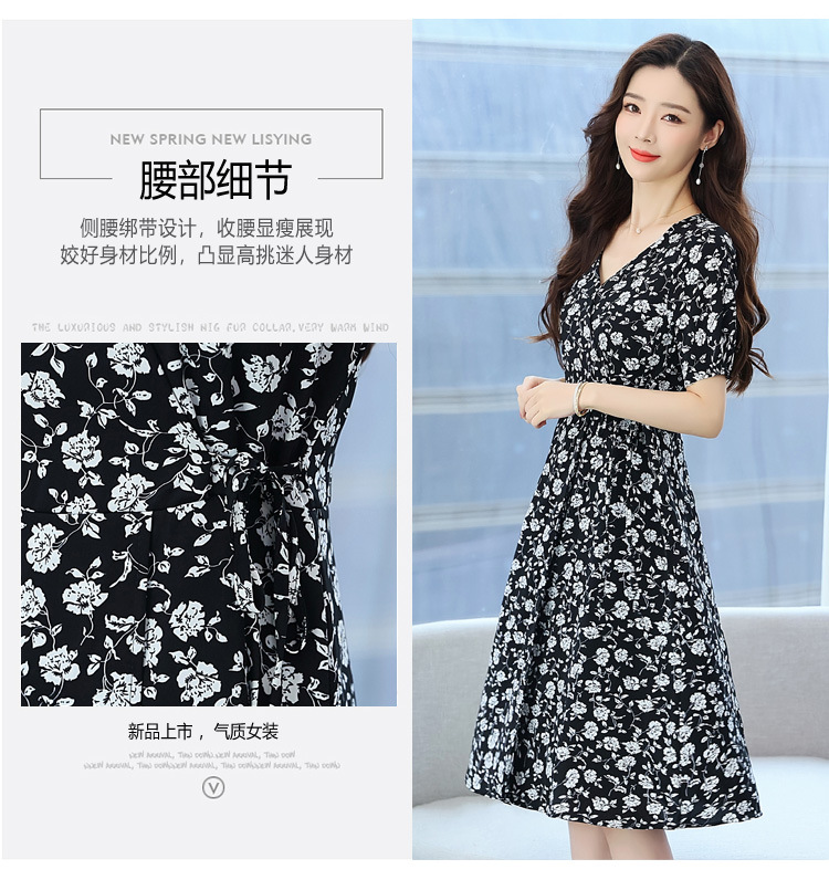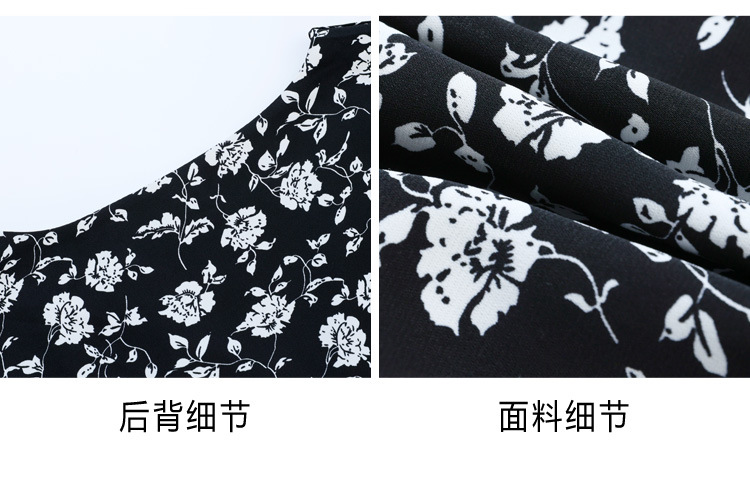 2024 새로운 우아한 쉬폰 원피스 여성용 여름 통통녀 벨리 커버 슬림 긴 검은 꽃 원피스스토어 가기