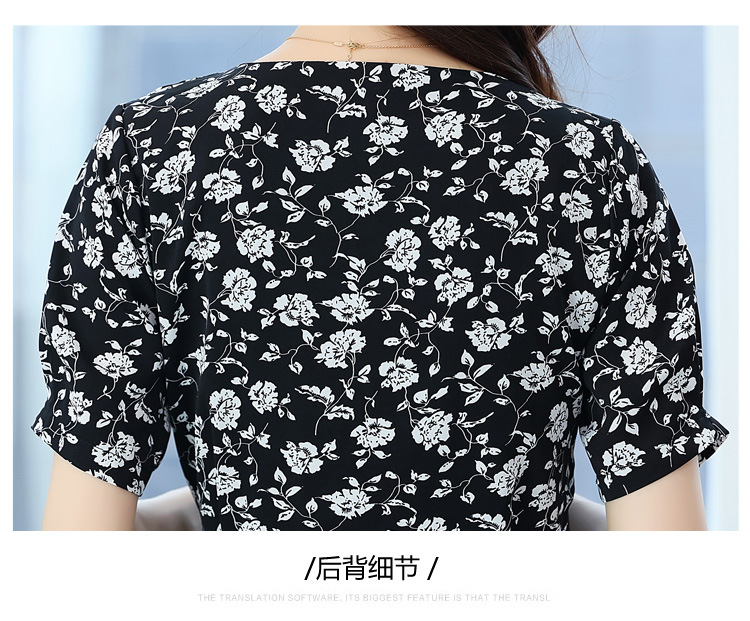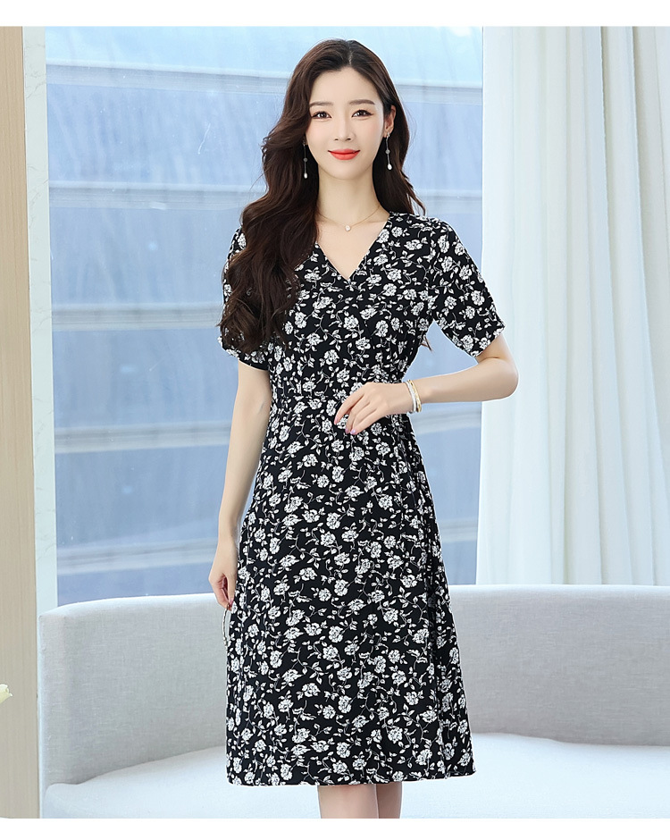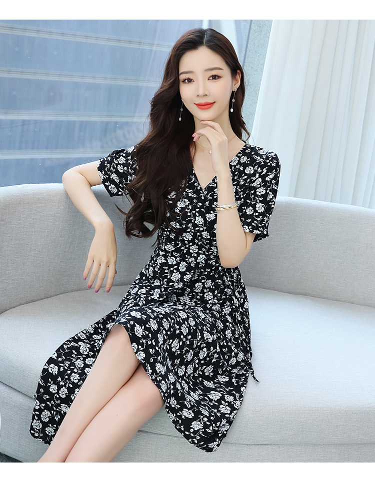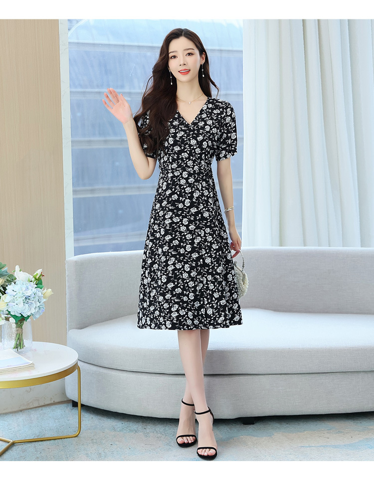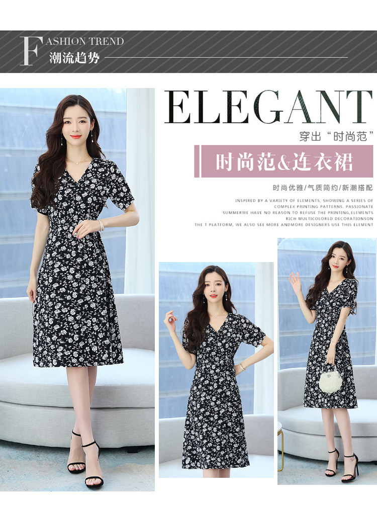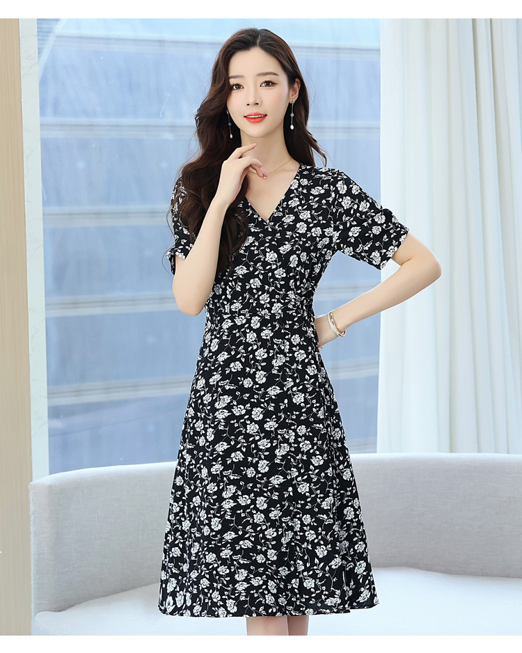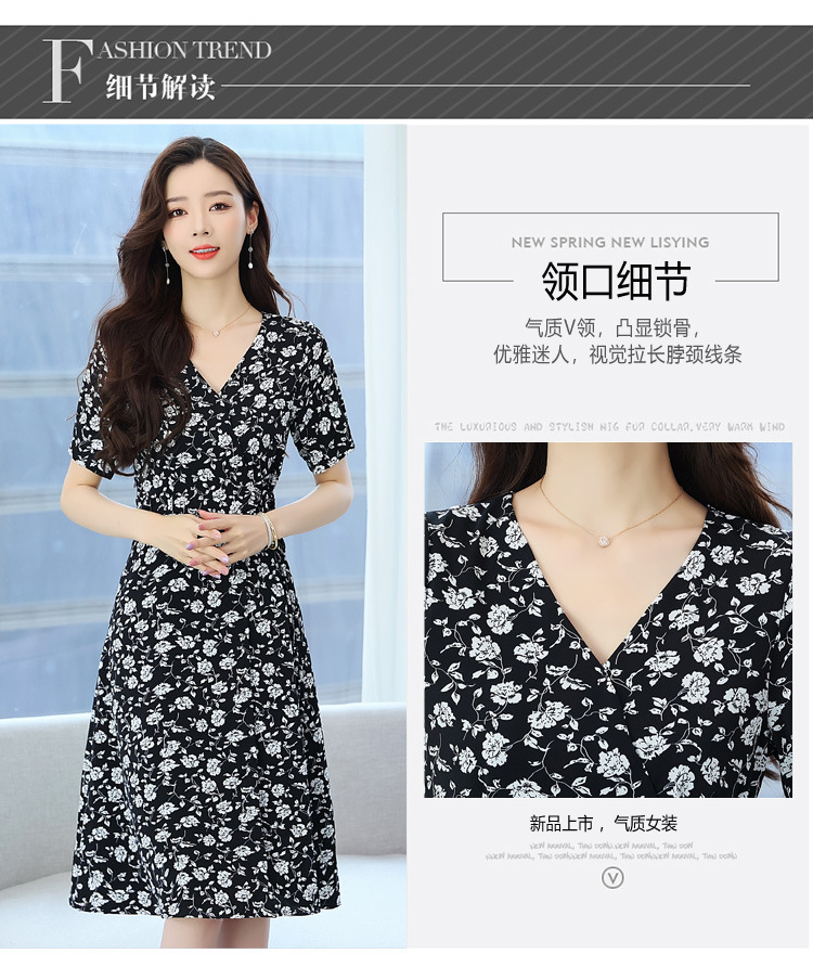 2024 새로운 우아한 쉬폰 원피스 여성용 여름 통통녀 벨리 커버 슬림 긴 검은 꽃 원피스스토어 가기