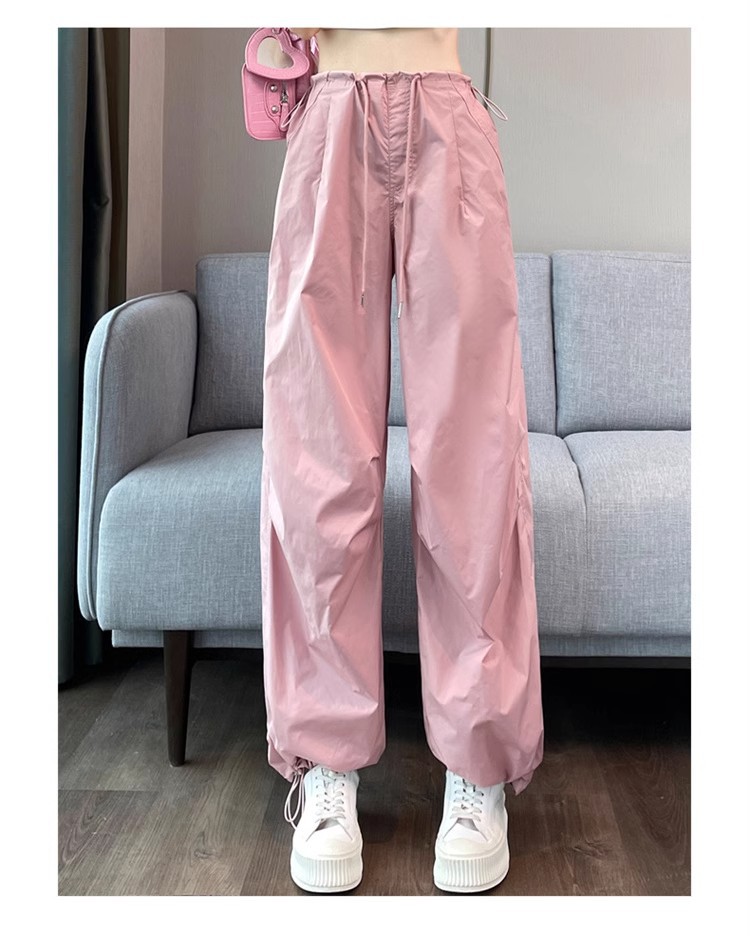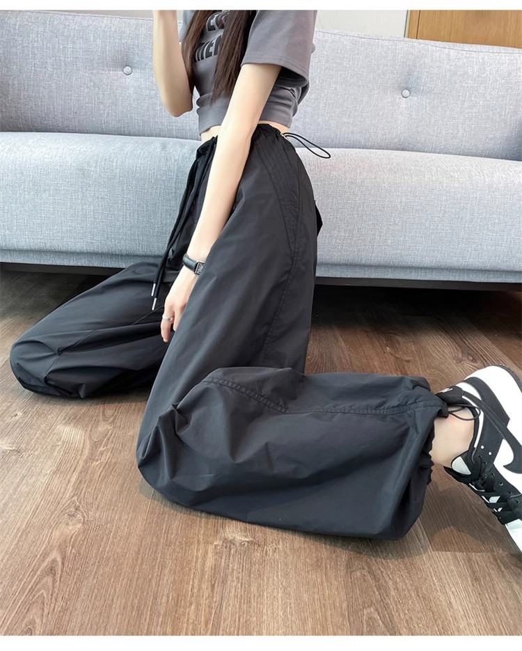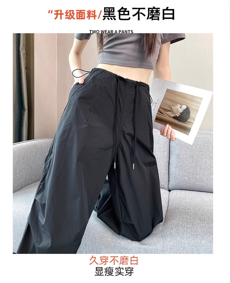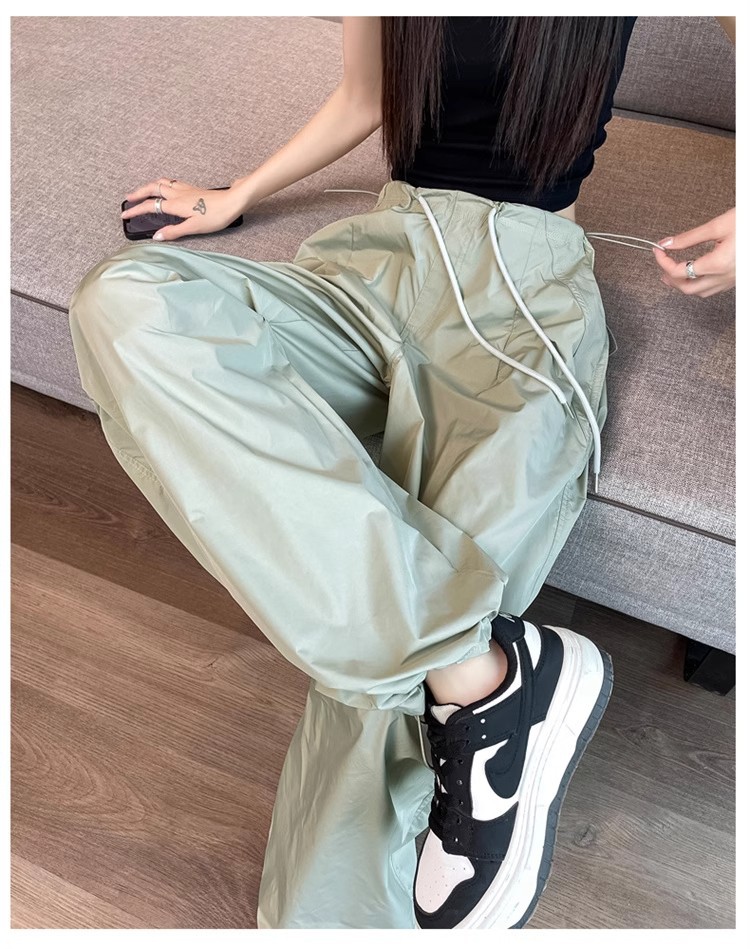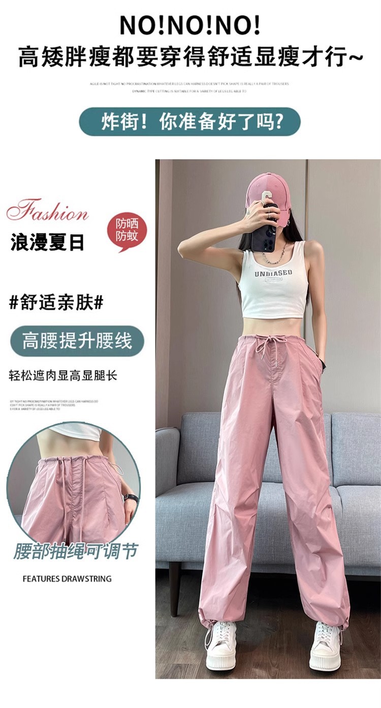 미국식 크록 바지 여성 여름 얇은 높은 허리 등반 낙하산 바지 스트레이트 캐주얼 와이드 레그 빠른 건조 스포츠 바지