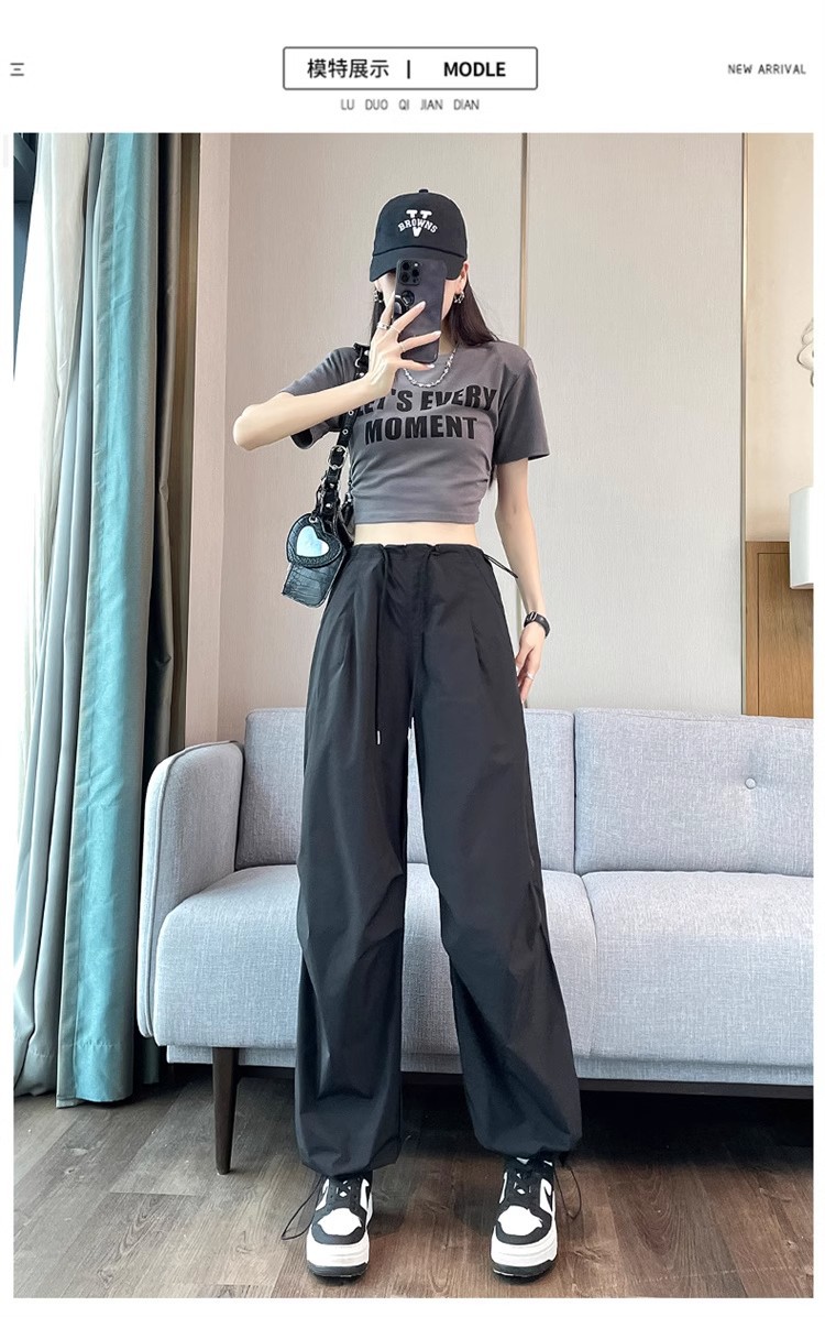 미국식 크록 바지 여성 여름 얇은 높은 허리 등반 낙하산 바지 스트레이트 캐주얼 와이드 레그 빠른 건조 스포츠 바지스토어 가기