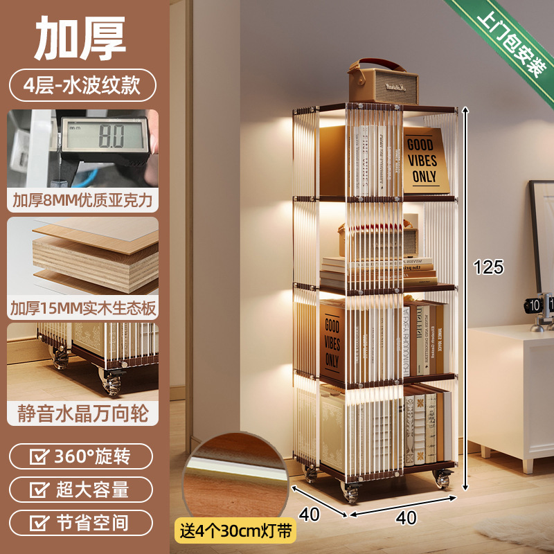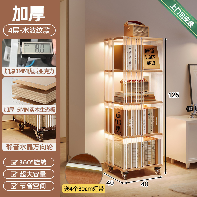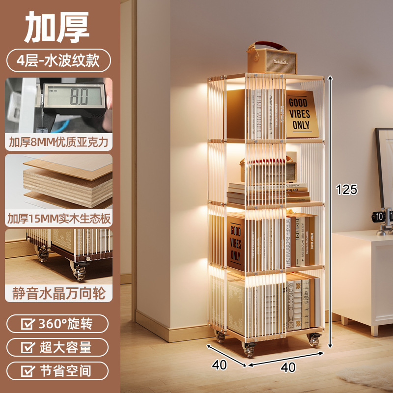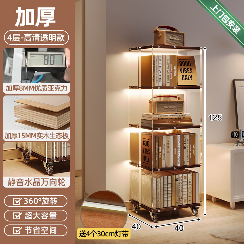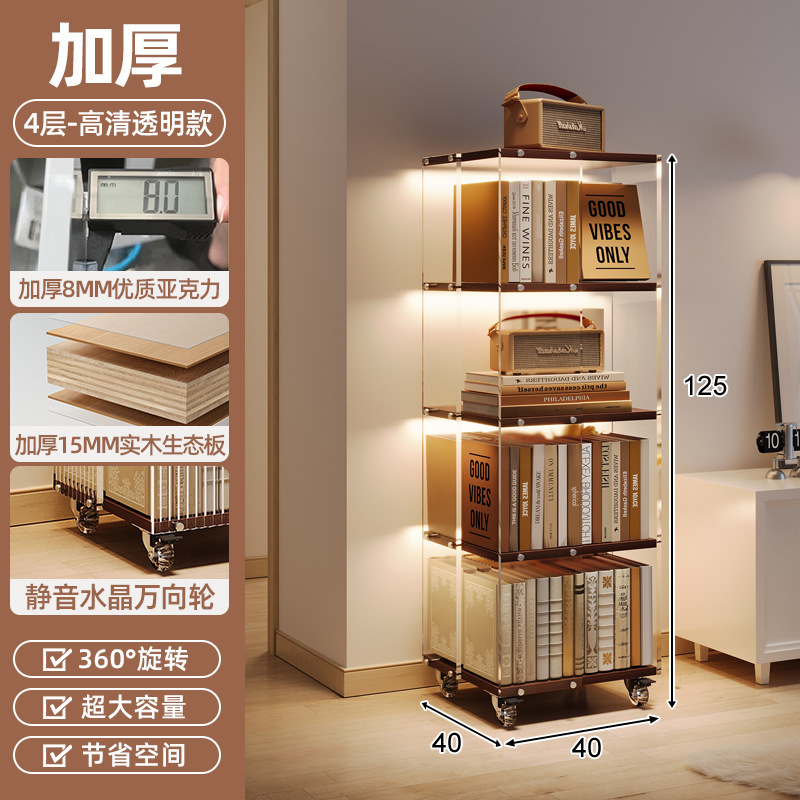아크릴 회전 책장 360 도 책상 사이드 스토리지 랙 바닥 보관 이동식 솔리드 우드 에코 보드 책장스토어 가기
