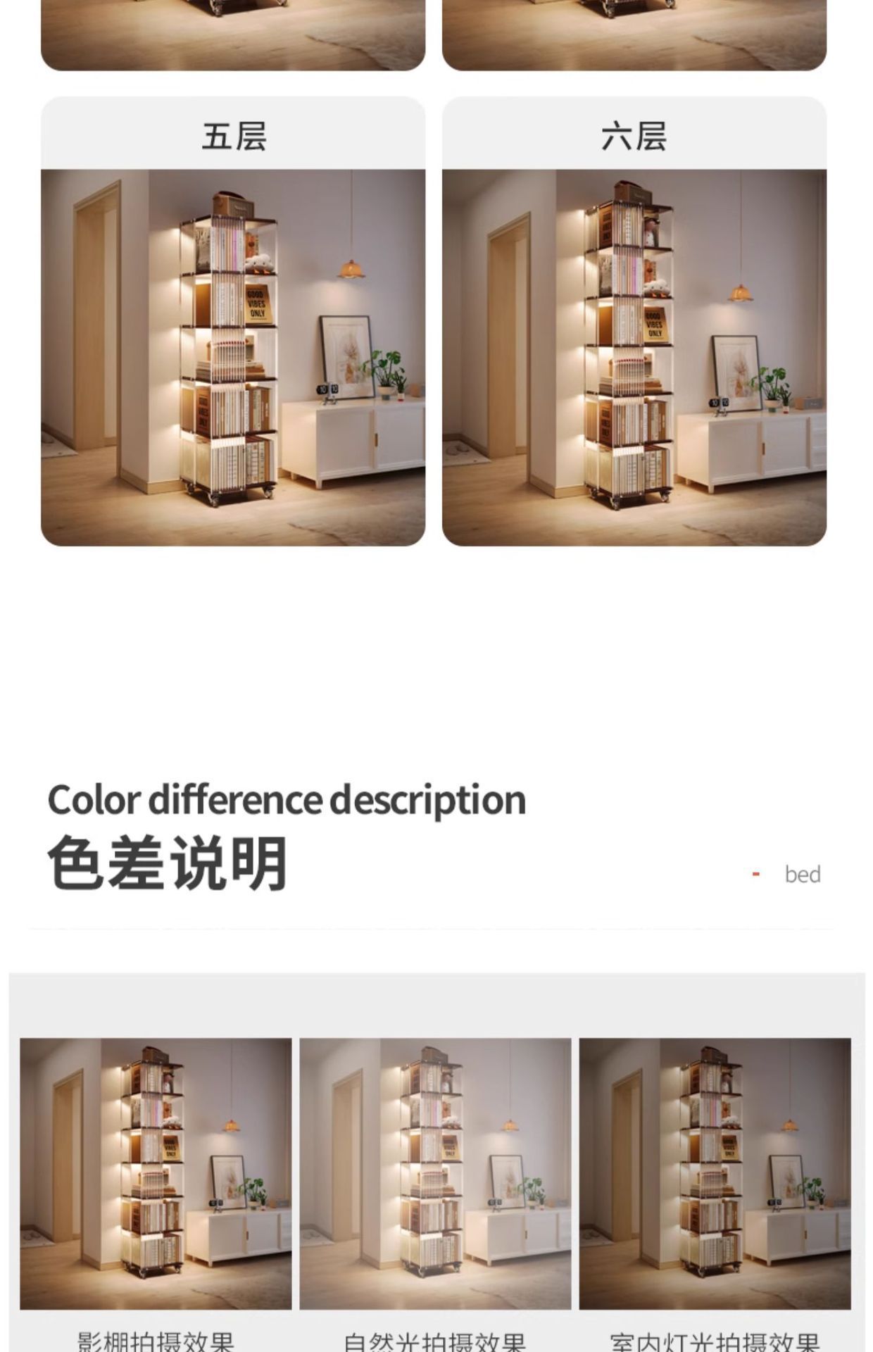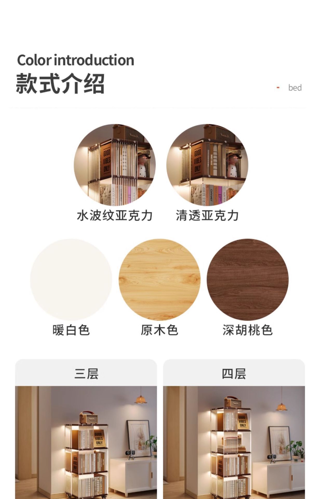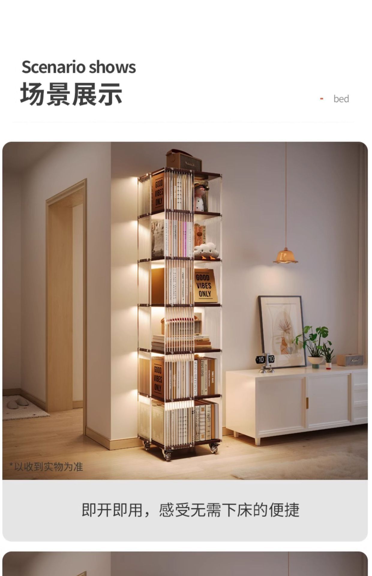 아크릴 회전 책장 360 도 책상 사이드 스토리지 랙 바닥 보관 이동식 솔리드 우드 에코 보드 책장스토어 가기