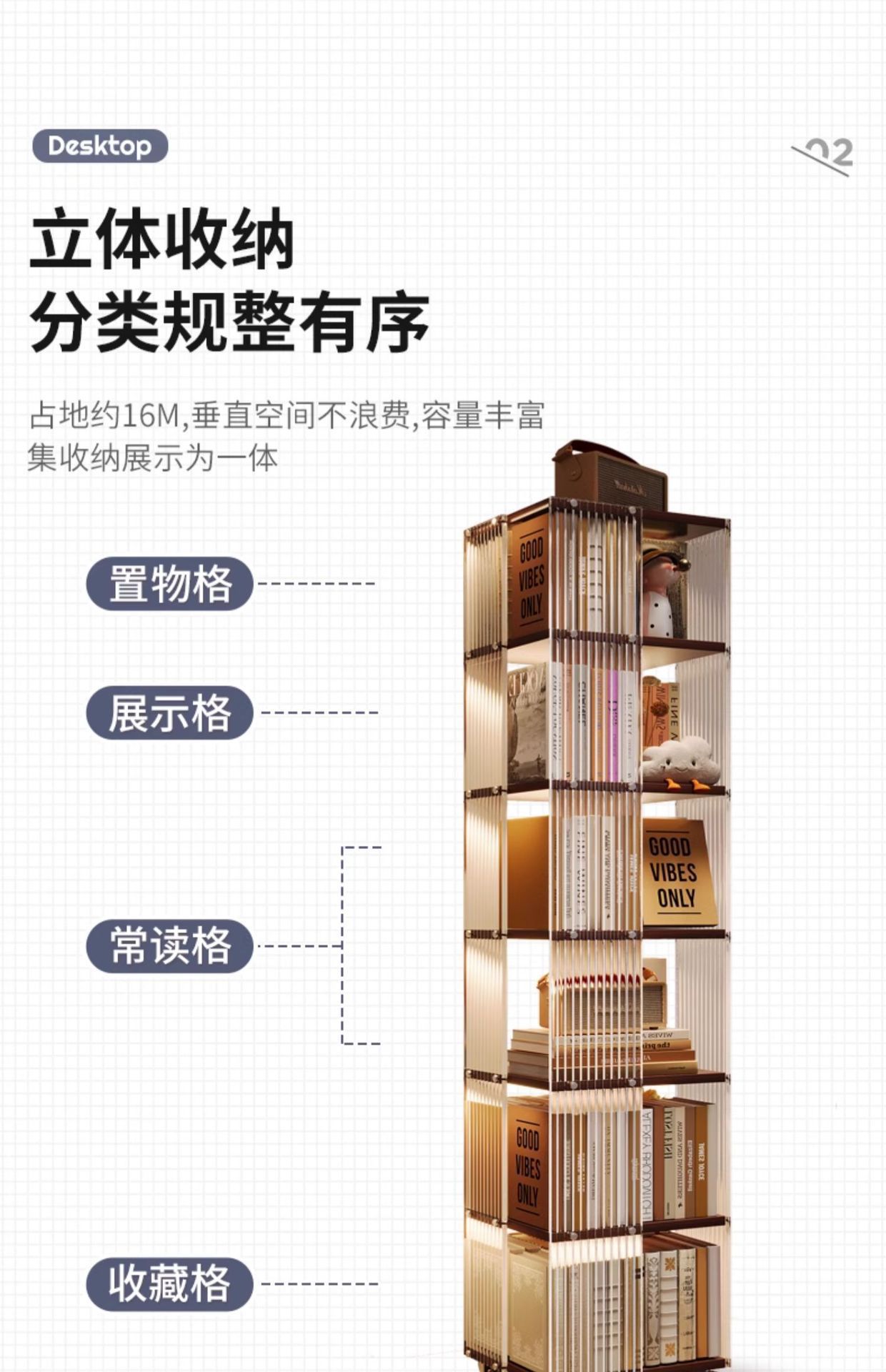 아크릴 회전 책장 360 도 책상 사이드 스토리지 랙 바닥 보관 이동식 솔리드 우드 에코 보드 책장