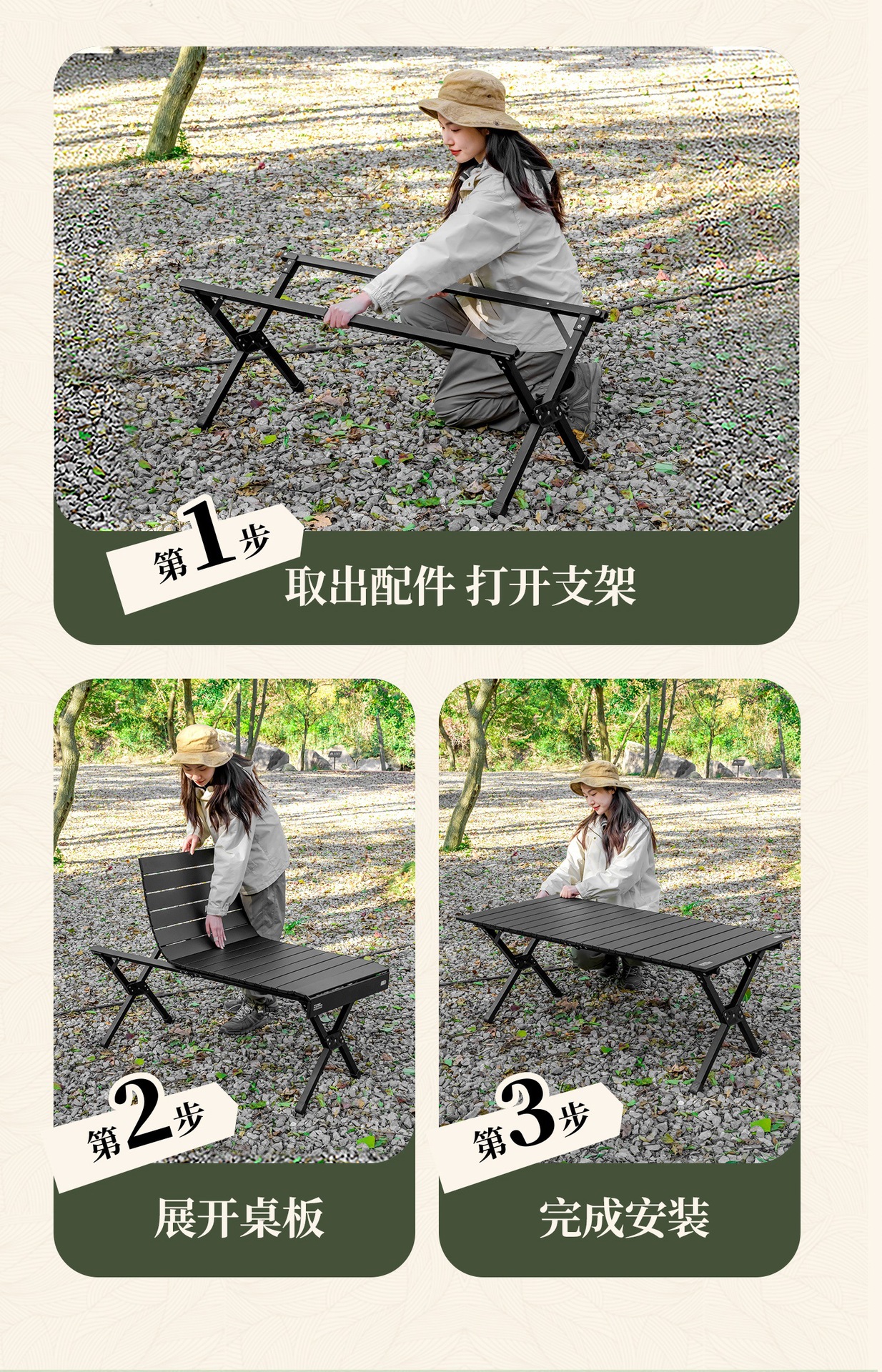 작은 마술 캠핑 테이블과 의자 피크닉 테이블 휴대용 테이블 안뜰 바베큐 티 테이블 야외 접이식 계란 롤 테이블 마구간 테이블스토어 가기