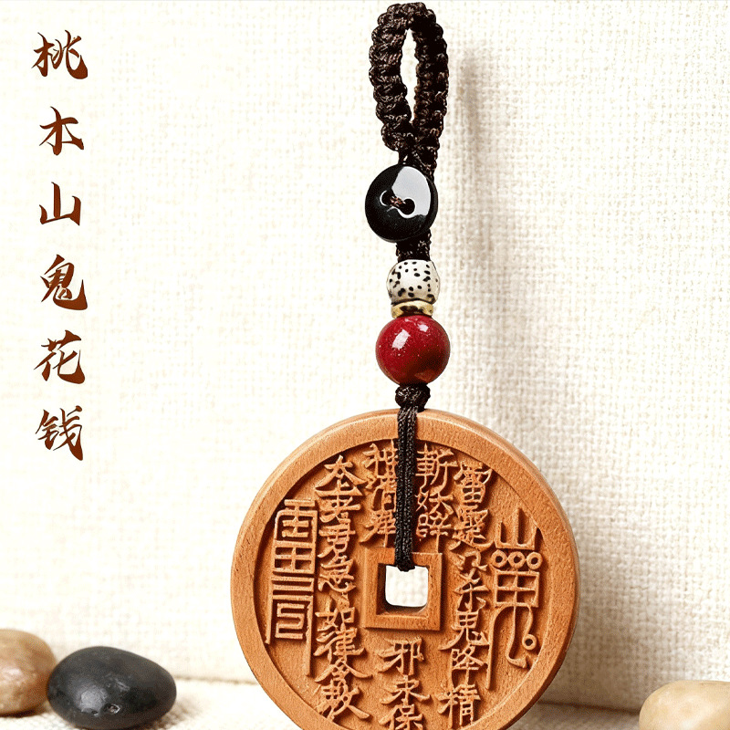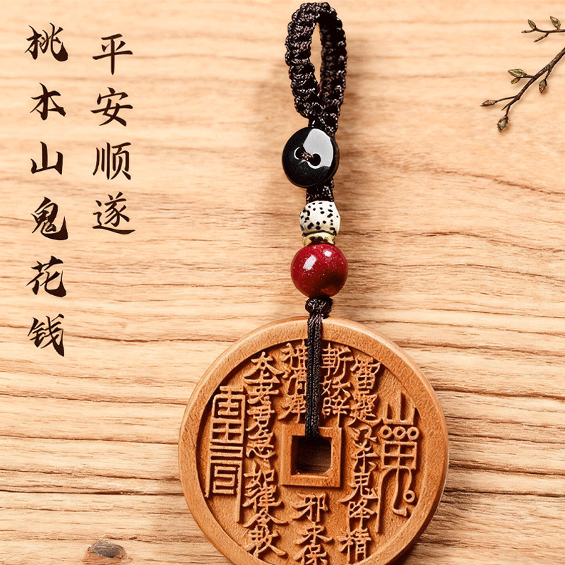 마호가니 산 유령 지출 펜던트 목걸이 도교 토큰 벤 밍니 펜던트 키 체인 브론즈 머니 안전 버클 인증스토어 가기