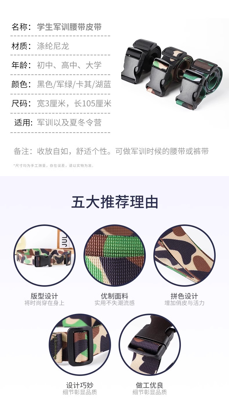 군사 훈련 필수 용품 벨트 초등 및 중등 학교 학생 남녀 중학생 버클이 달린 고등학교 위장 바지스토어 가기