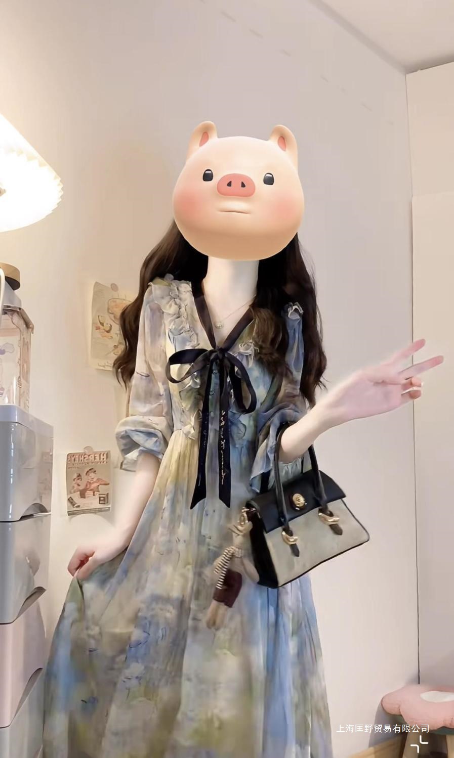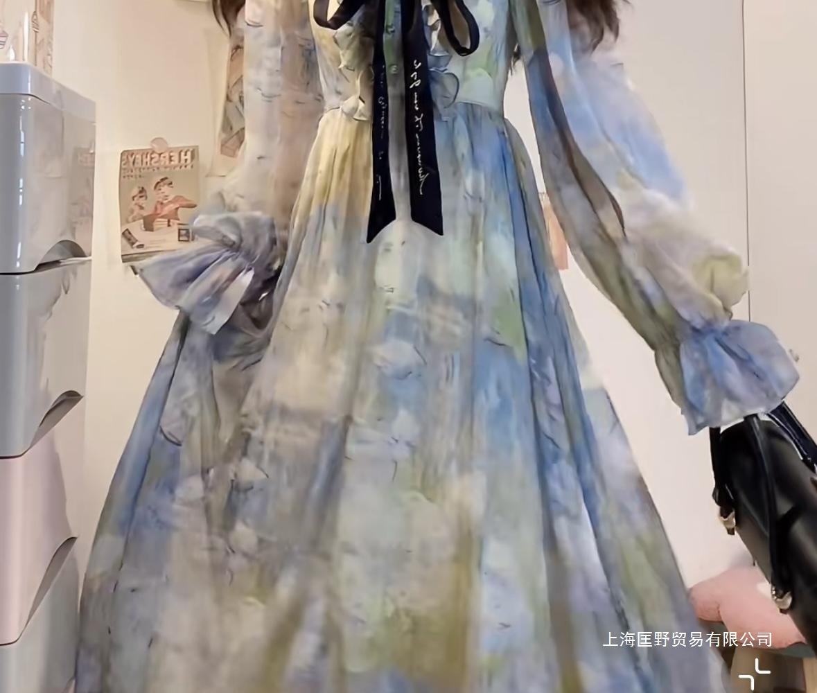 2025 새로운 스타일 20252025 여름 새로운 스타일 휴가 스타일 요정 스커트 프릴 슬리브 쉬폰 드레스 프렌치 스타일스토어 가기