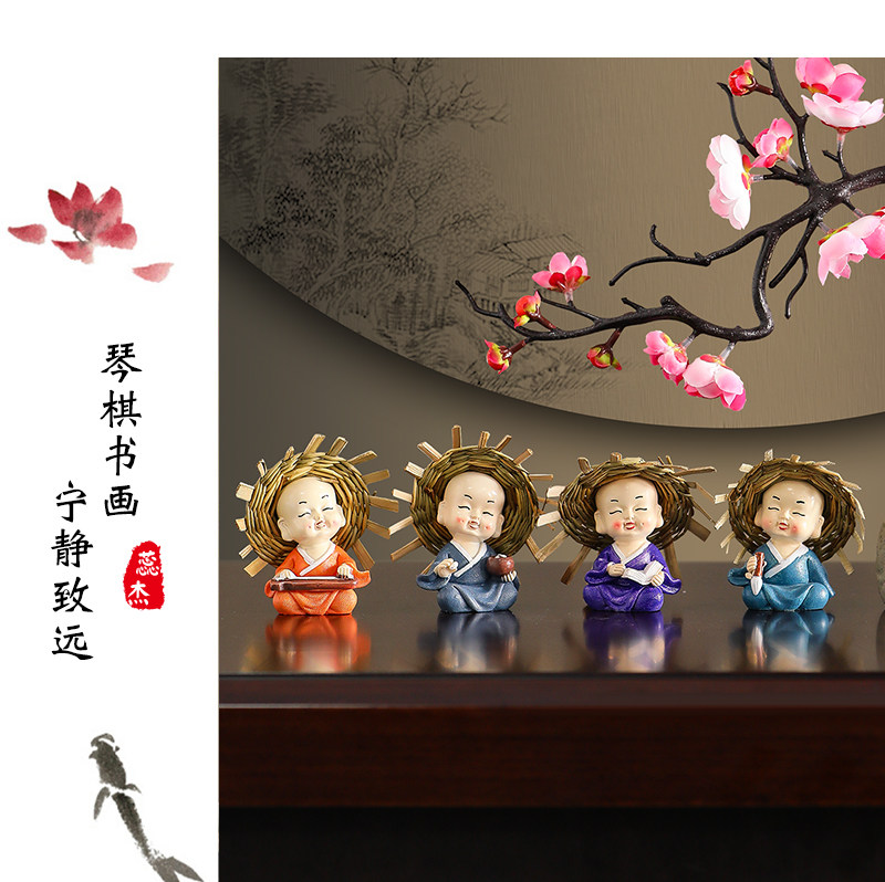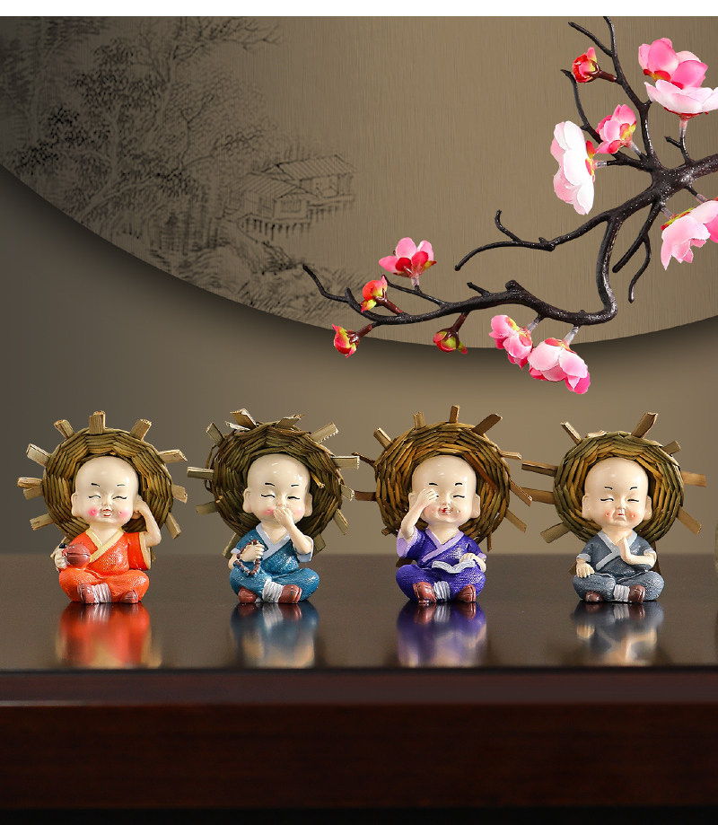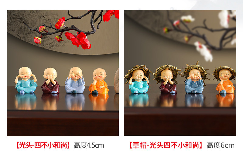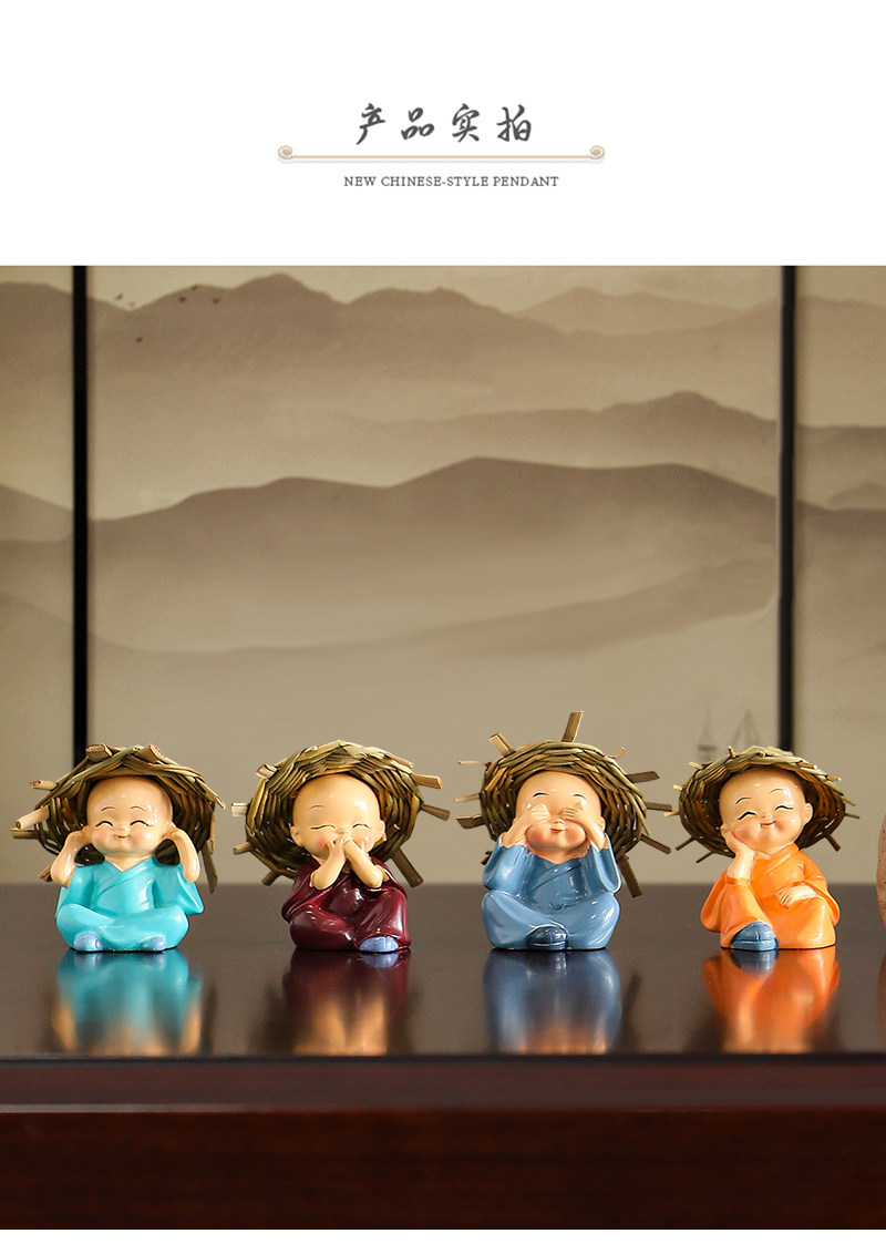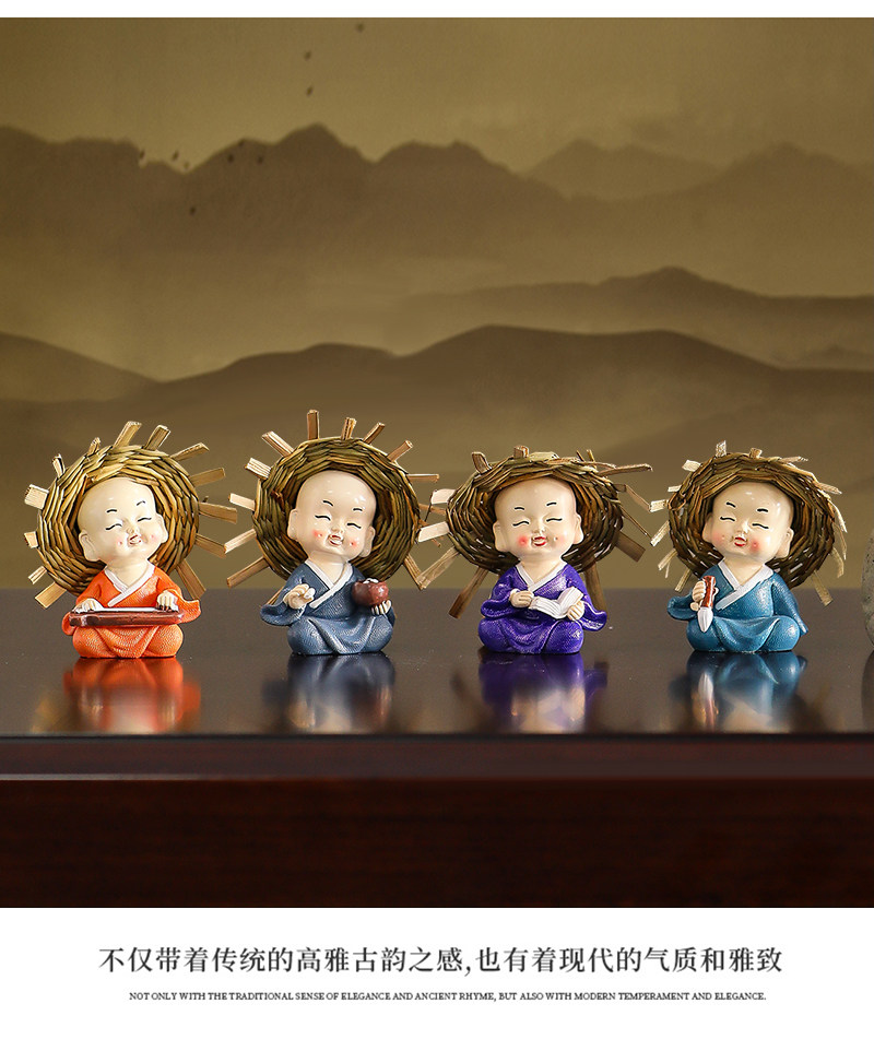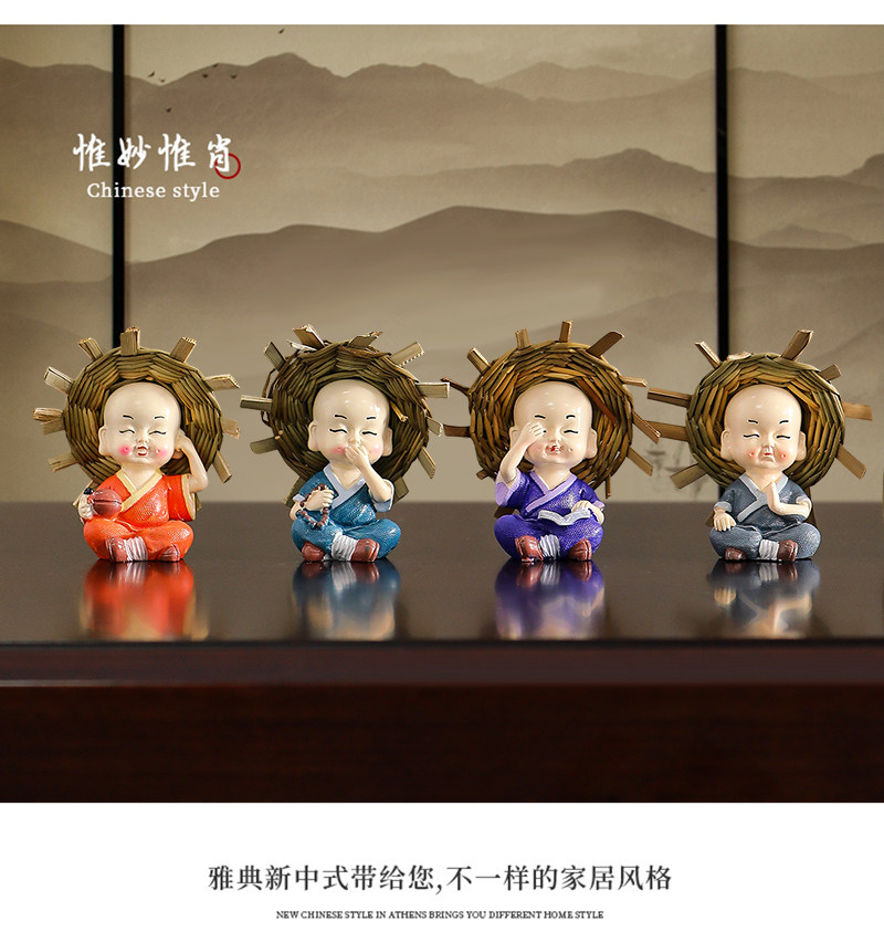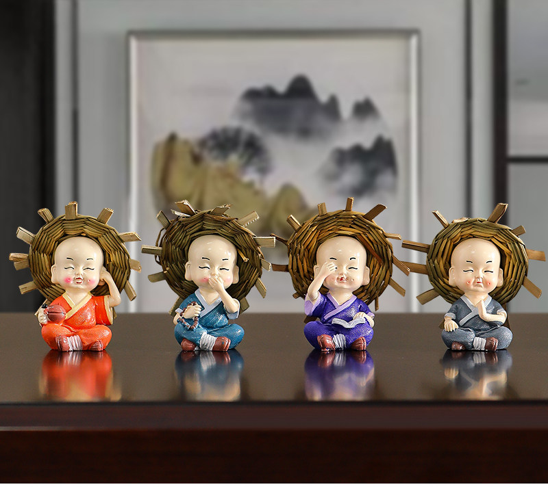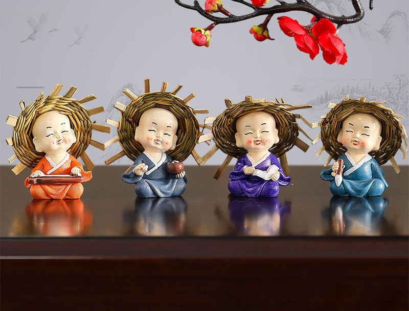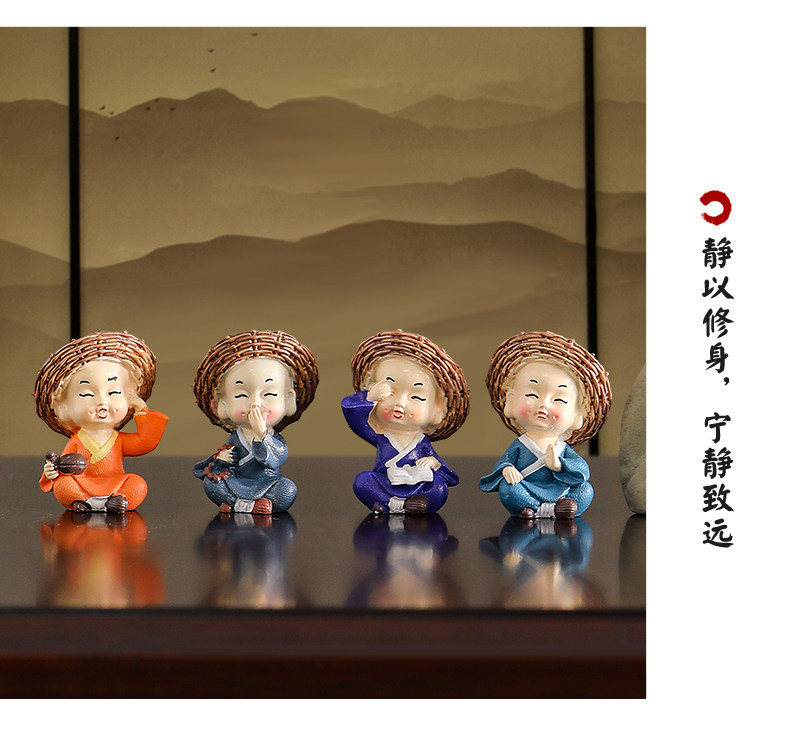 선 네 작은 스님 차 테이블 장식품 차 애완 동물 액세서리 장식 차 테이블 커피 테이블 사무실 데스크탑 작은 장식품
