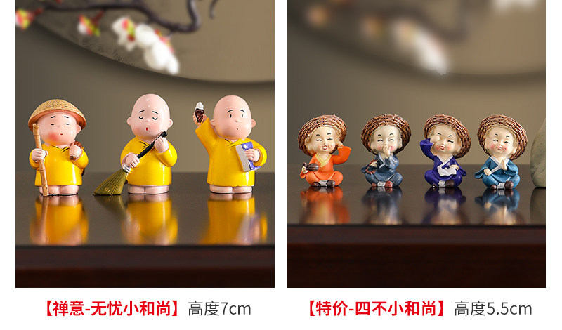 선 네 작은 스님 차 테이블 장식품 차 애완 동물 액세서리 장식 차 테이블 커피 테이블 사무실 데스크탑 작은 장식품스토어 가기