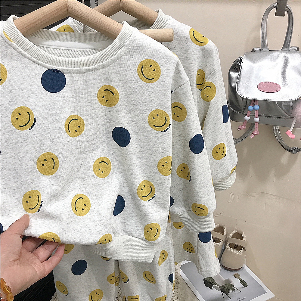 어린이 땀 바지 여성 자매와 형제 용과 피닉스 페투스 서양식 남녀 세트 원피스 컬러 스마일리 형제 자매 세트