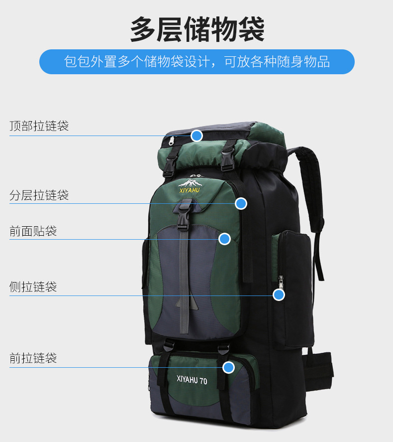 국경 간 새로운 70L 야외 등산 가방 대용량 여행 야외 가방 스포츠 등산 가방 하이킹 배낭